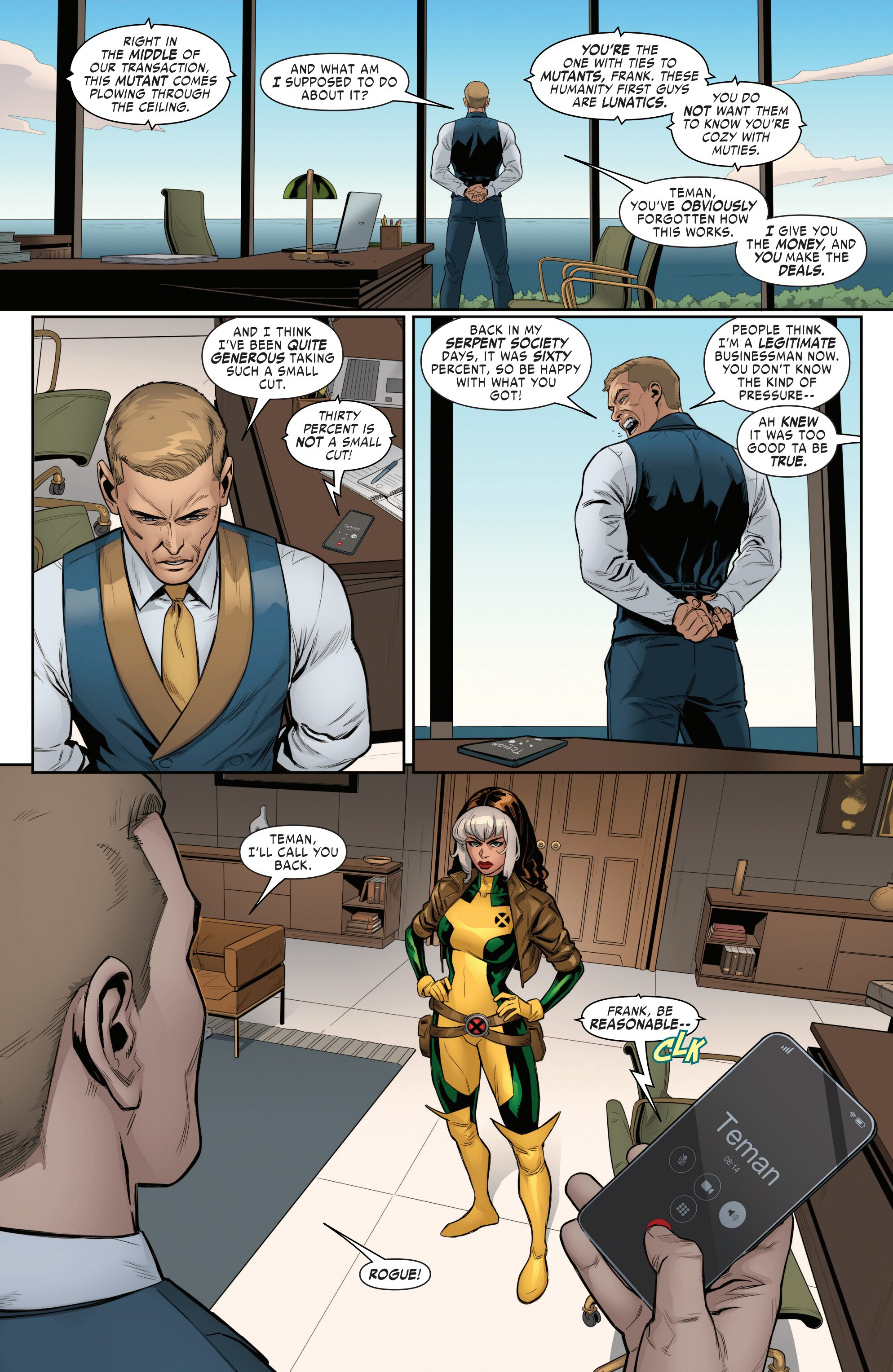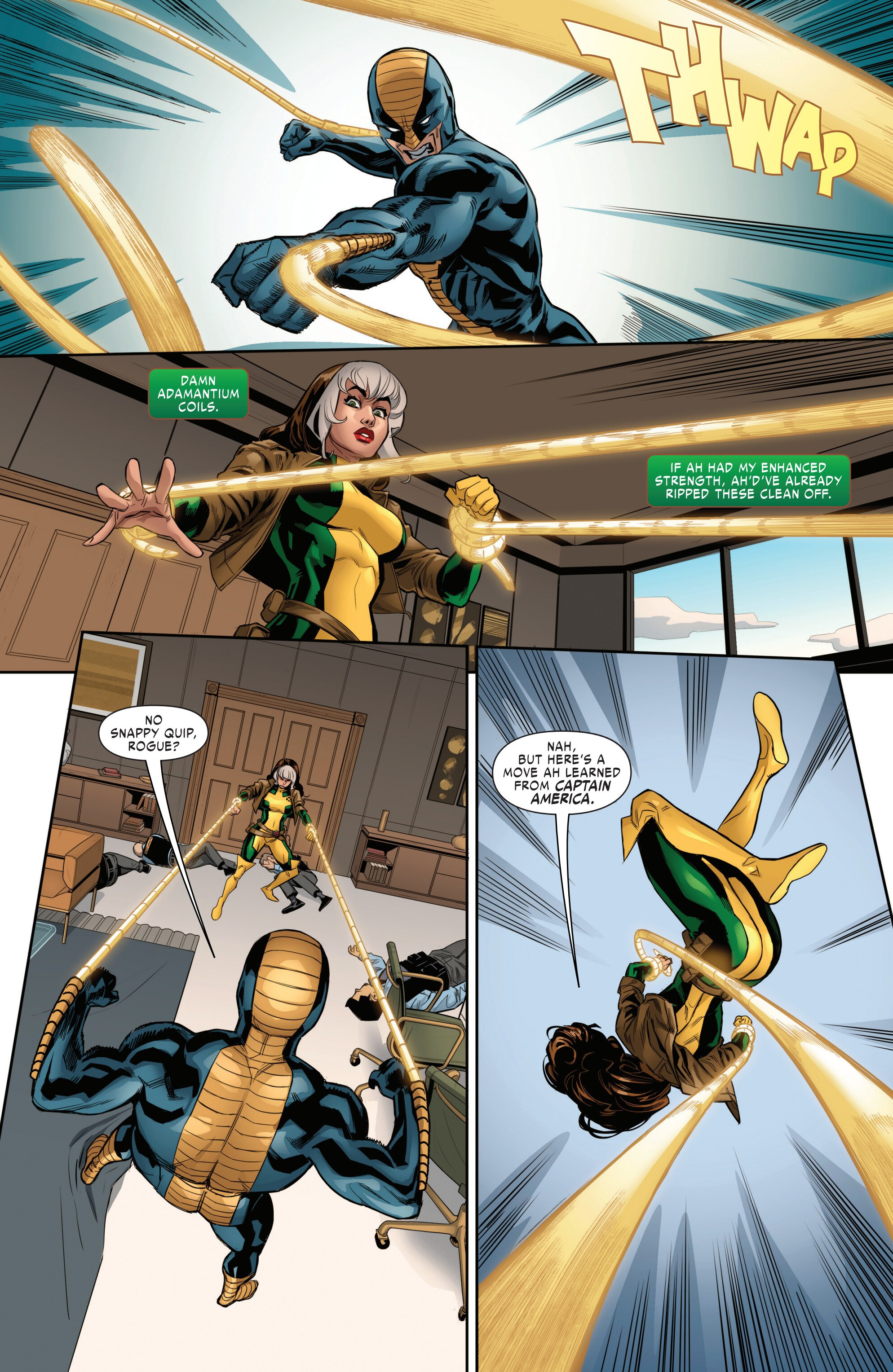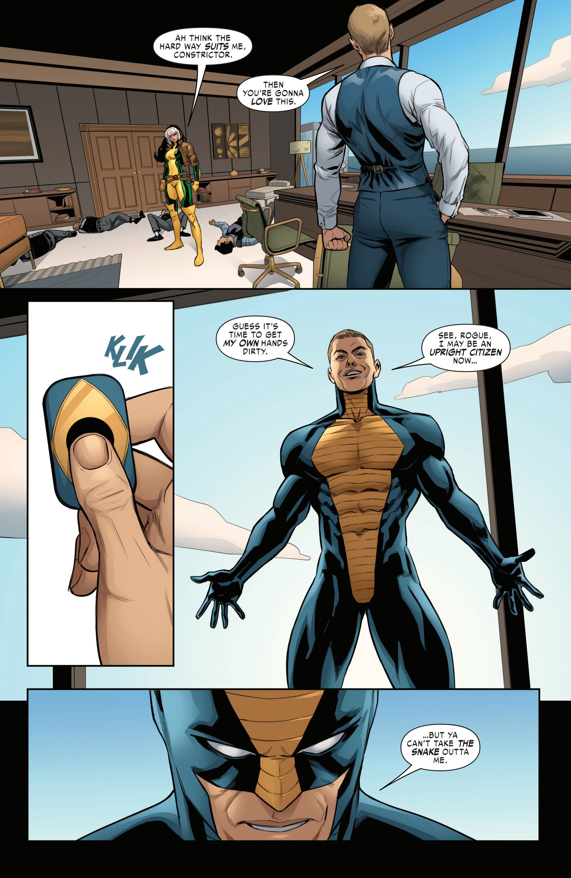 >Rogue absorbed Creed's powers and then knocked out ConstrictorWell, it's not that much new info to be honest. Even Mystique's info last issue was more worthwhile than this.