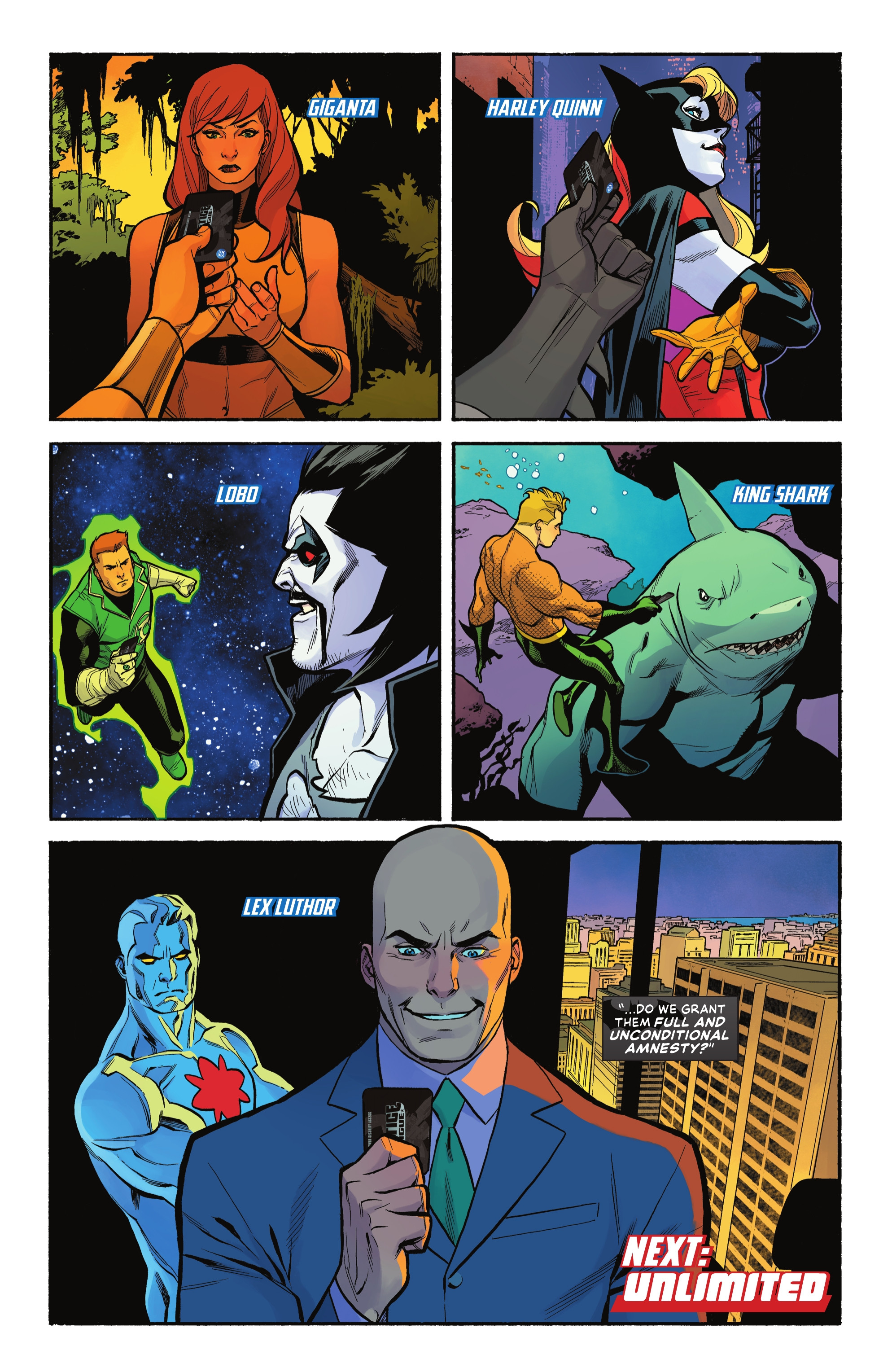 >Unlimited? Definitely. United? Hardly. The strongest voices in the Justice League have begun granting amnesty — and membership — to super-villains, and mutiny is brewing! Plus: Guy Gardner leads a mission that will have startling consequences for the entire galaxy!