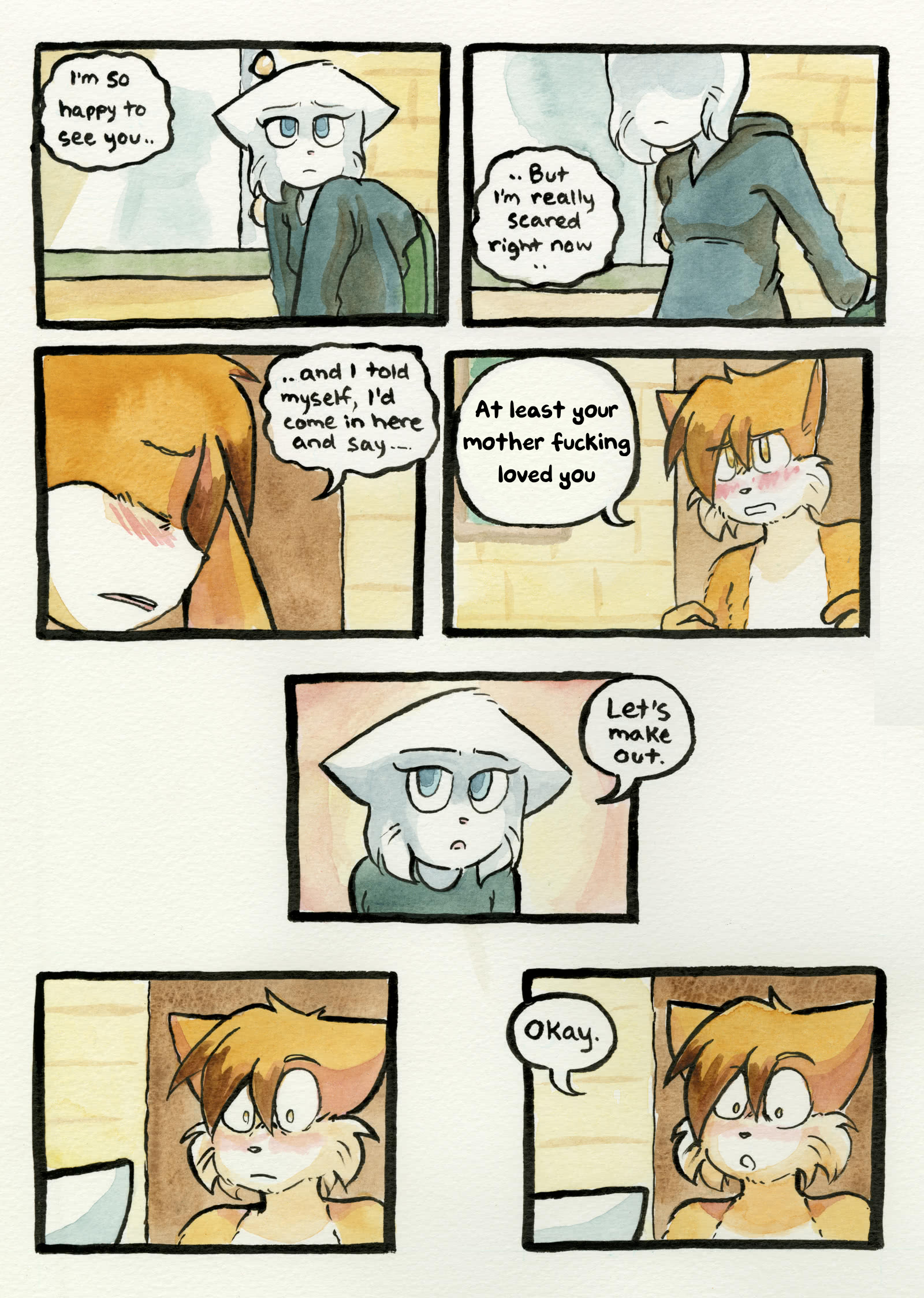 >>152958034I hate this new coloring style. It took me a while to realize that was Mike since he's white now instead of gray. As if this comic doesn't already have enough white cats.