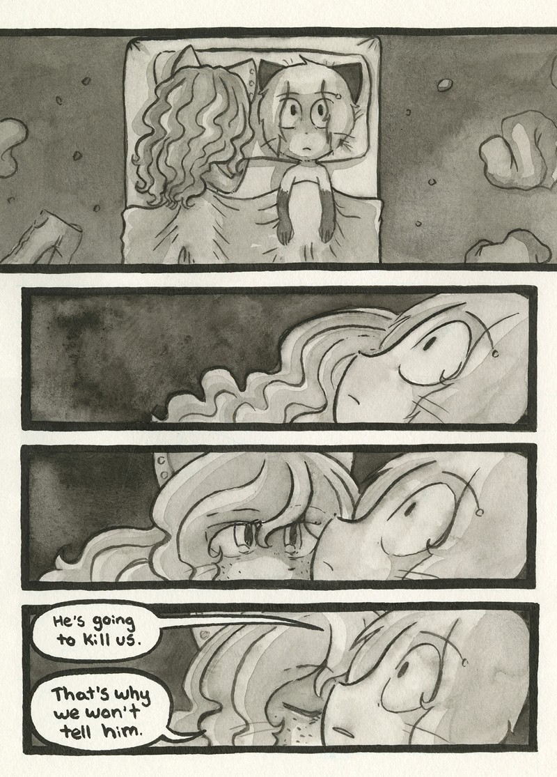 >>152958034I just realized I don't mind the new art style for this page as much. Maybe the background having those kind of sickly colors doesn't look so bad when it's an indoor setting. And somehow that bed itches my brain the right way, something about the thin, scratchy lines and the shading on the side makes it look cozy.>>152959556It's petty but I'm a little annoyed that this has been turned into something Mike can't really complain about without it sucking any less for him. Why couldn't she just cheat with somebody her age? Both in-canon and out, Mandy is an insanely dogshit relationship that you're supposed to want to see end, but now we've got this grooming thing to work through first. How's that even going to work?I'm really hoping the story hurries up and has Mike and Sandy start to think about the implications of Francis being so much older than her. I think that's what we're in for. If they never address it, then the story is functionally Sandy throwing her cheating in Mike's face repeatedly with unnecessary, uncomfortable subtext.