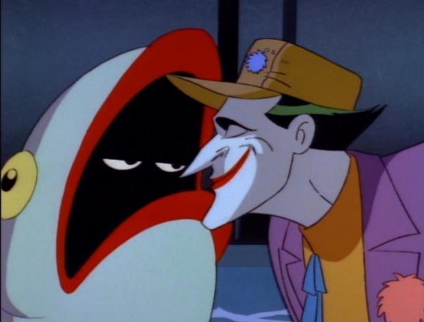 >"Harl, be a dear and slip into something more... comfortable">"Aw Mistah Jay, not the Fish head aga-">"The fish head again Harley!"