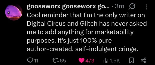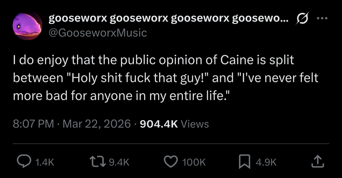 Caine returning but having to work WITH humans instead of ABOVE them thus also being liberated from his own stagnant life along with everyone else through cooperation, is so transparently the endgame I am genuinely floored we are even having this discussion.