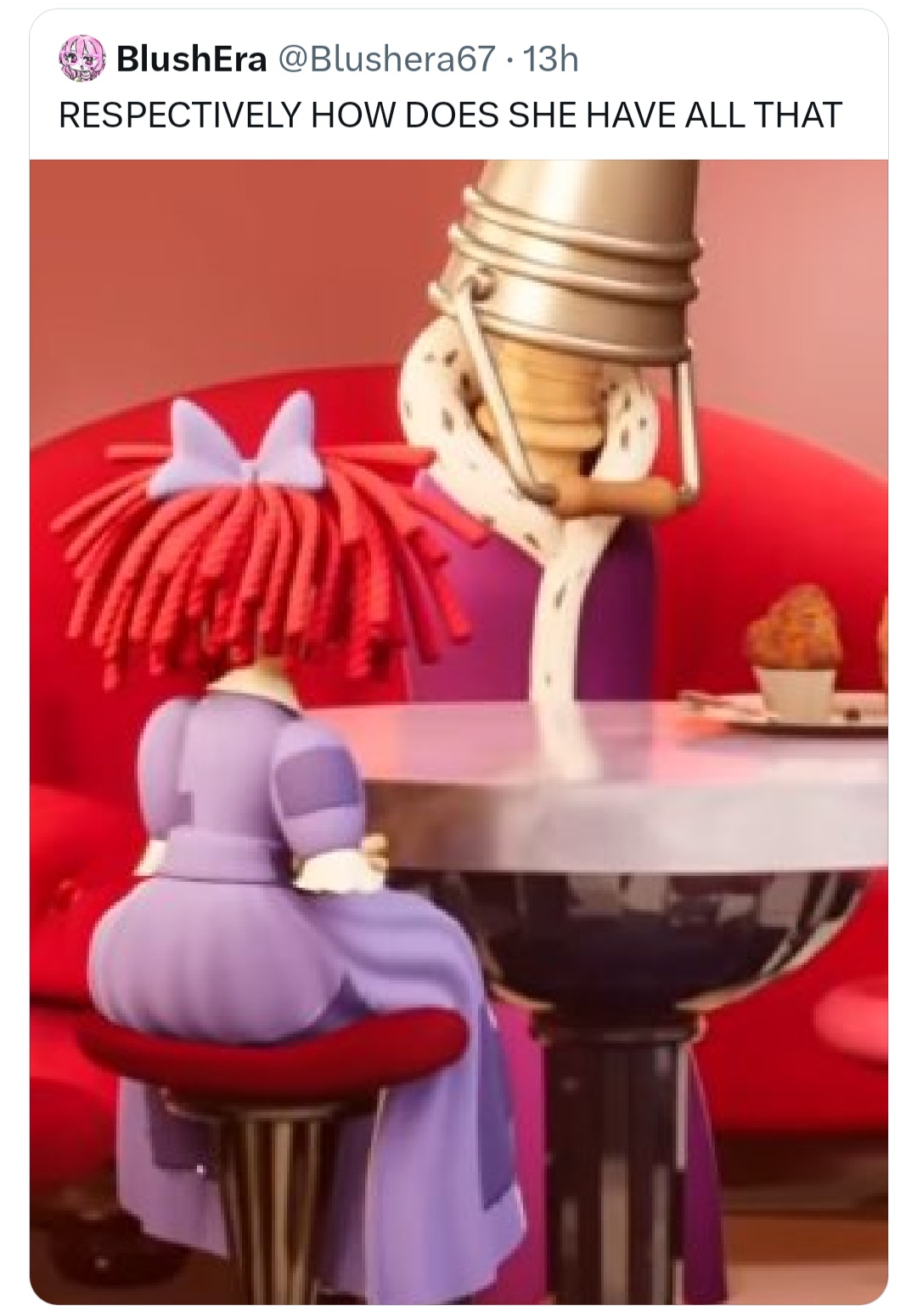 >>152969167Yeah I thought it was the lamest too especially compared to Raghatta's or Jax's which were kino. Pomni I can excuse since she's the newest and Zooble's probably that shallow lol stupid bitch.