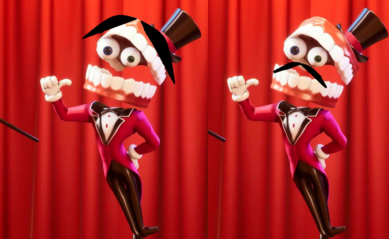 >>152971595>Editor, Photoshop Caine's teeth brown.