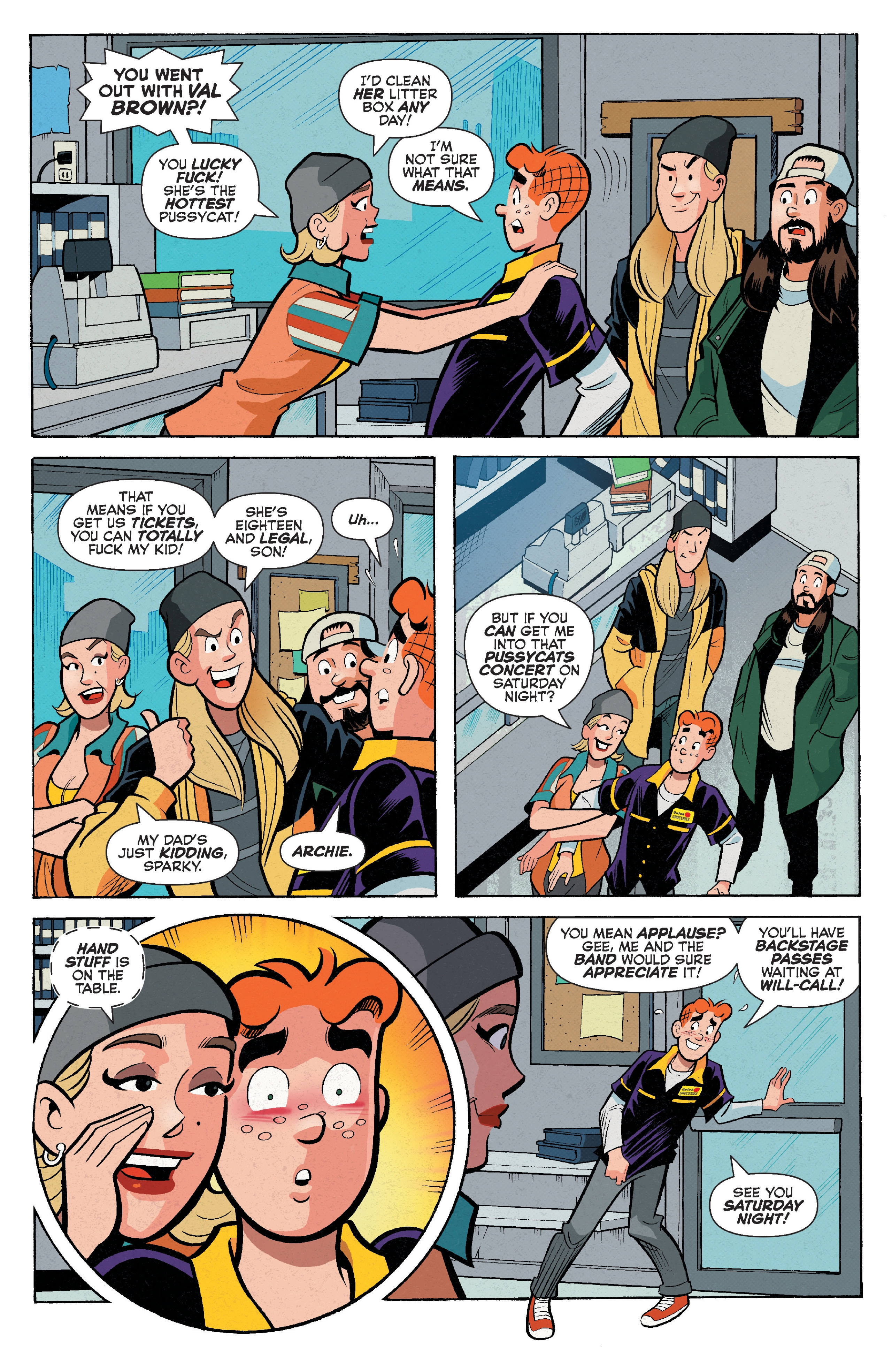 >kevin smith writes a jay and silent bob crossover with archie comics>milly, a character played by smith's daughter in the newest movies, makes an appearance>she offers to give archie a handjob in exchange for josie and the pussy cat ticketsWhat did Kevin Smith mean by this?