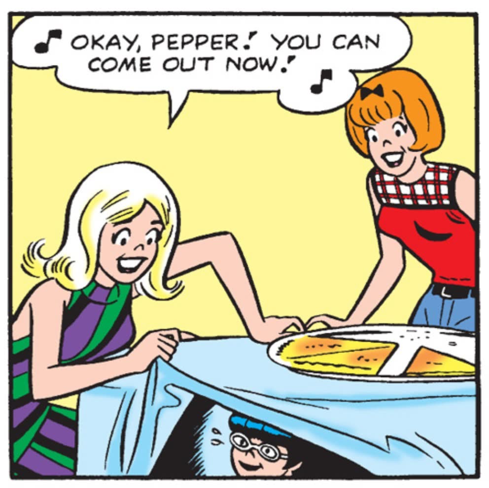 >>152979980That's not what Archie's been doing, though. Or what's happening here, either. It's the two-worlds-collide trope, which has been a big hit with fans (and the creator) for years, particularly since the Punisher/Archie crossover, where the contrast between the two was fucking glorious. I mean the gag here isn't that Archie and pals are swearing now, it's that he's so clean-cut he doesn't catch on when somebody from outside Riverdale is talking about sex.