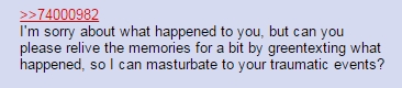 >>152980249>how filthyOh, you'll absolutely permanently lose your sense of smell after spending over 90 minutes inhaling a Jax fujo's rotting pussy filthy fumes