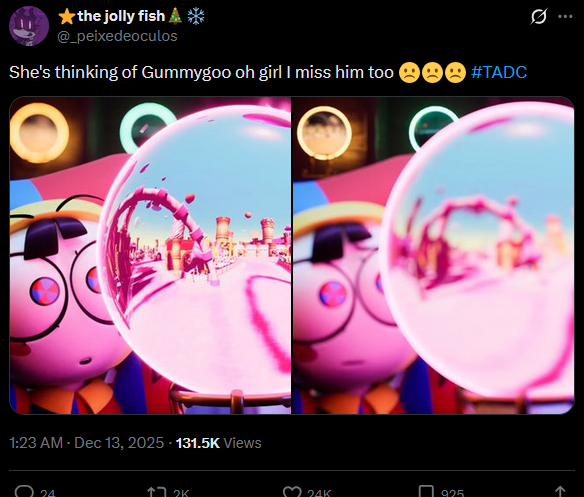 >>152979714>>152979800It's the opposite of confirmed>Kovach says he was just following the direction, has no information except that they wanted him to sound a lot more upbeat than usual for the scene, and more like normal Jax for the main ad read>The director for this was not Goose, and there were separate directors for the scene and ad segmentshttps://xcancel.com/kovox/status/2037305330737324059#mBut still, the direction note to be so much more upbeat is suspicious, I feel like signs point to this being set in the days before Ribbit was gone. Which is pretty irrelevant, since the ads operate in a separate continuity, but it's still cute