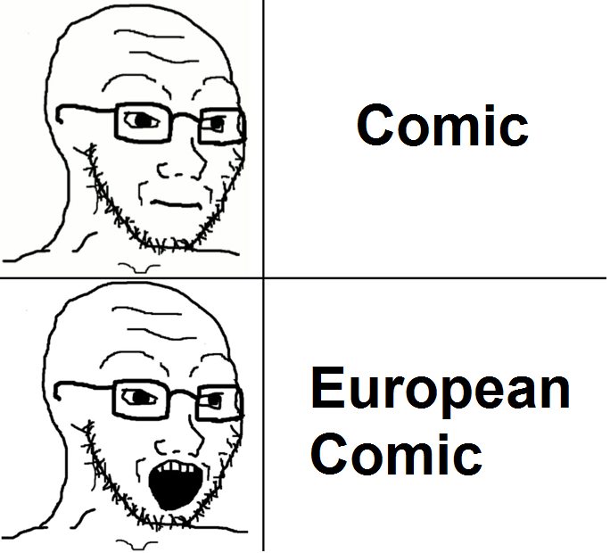 >>152982861>Are comic book stores in France/Europe really that good?Not necessarily. The good thing about Eurocomics are that they aren't stuck in the rigid superhero genre for the majority of their publishing. You get a lot more variety, and since everybody isn't forced into one of two companies to work on the same content, you get better stories that aren't forced into being another Superman or Batman comic by executives.
