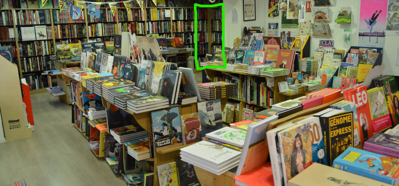 It's pretty good. This is a picture of a comic book in my city that is pretty decent. For comparison's sake the average space dedicaced to american comics is shown in green (it's not the actual shelves but it's about the same amount)