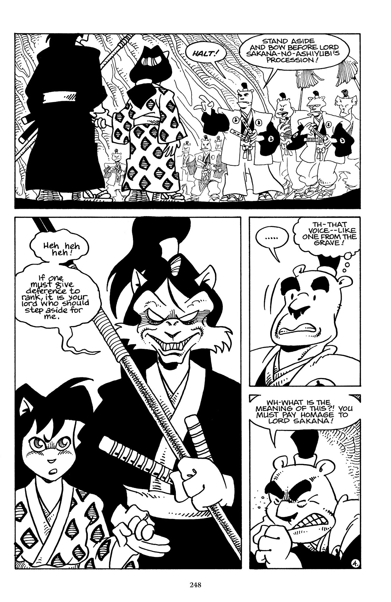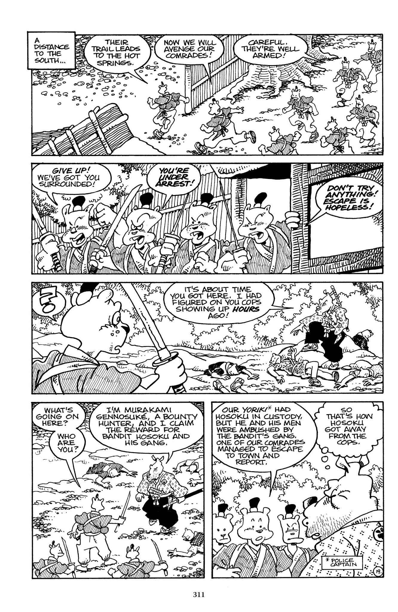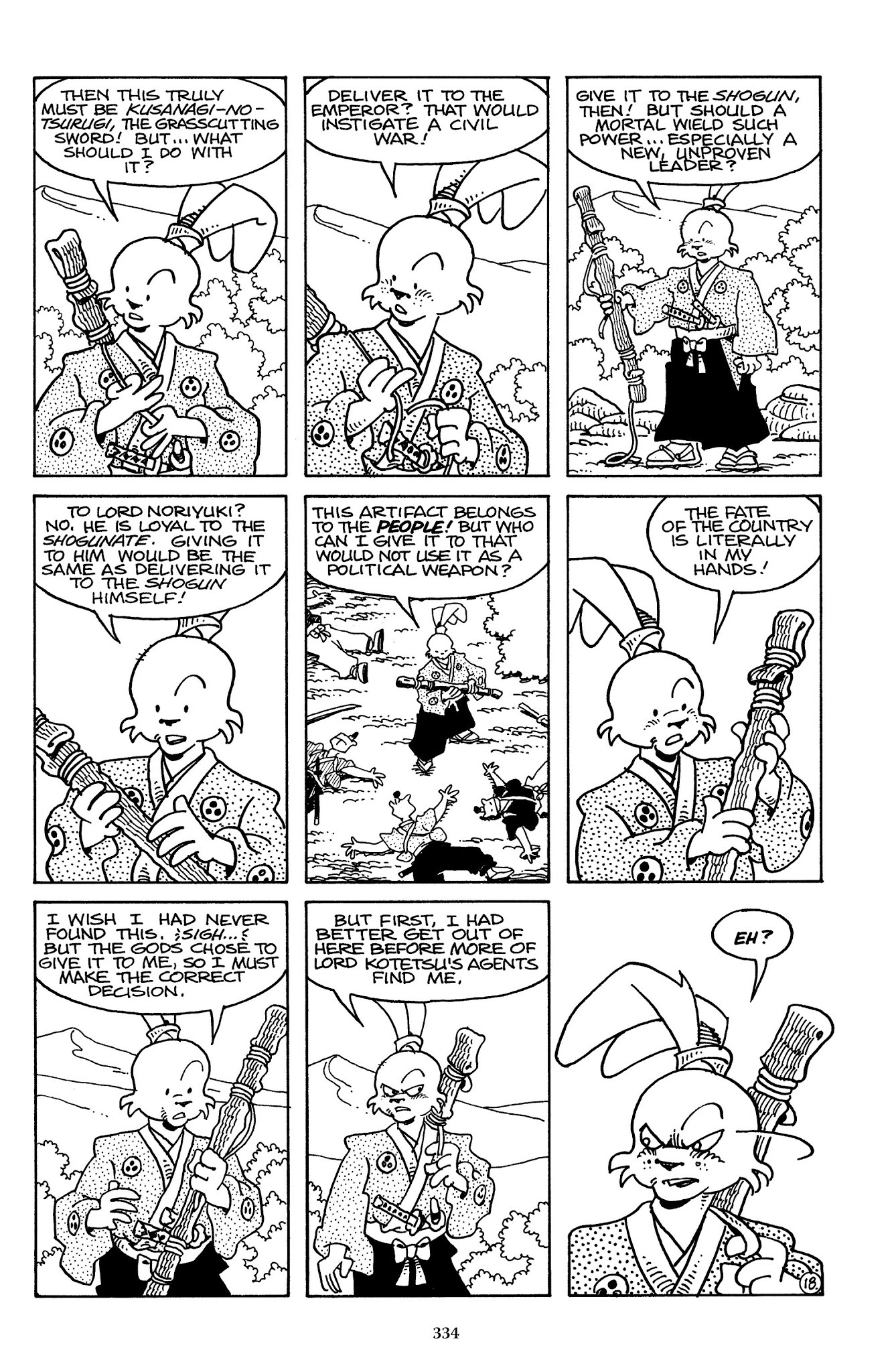 >>152983630Yes, that page (and the date of this adventure) pretty much establishes 100% that Ieyasu is the present shogun. However, it causes a great deal of oddness with the Usagi chronology since that implies that the Battle of Adachigahara (which occurred when the shogun's peace was new) was less than two years ago at this moment in the storyline. Which isn't impossible, but it implies that we've seen Usagi's entire wandering life, pretty much from the very moment he became a ronin.