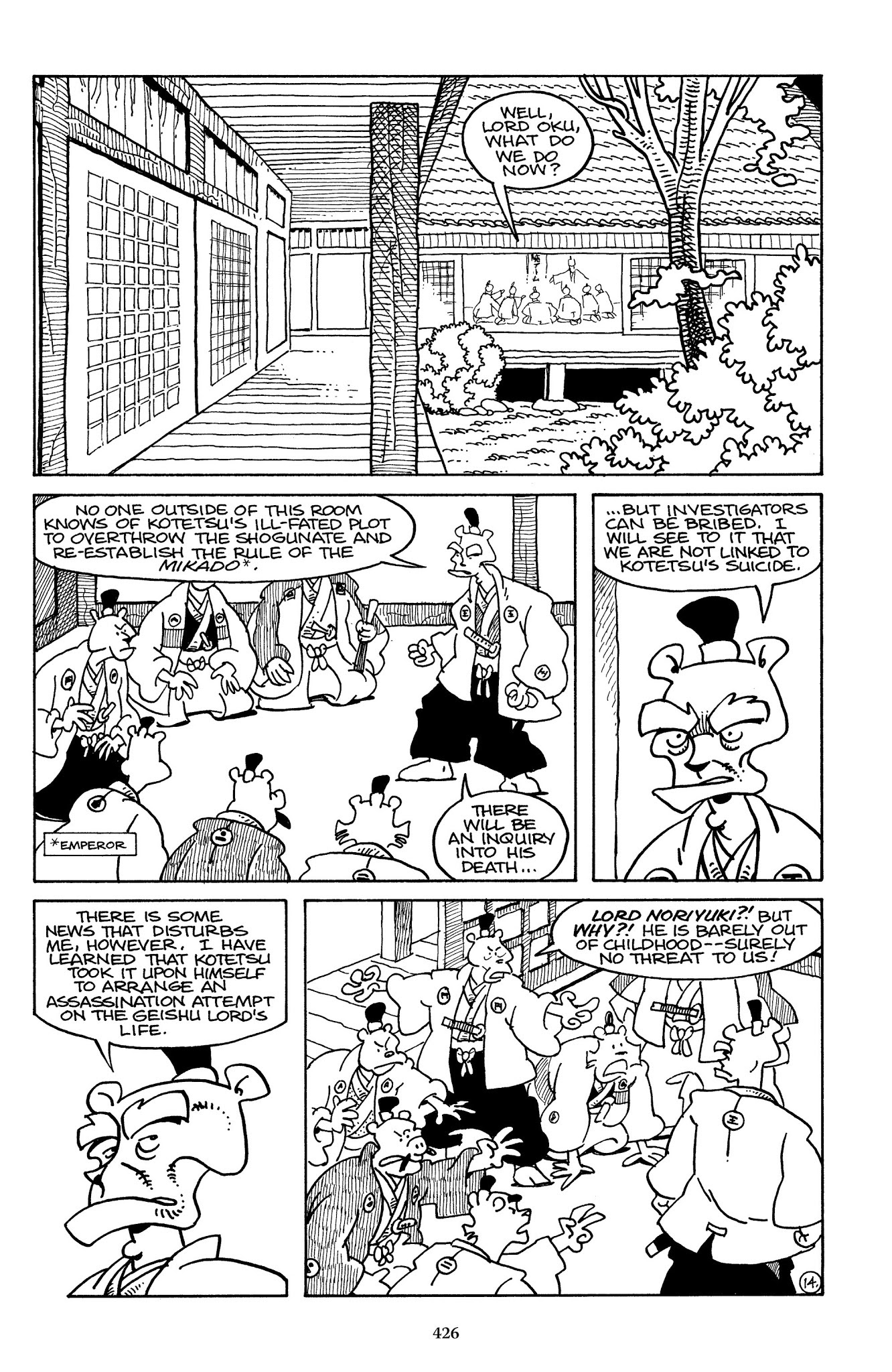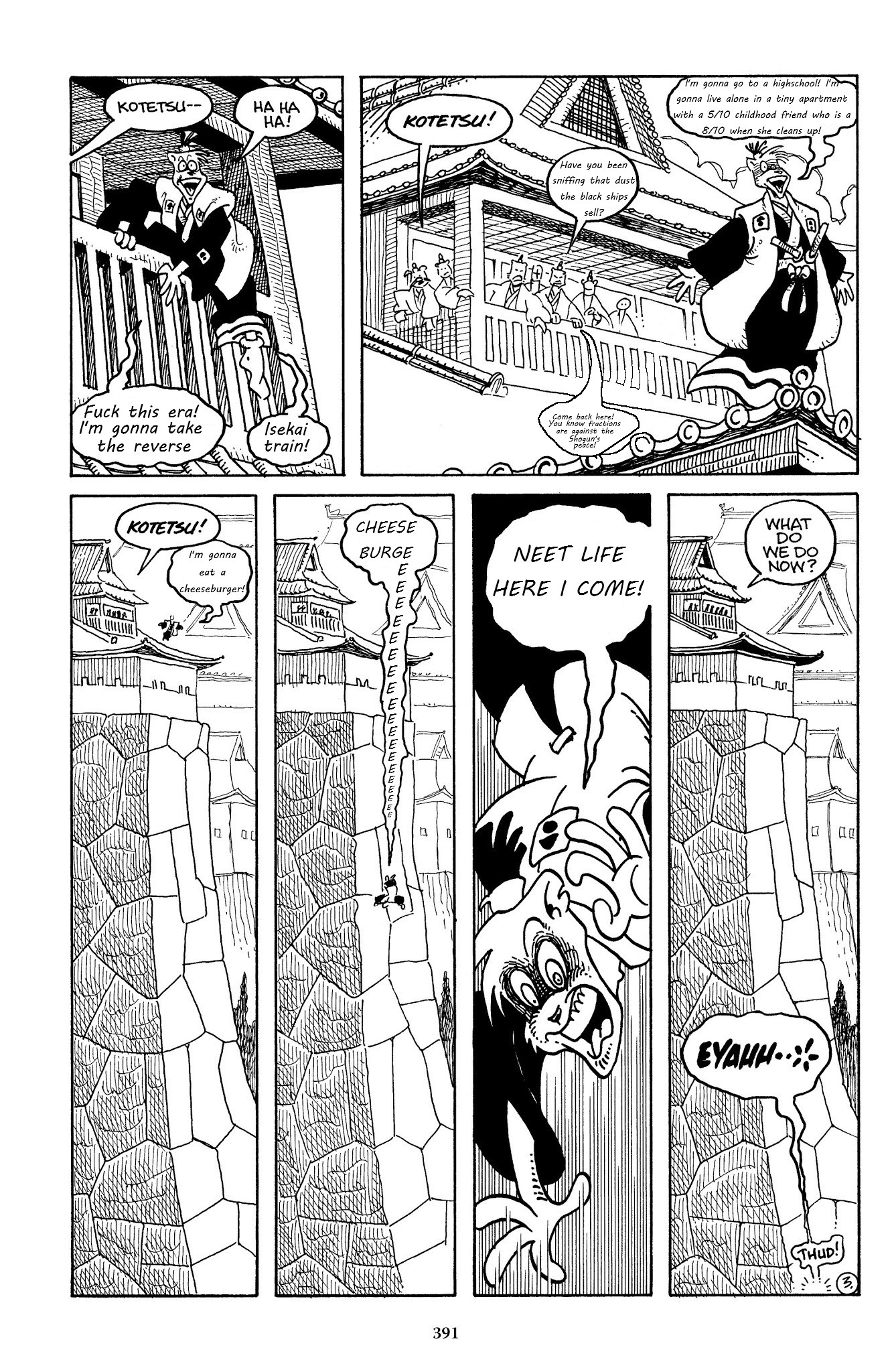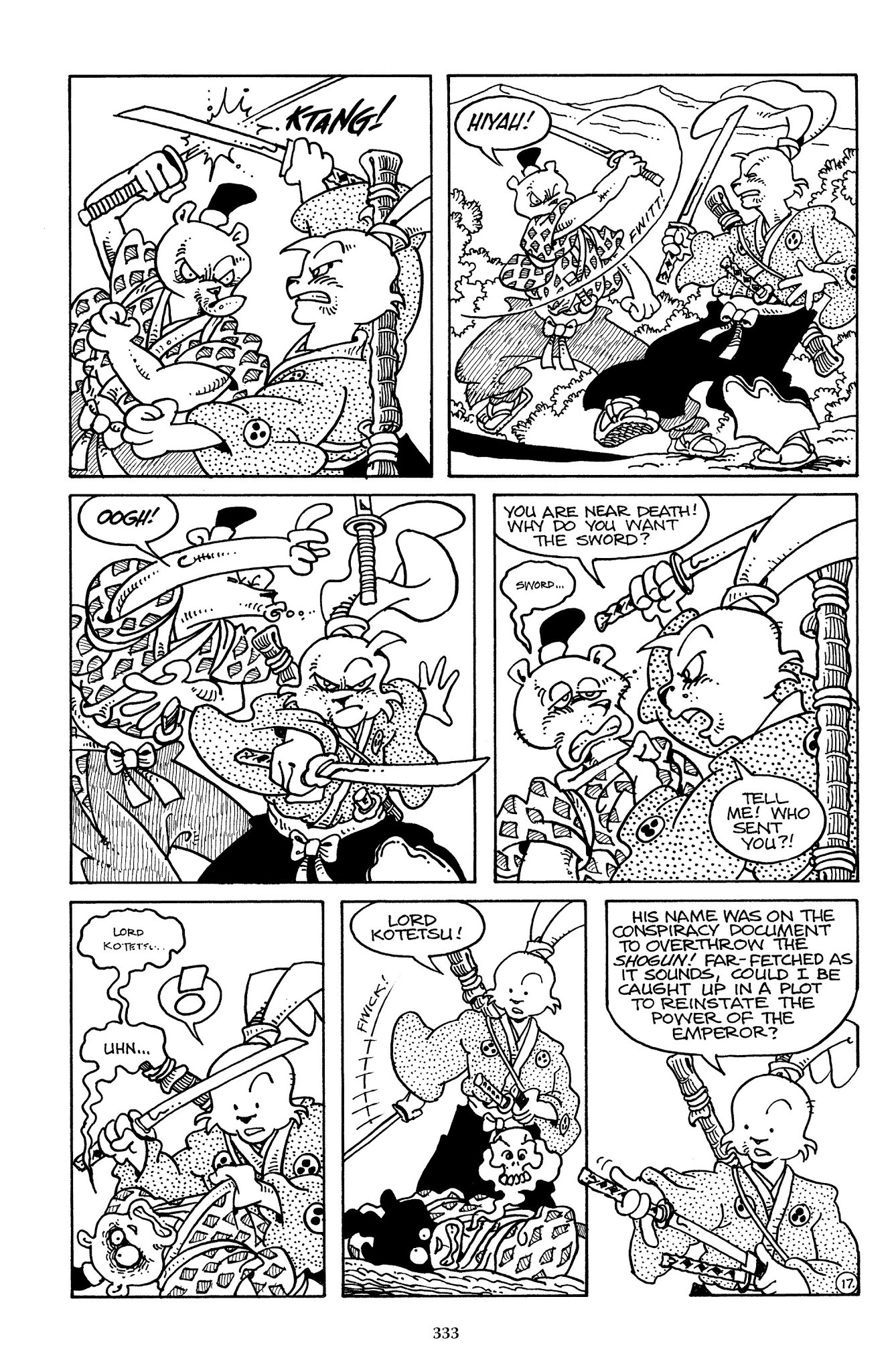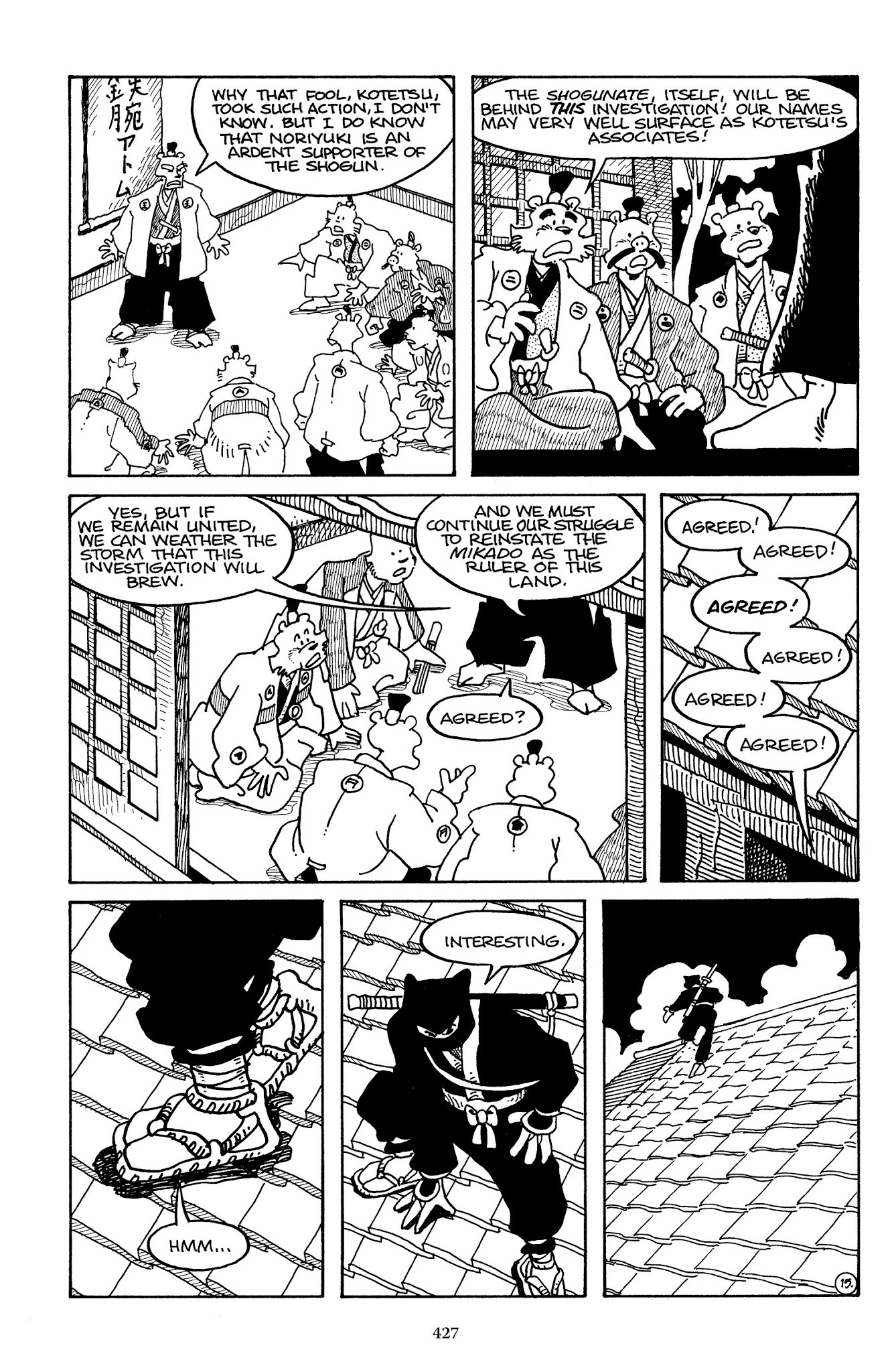 >>152983630Yes, that page (and the date of this adventure) pretty much establishes 100% that Ieyasu is the present shogun. However, it causes a great deal of oddness with the Usagi chronology since that implies that the Battle of Adachigahara (which occurred when the shogun's peace was new) was less than two years ago at this moment in the storyline. Which isn't impossible, but it implies that we've seen Usagi's entire wandering life, pretty much from the very moment he became a ronin.