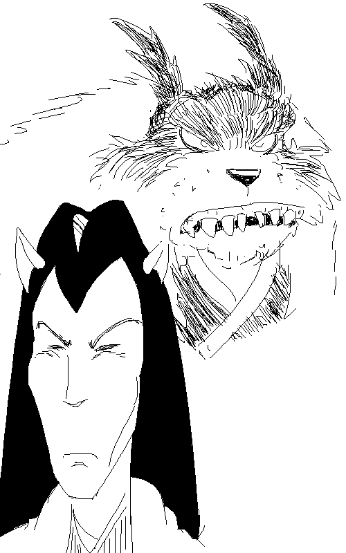 Thread's already getting close to bump and this is a heady story with a good chunk of characters to add to the art (even if ignoring ones like Izanami and Izanagi, Susano-o, Yamato-Sake, some of the ones in the war bit, we still have at least two of the conspirators, the witch, her familiar, and Jei-Inazuma) and to be honest I want to play vidya today so I'll probably just do a massive update with a bunch of characters next Monday or sot.guy what's been drawing characters every day