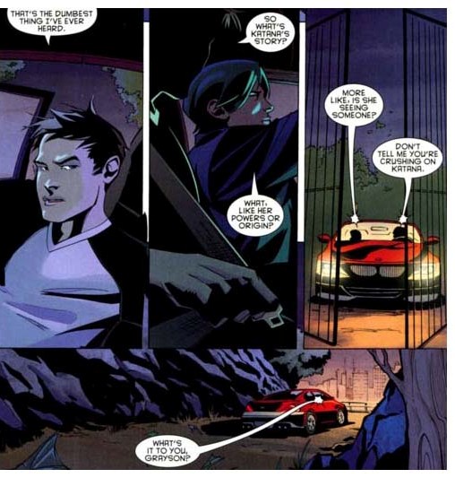Katana is a widow and mother who buried her children, set on a bloody, grim path of revenge, with the occasional pit stop to leer at Superboy Prime.
