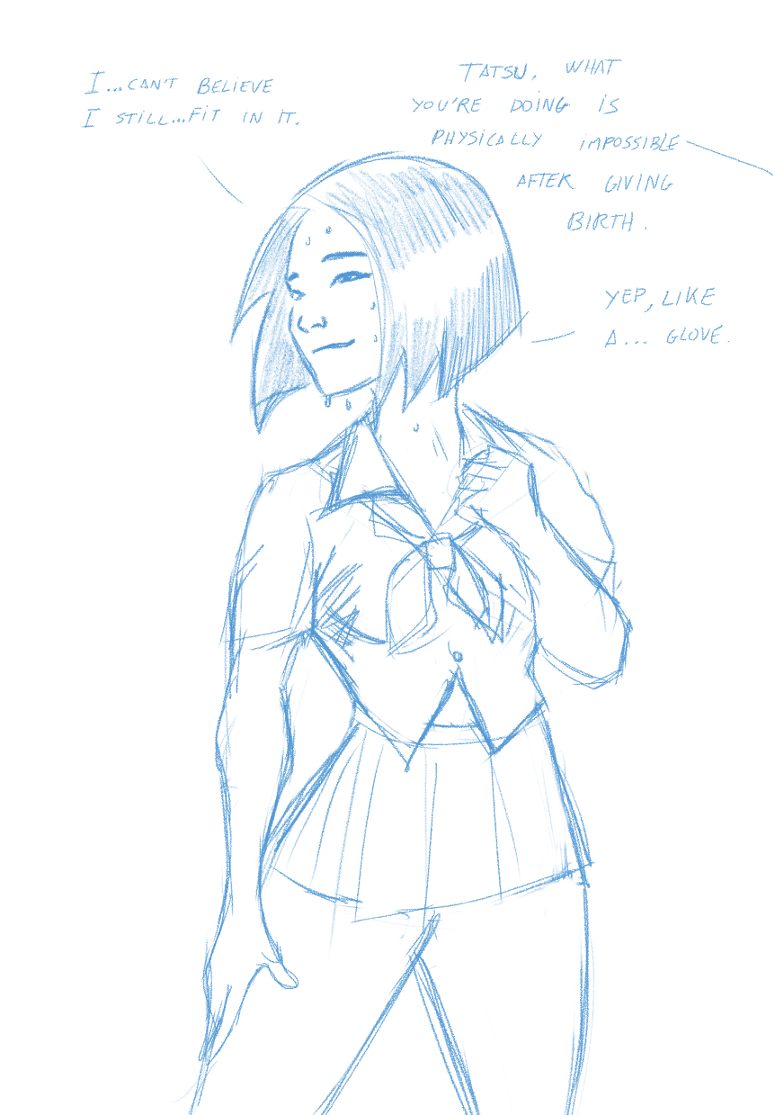 >>153032847Regular Tatsu won’t admit she’s one size too big for that costume.