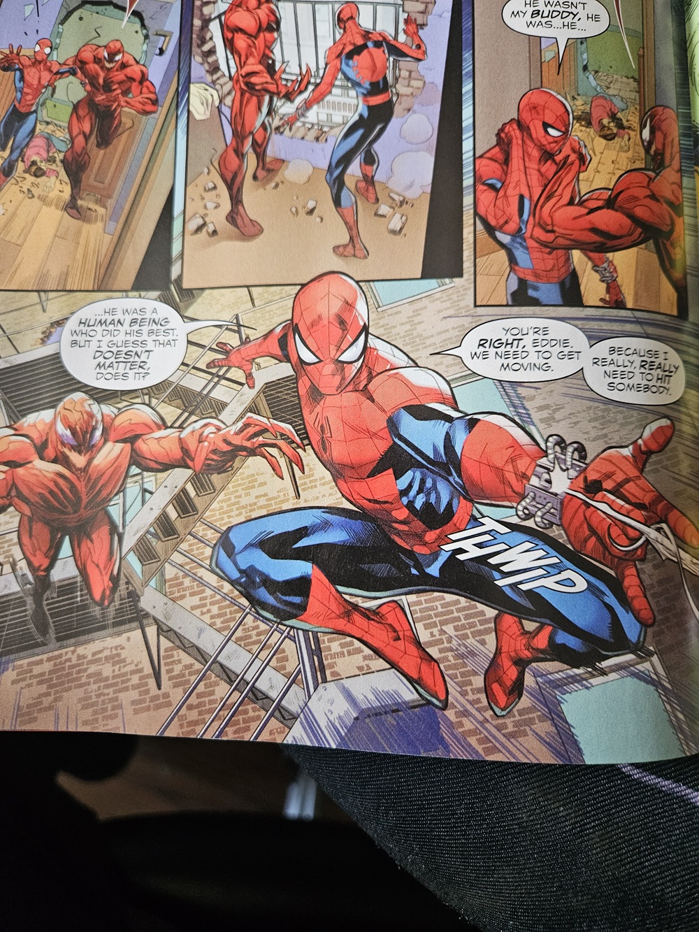 Is this guy just retarded or what? And why are you believing him instead of the multiple panels posted here and Carnage/Eddie himself confirming the death.