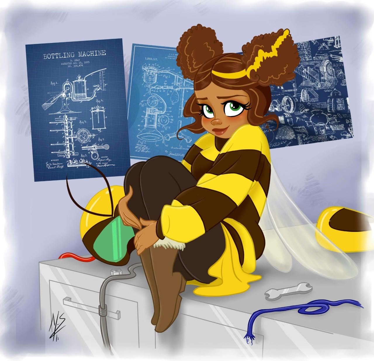 >>153021478A mature bee in a playboy bunny outift(still not busy enough to fill it out)