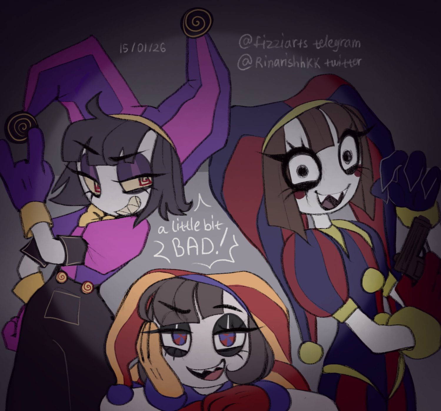 Someone suggested to me that I should draw jester but in dotflare pomni proportions. Which got me thinking, if duffy actually gave jester that type of body how many people will watch this little horror au?