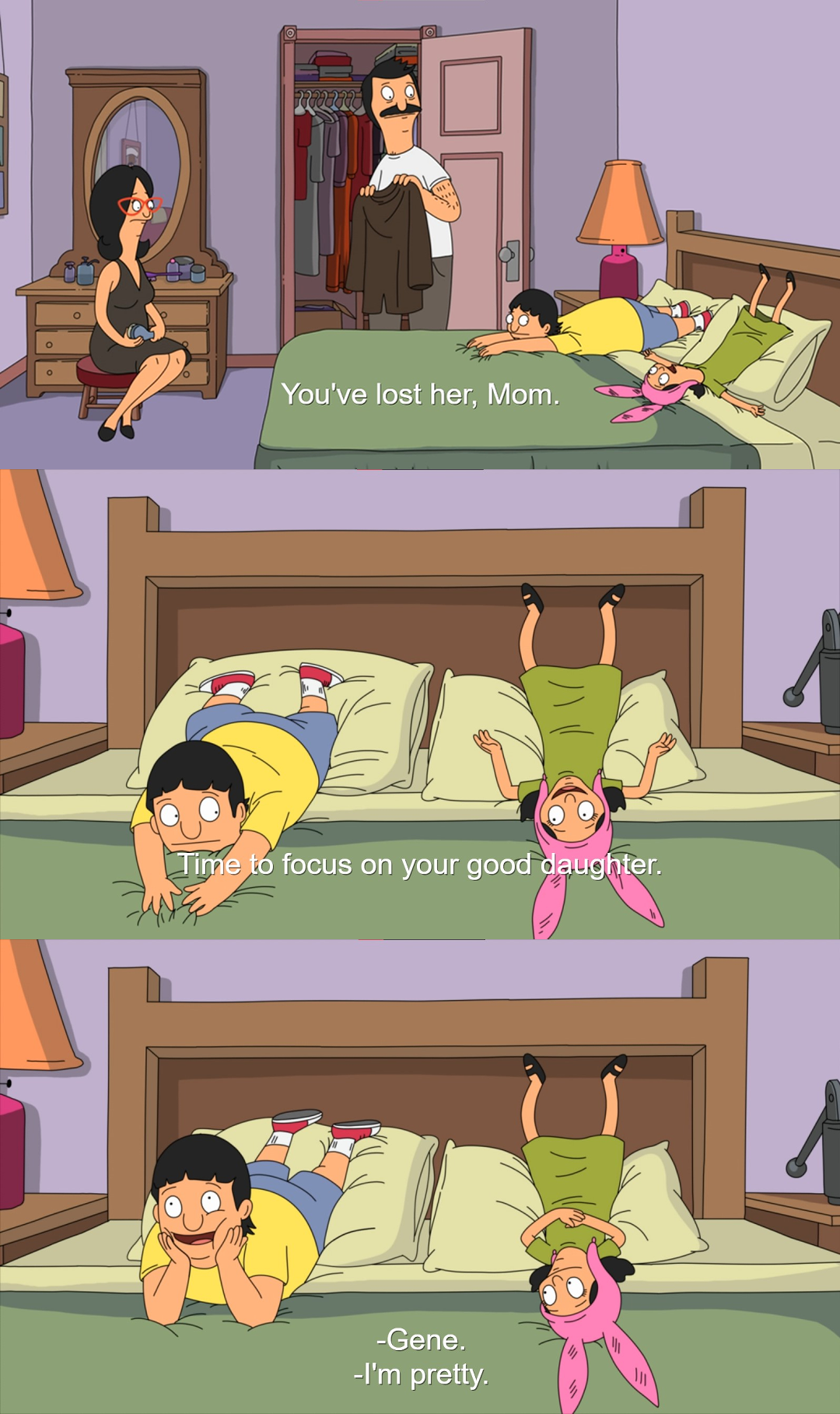 I liked it up to the movie. I like the weird quirky family. But really I feel like the family has this rule against developing probably because it's episodic like sometimes Gene will be in the background and make lewd jokes implying he knows more than a kid he should but most his episode feels like he acts too young for his age.