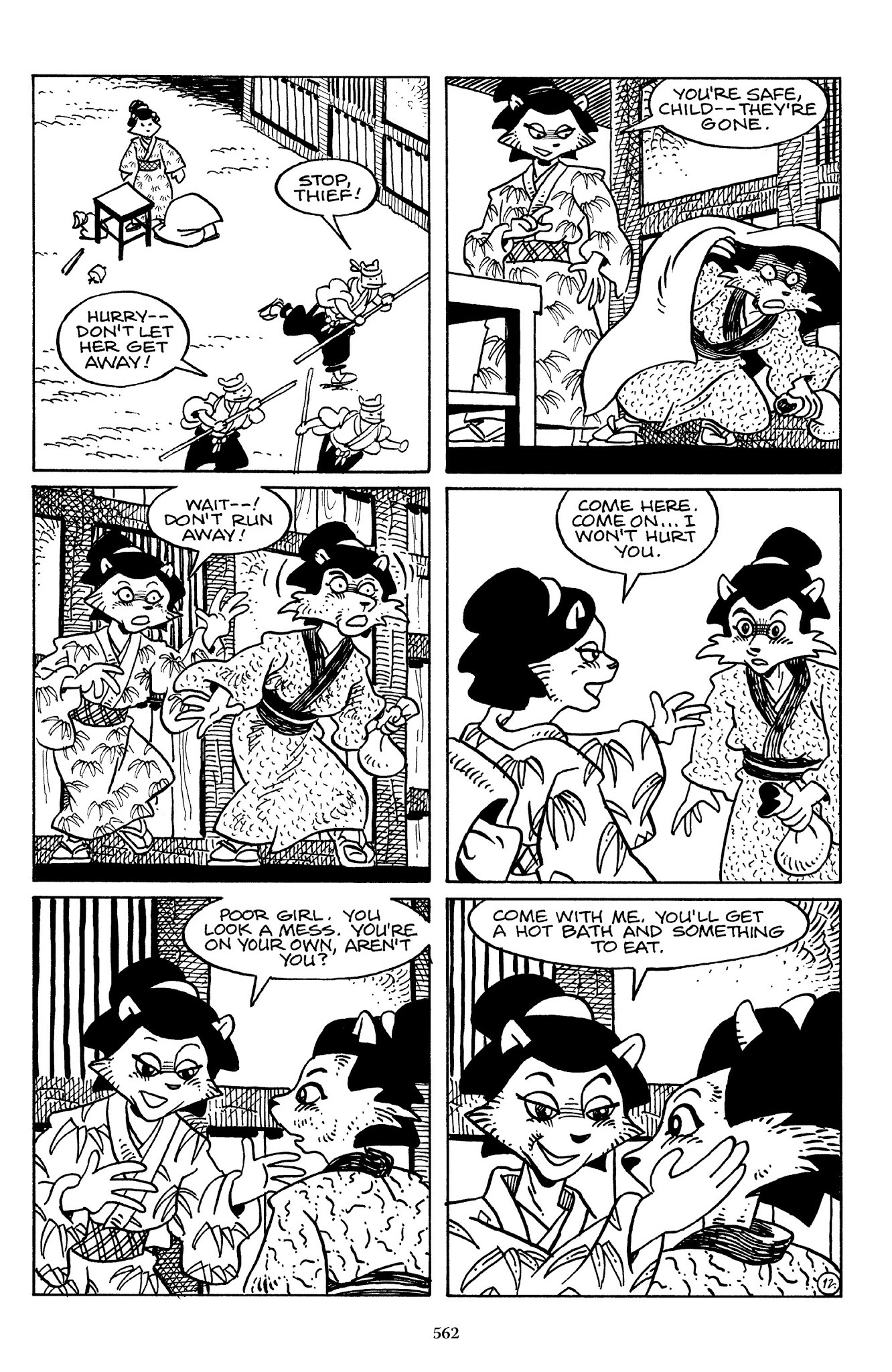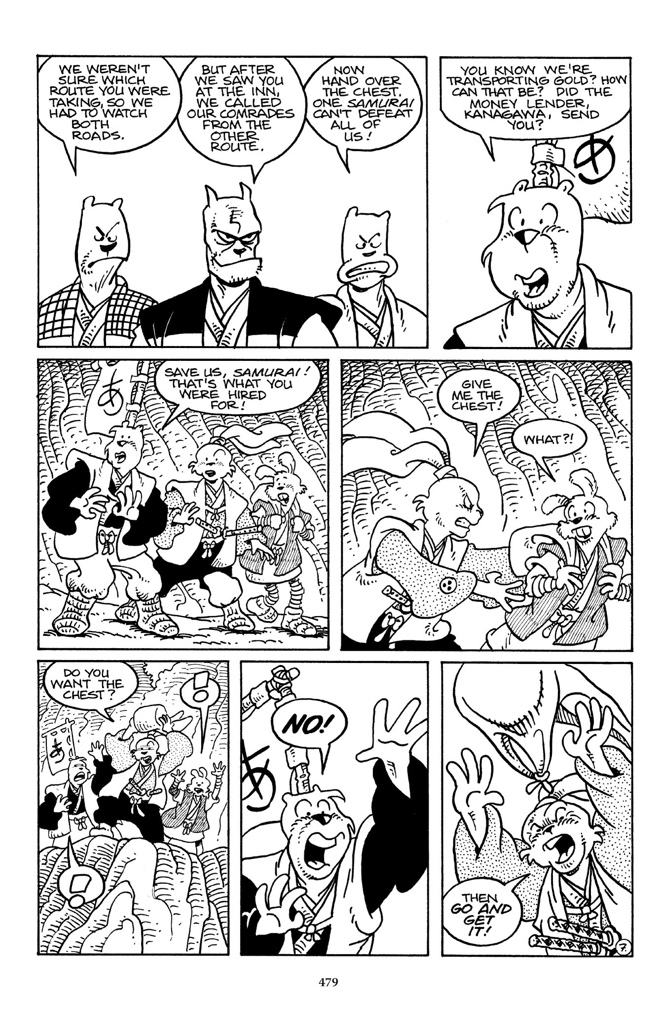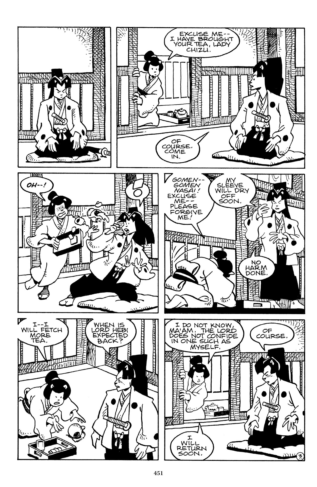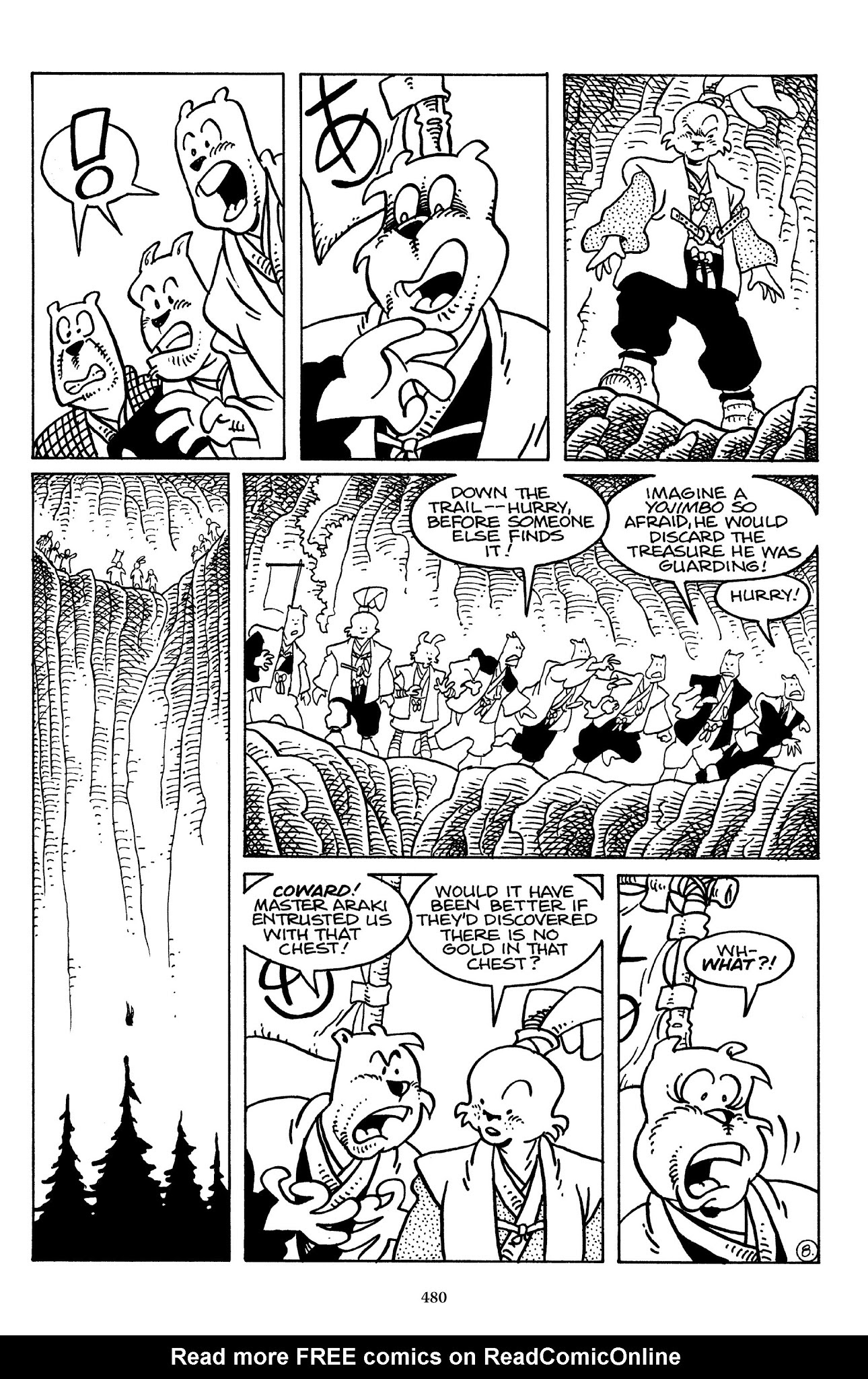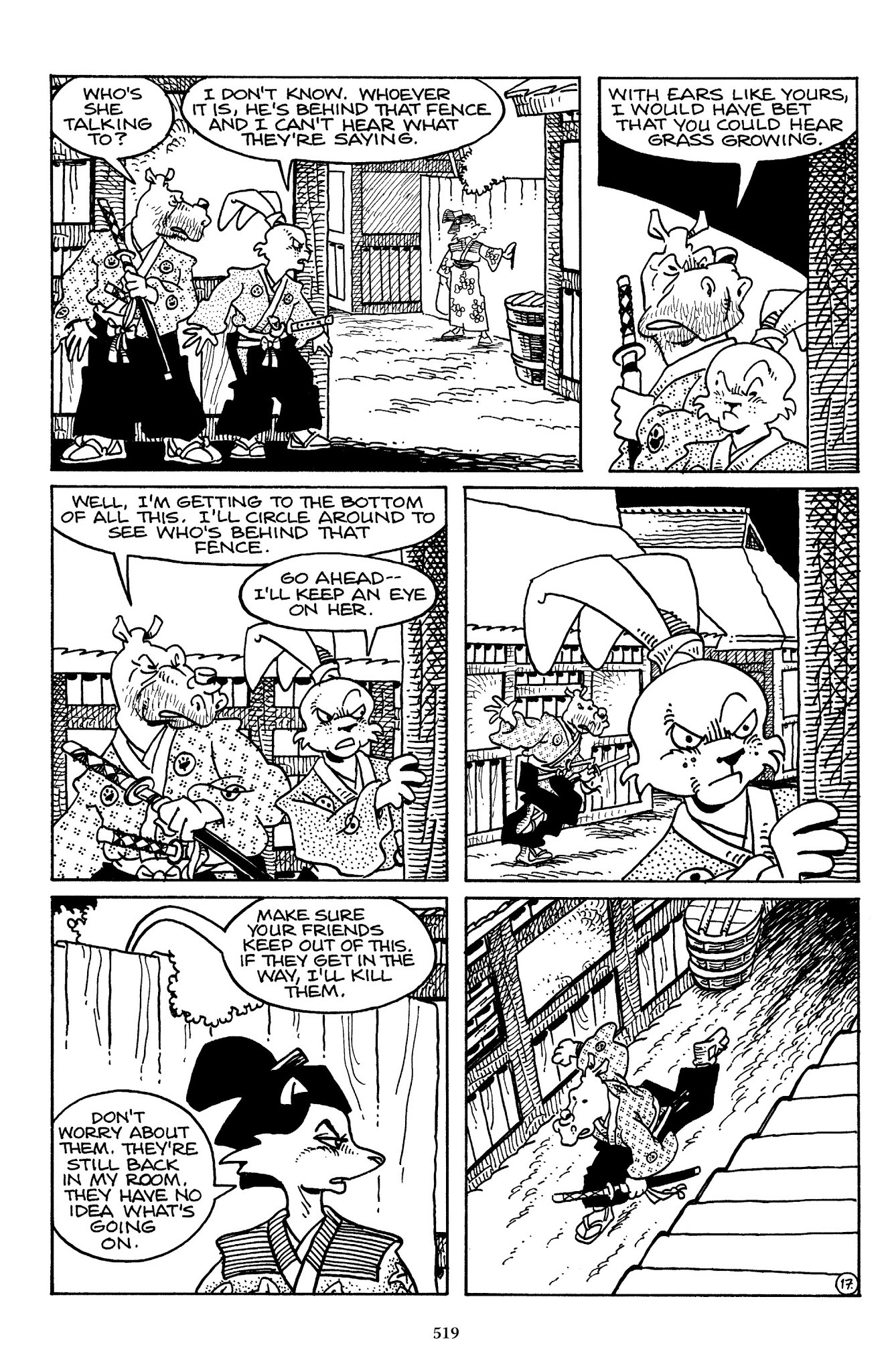 I can't believe how evil Usagi is, encouraging a child to go learn swordfighting with a hermit in the mountain. Does he not get he's endangering him, setting him up to be possibly killed in the future in a fight?