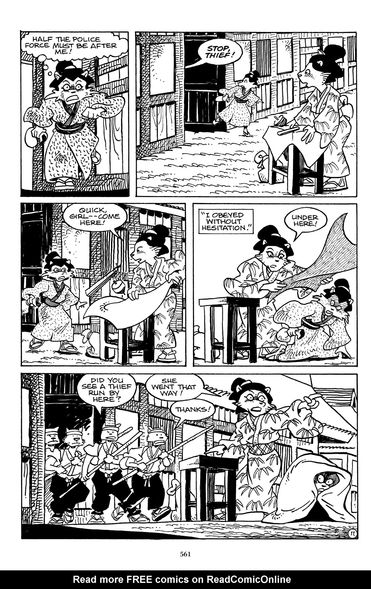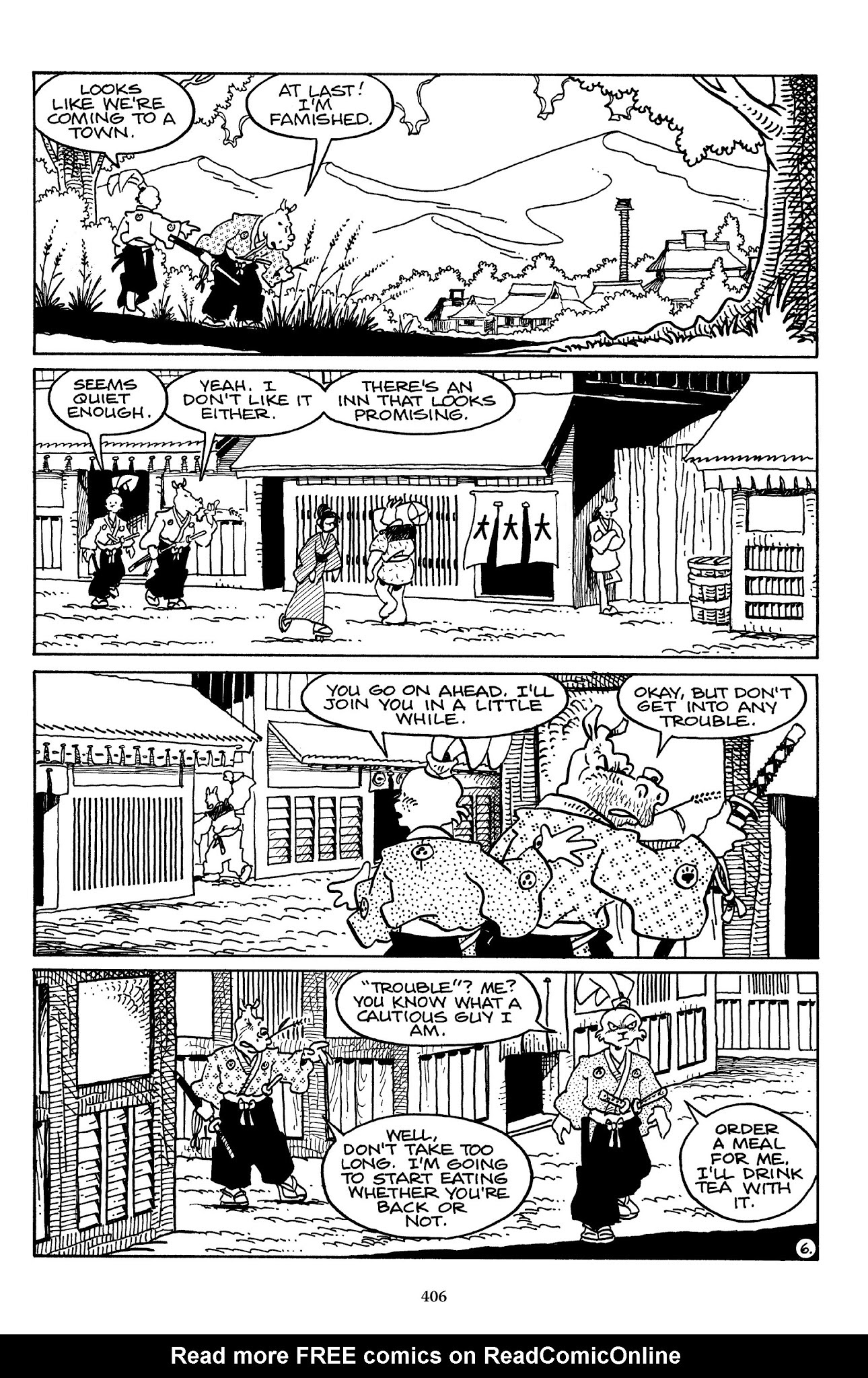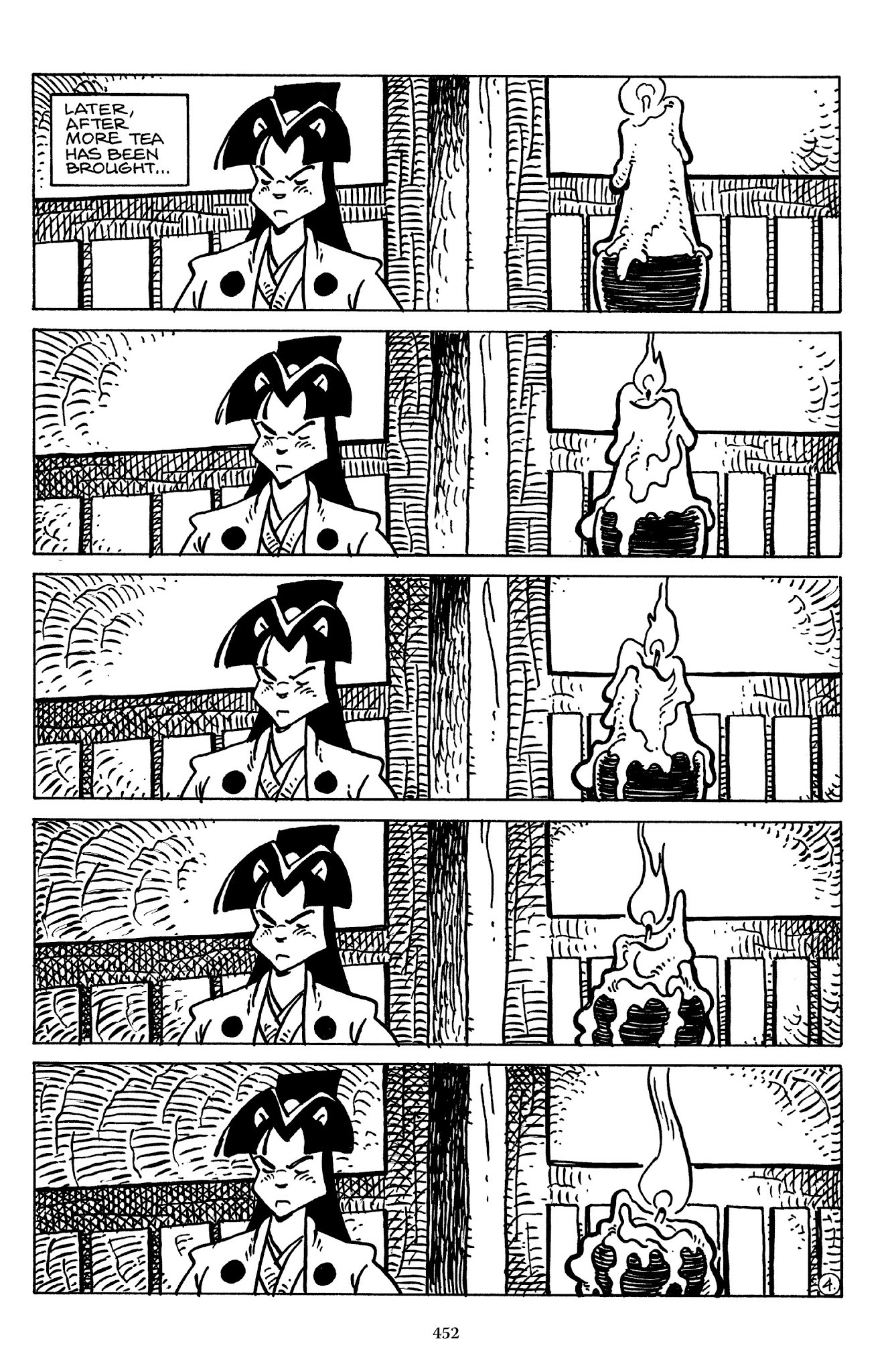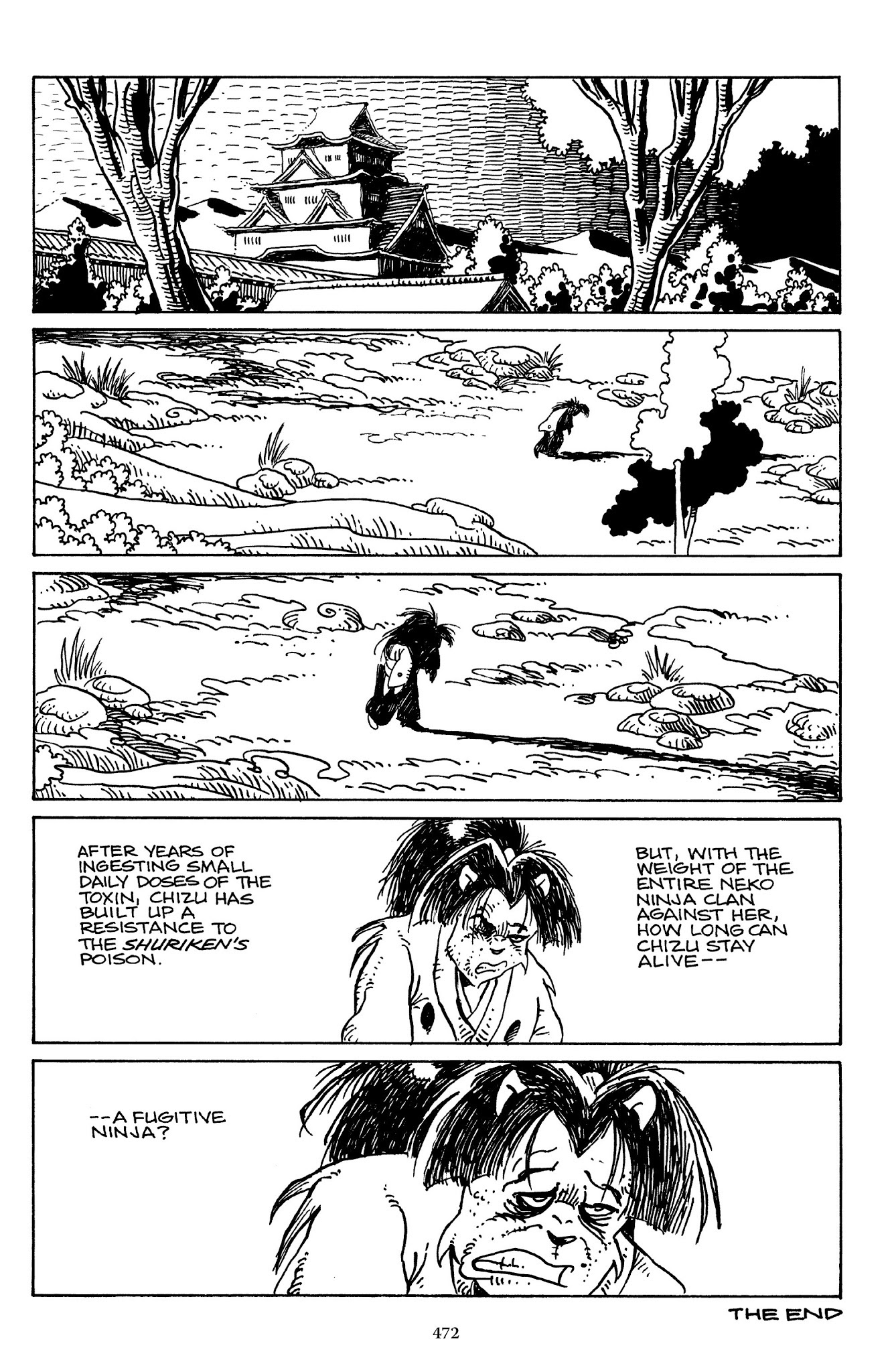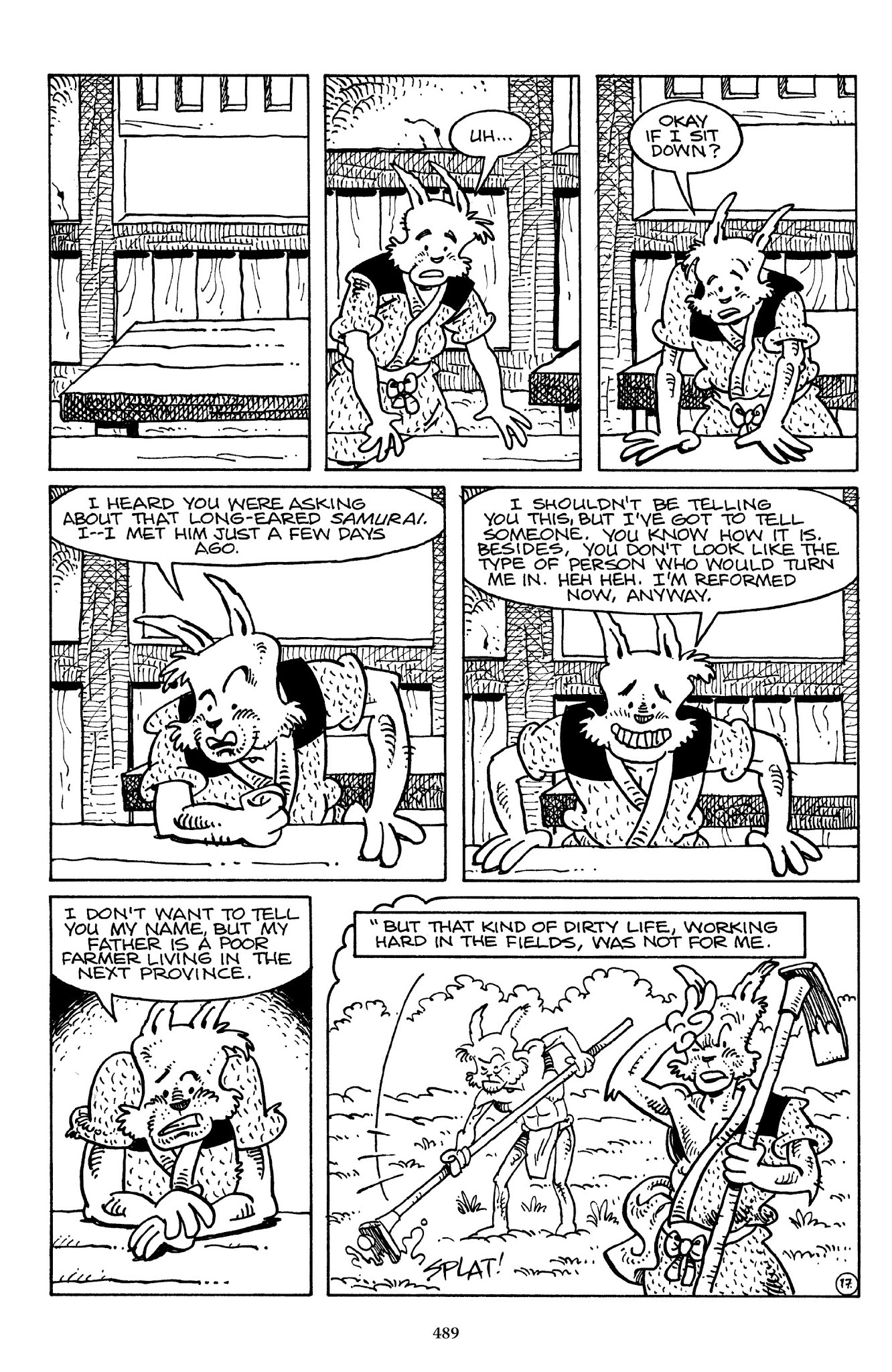 I can't believe how evil Usagi is, encouraging a child to go learn swordfighting with a hermit in the mountain. Does he not get he's endangering him, setting him up to be possibly killed in the future in a fight?