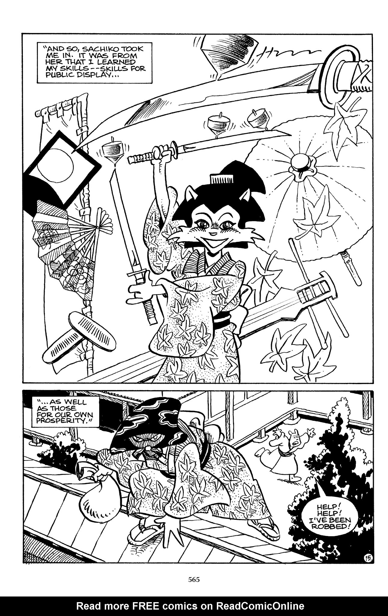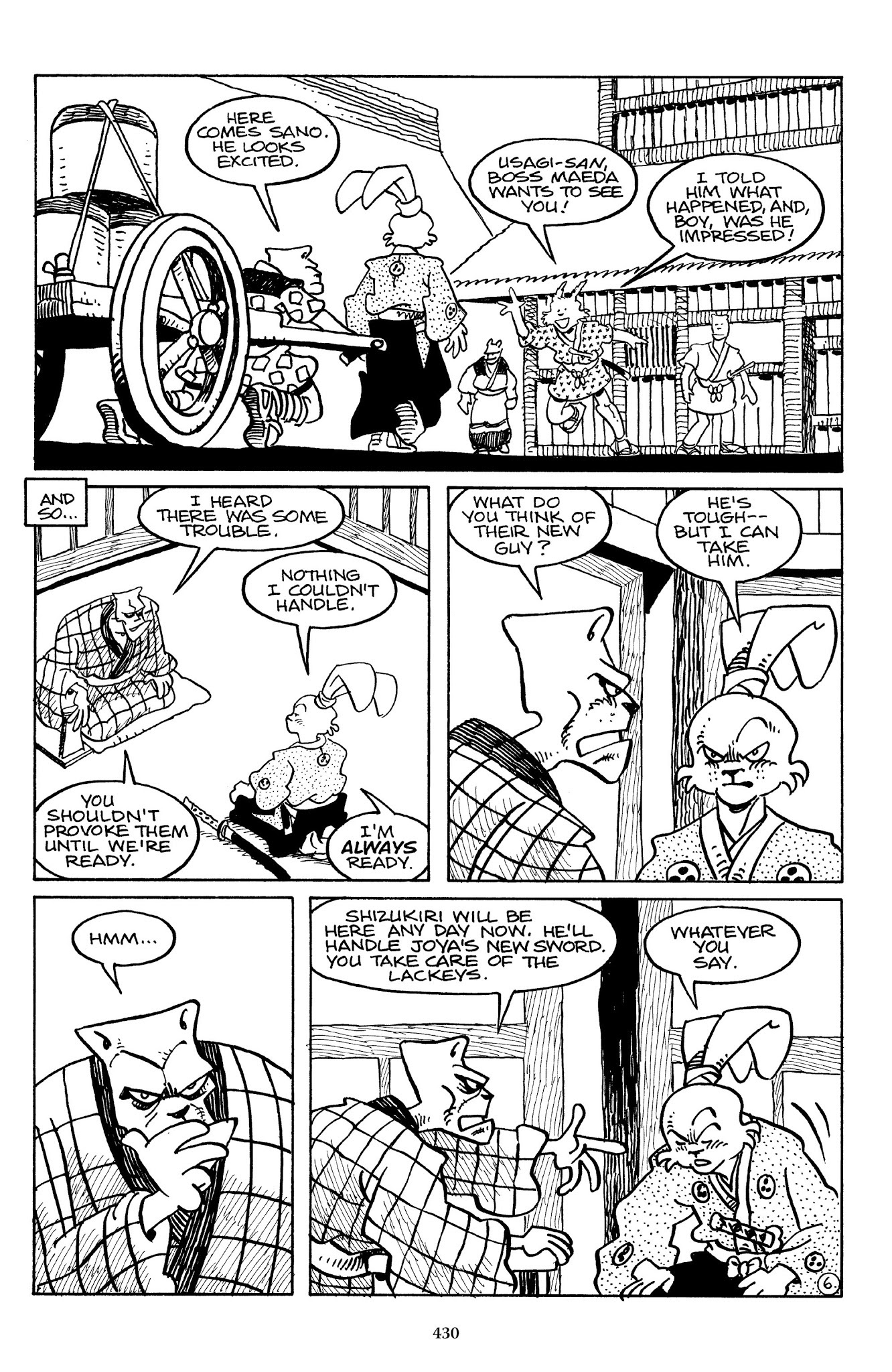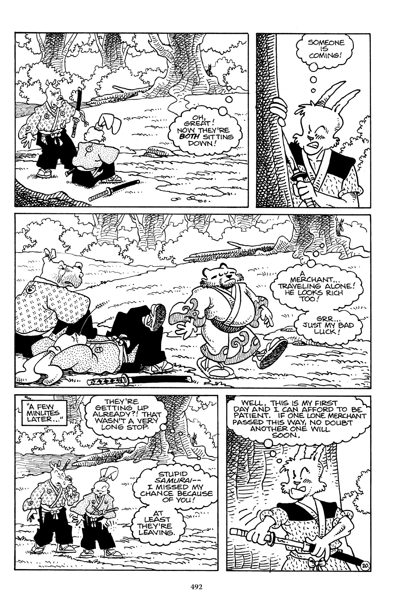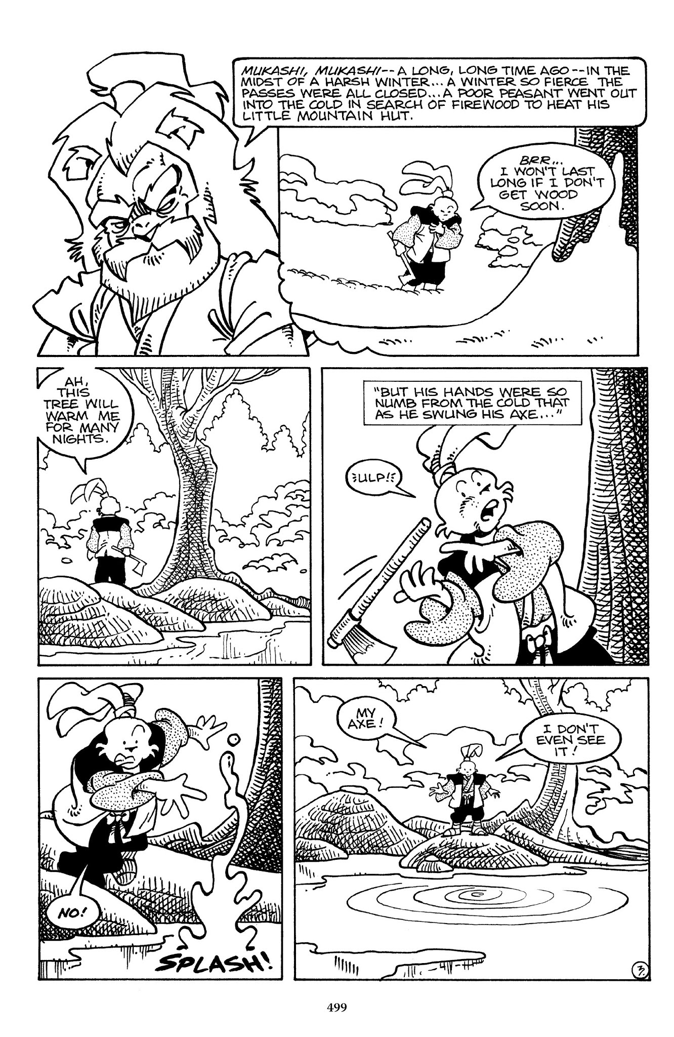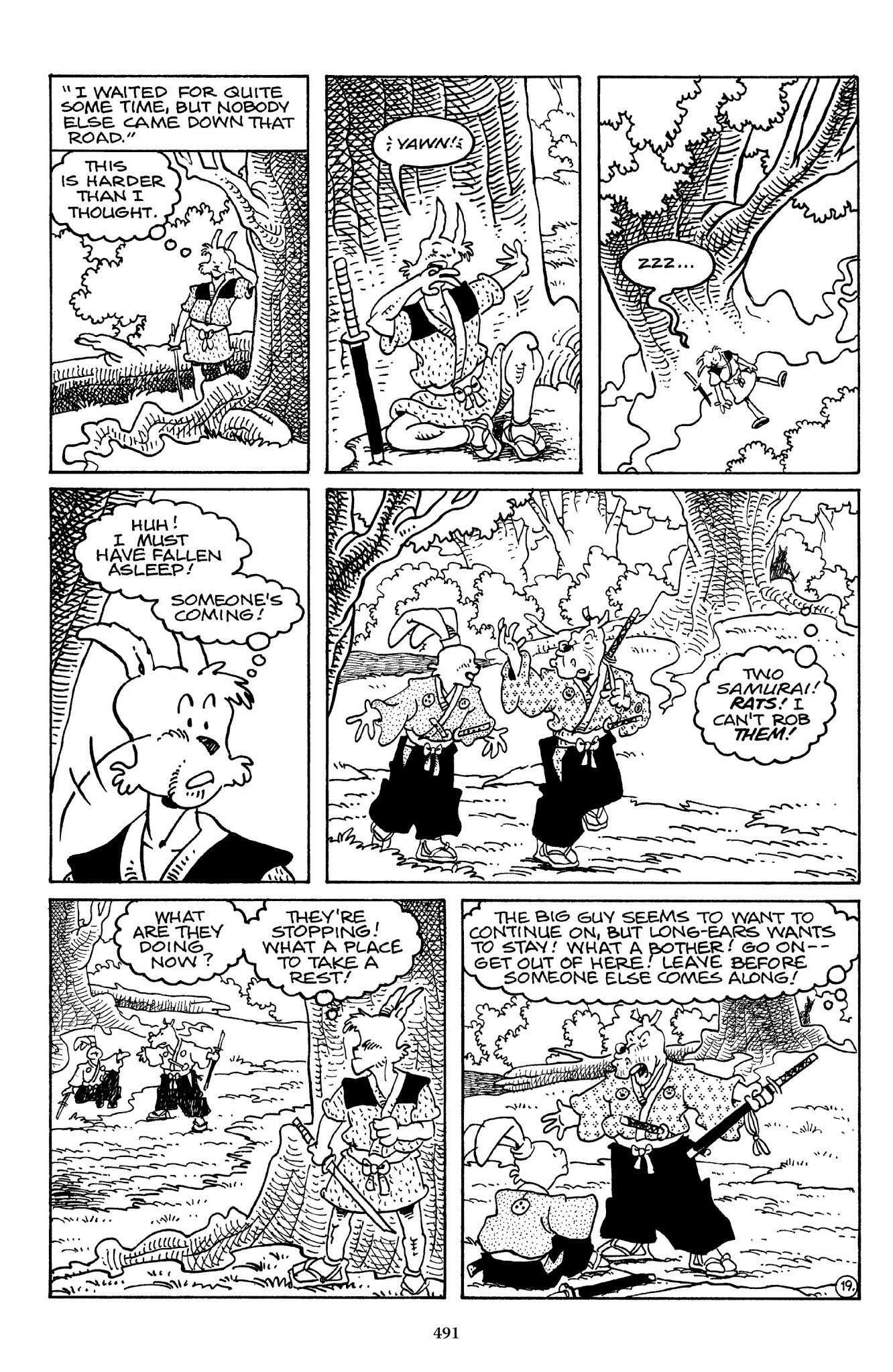 I can't believe how evil Usagi is, encouraging a child to go learn swordfighting with a hermit in the mountain. Does he not get he's endangering him, setting him up to be possibly killed in the future in a fight?