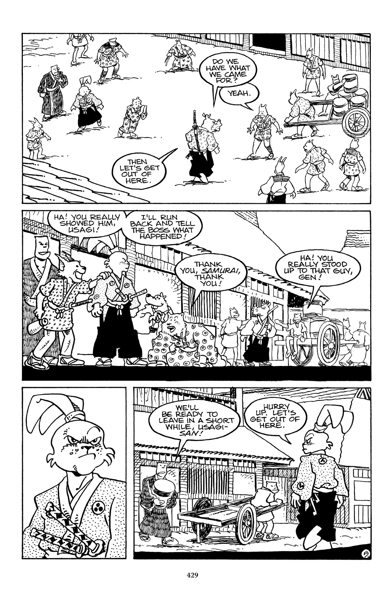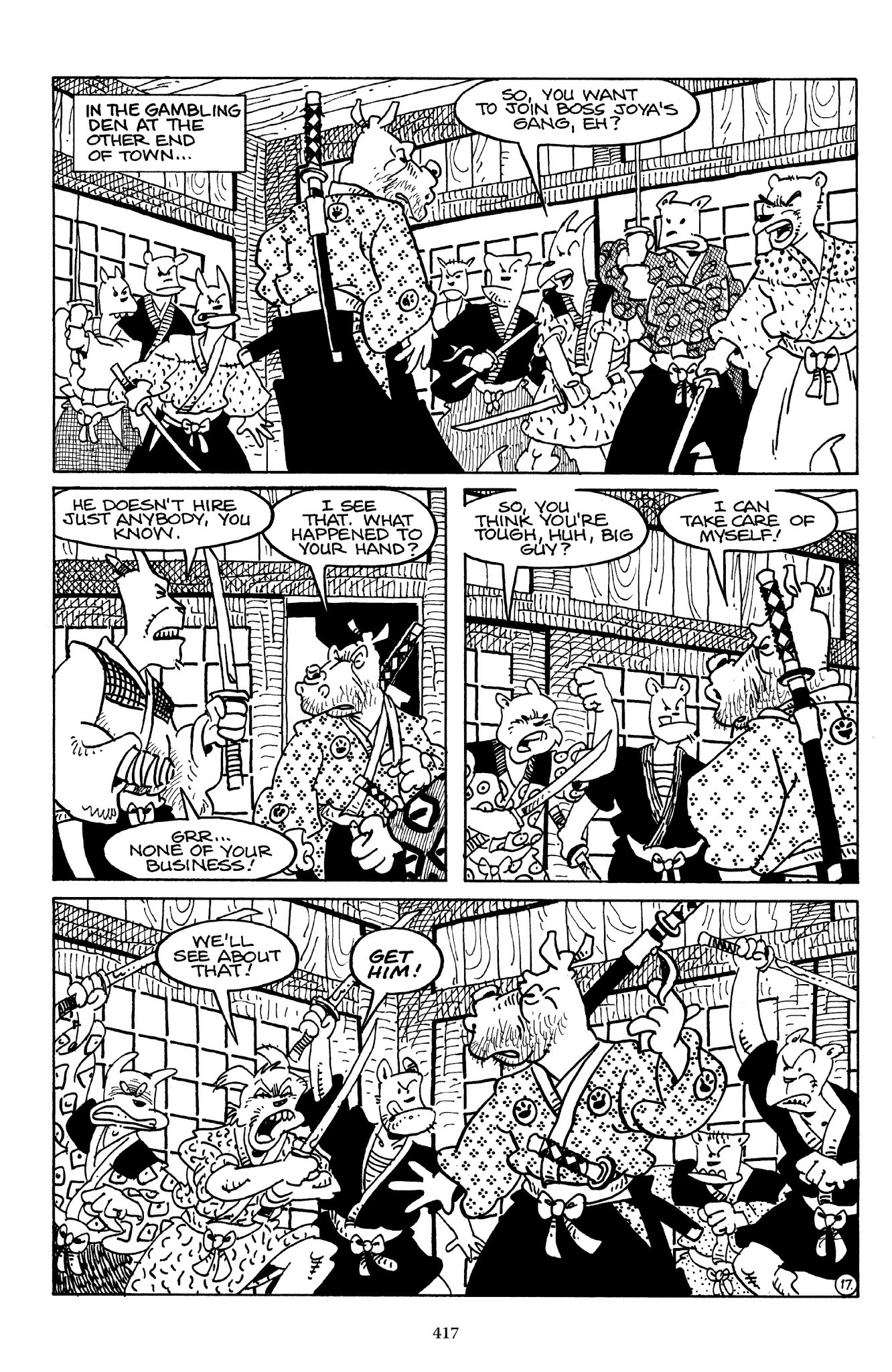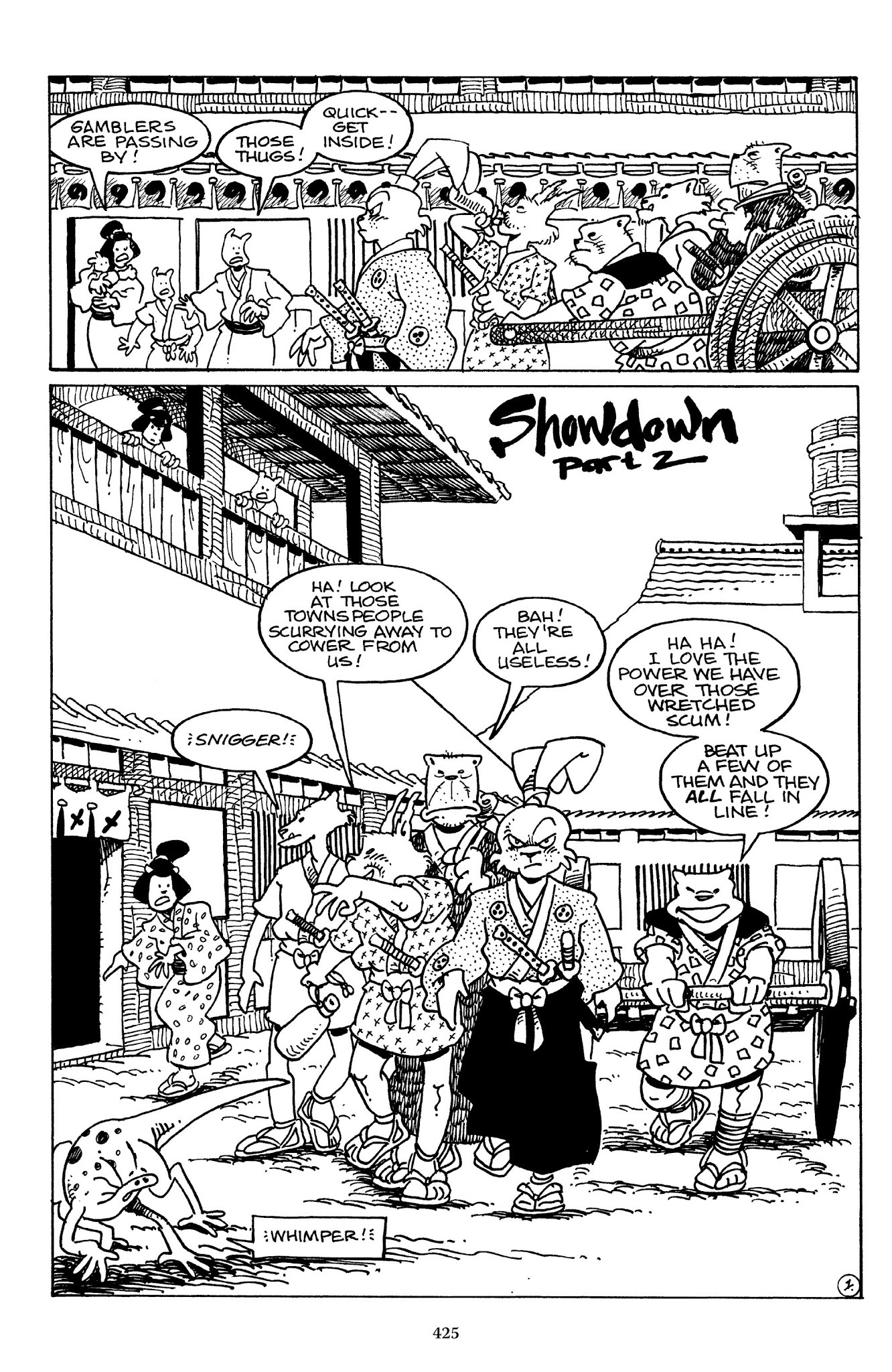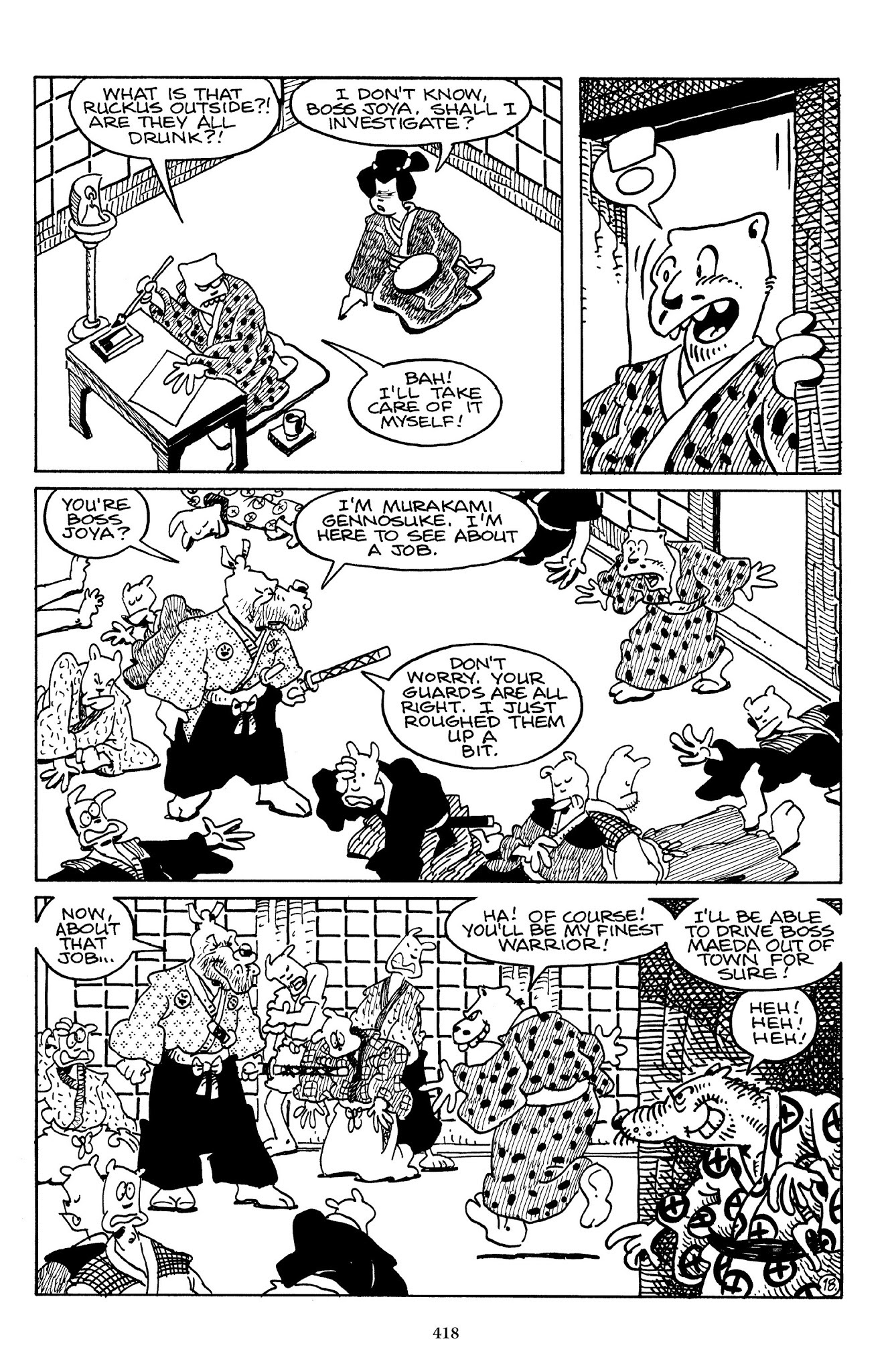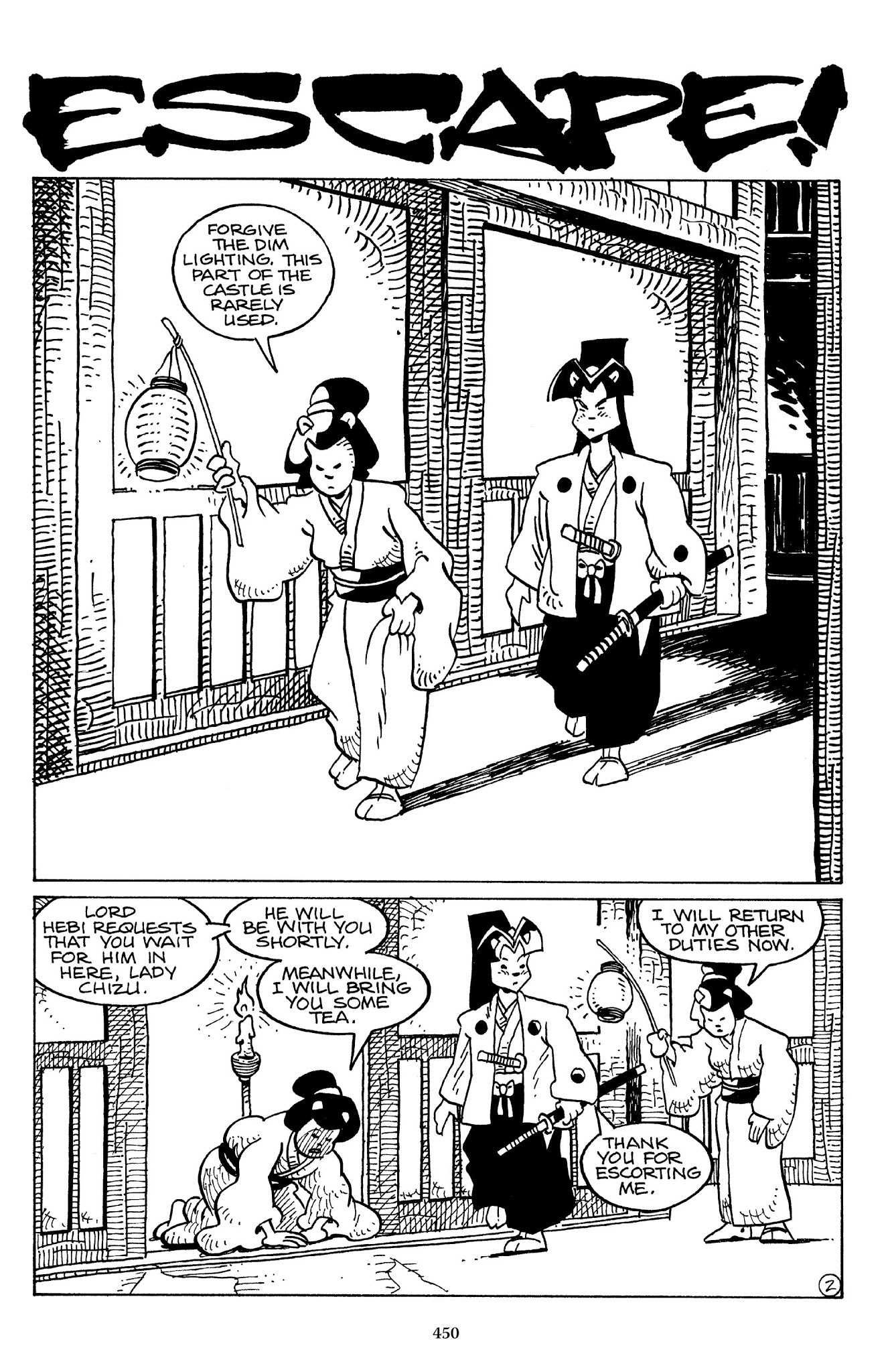 I can't believe how evil Usagi is, encouraging a child to go learn swordfighting with a hermit in the mountain. Does he not get he's endangering him, setting him up to be possibly killed in the future in a fight?