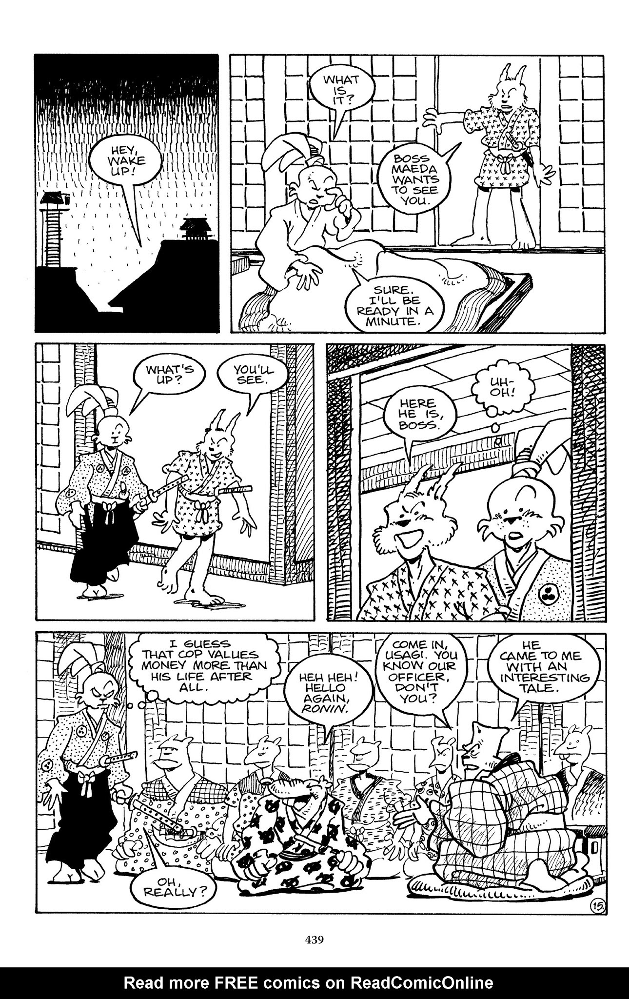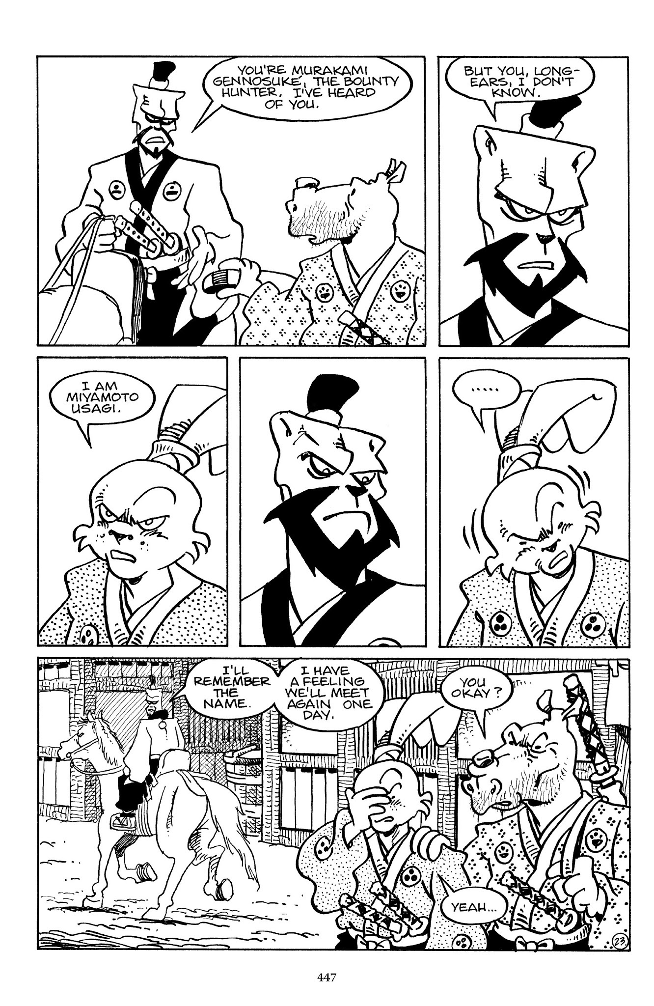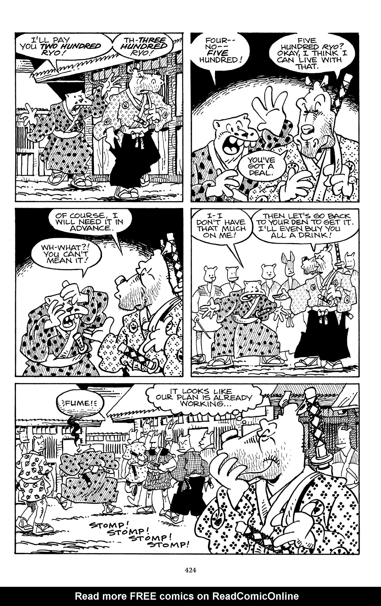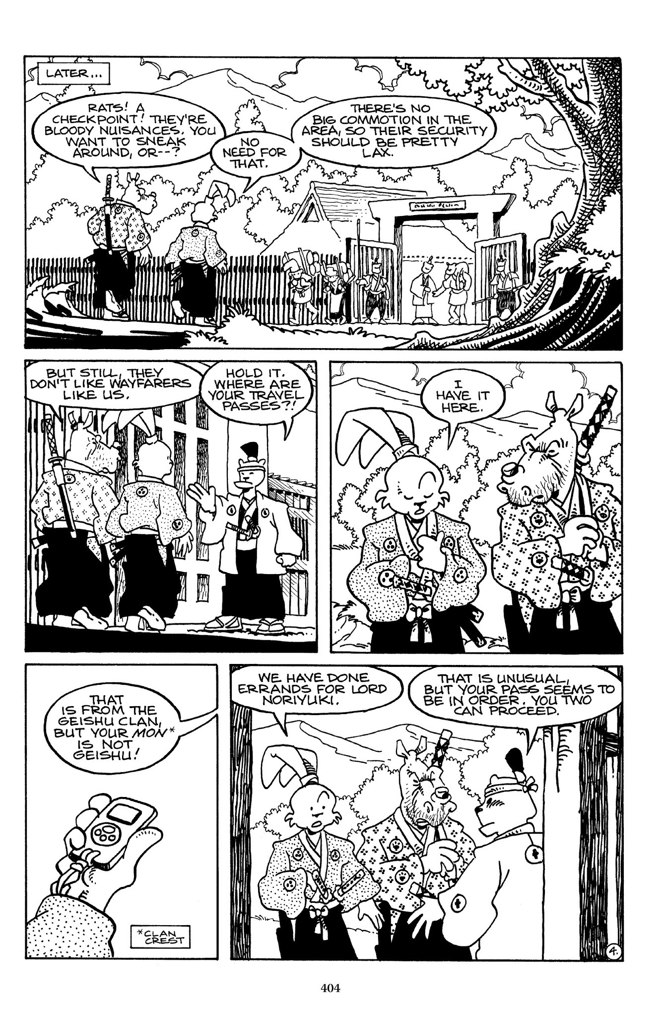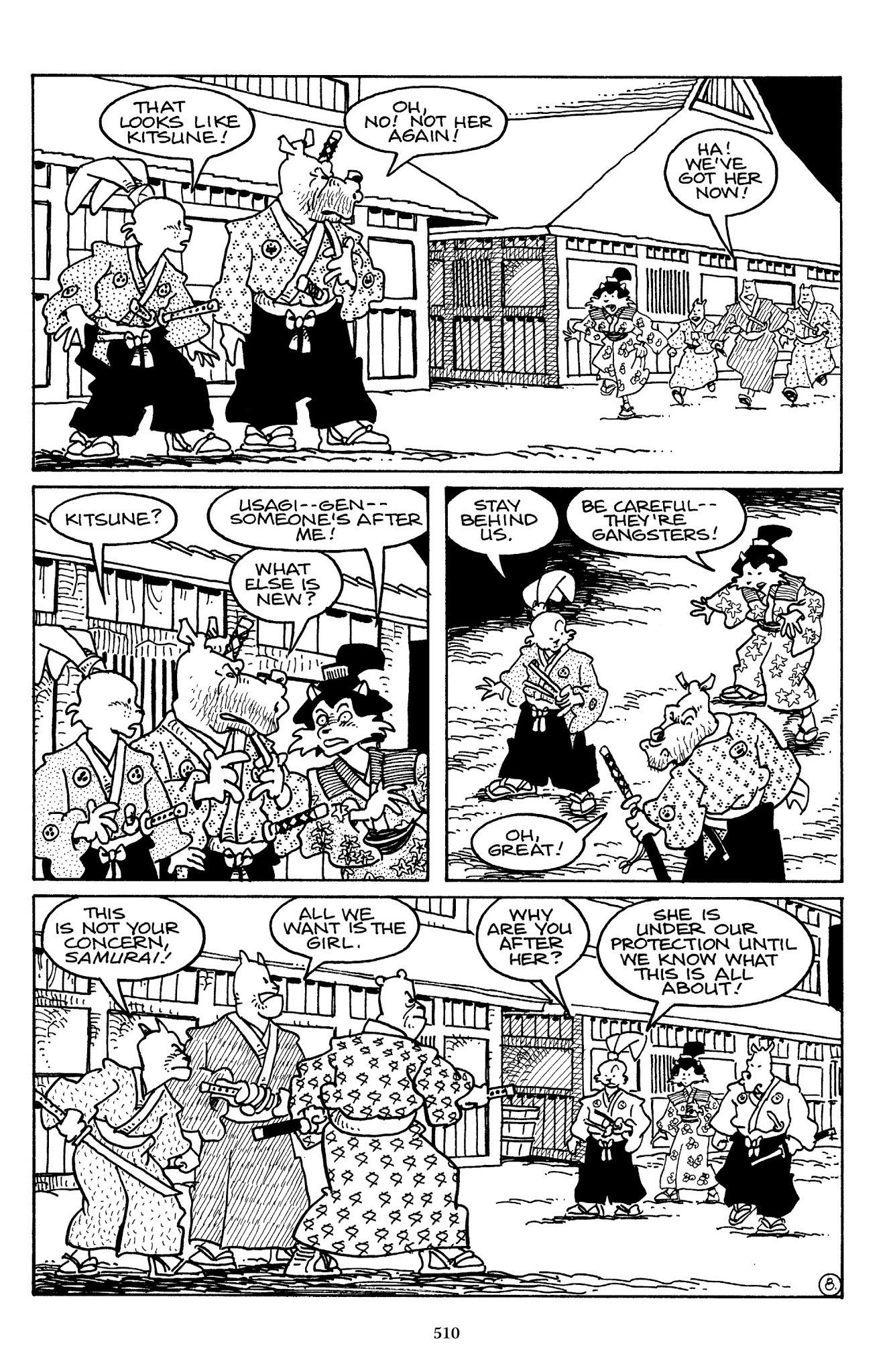 I can't believe how evil Usagi is, encouraging a child to go learn swordfighting with a hermit in the mountain. Does he not get he's endangering him, setting him up to be possibly killed in the future in a fight?