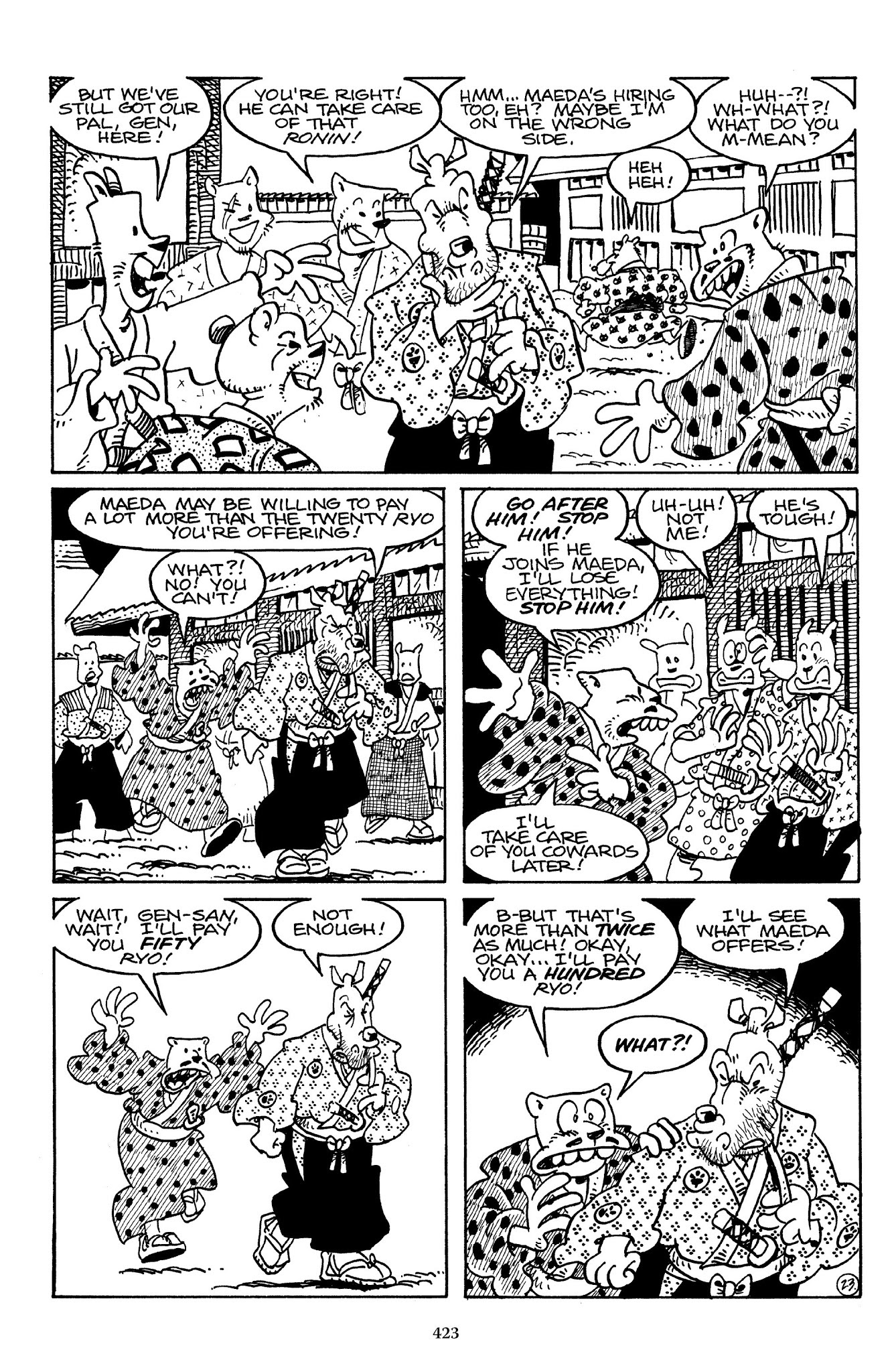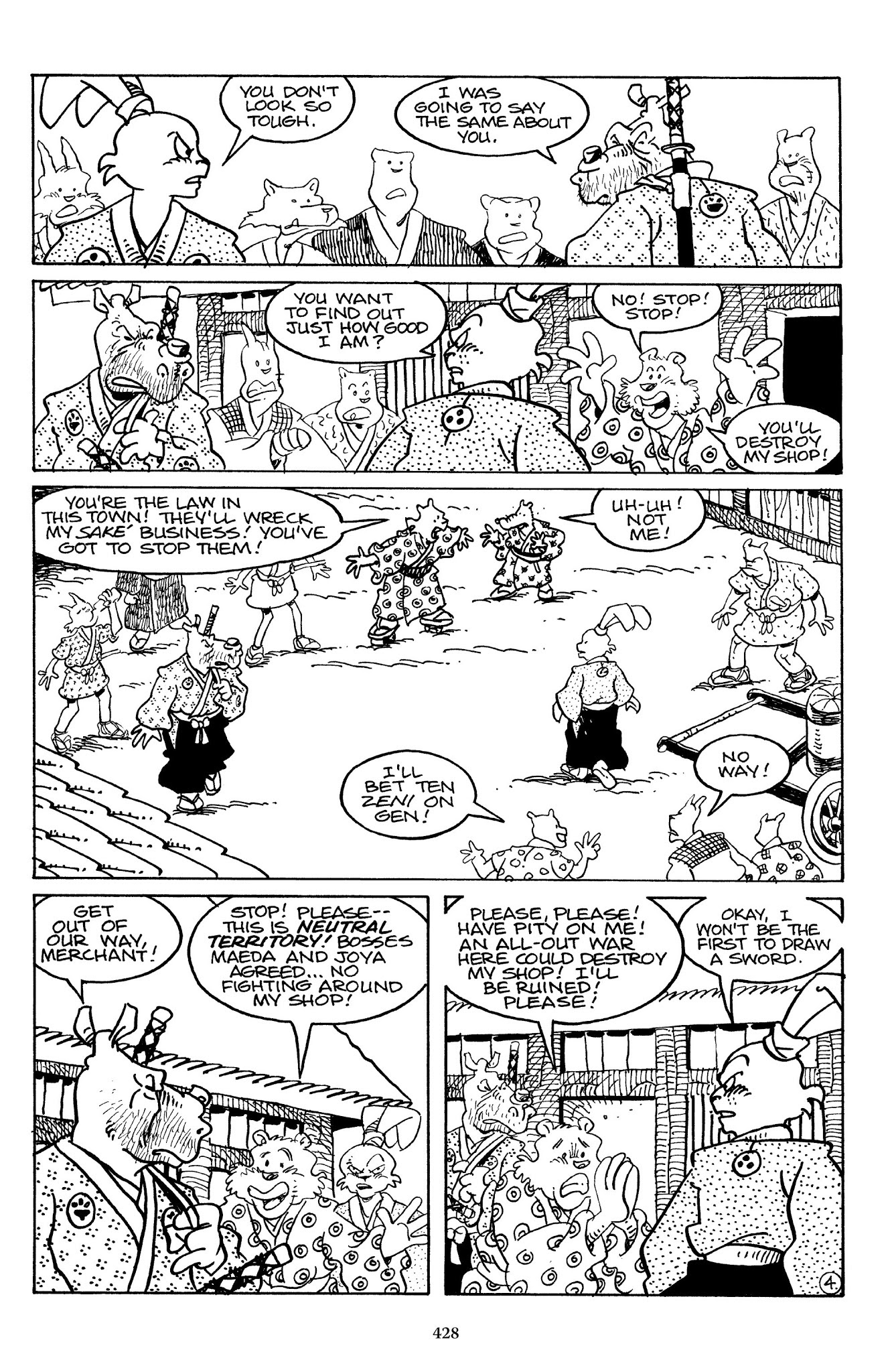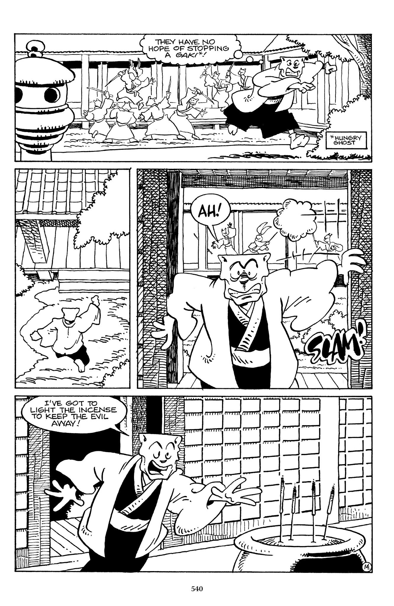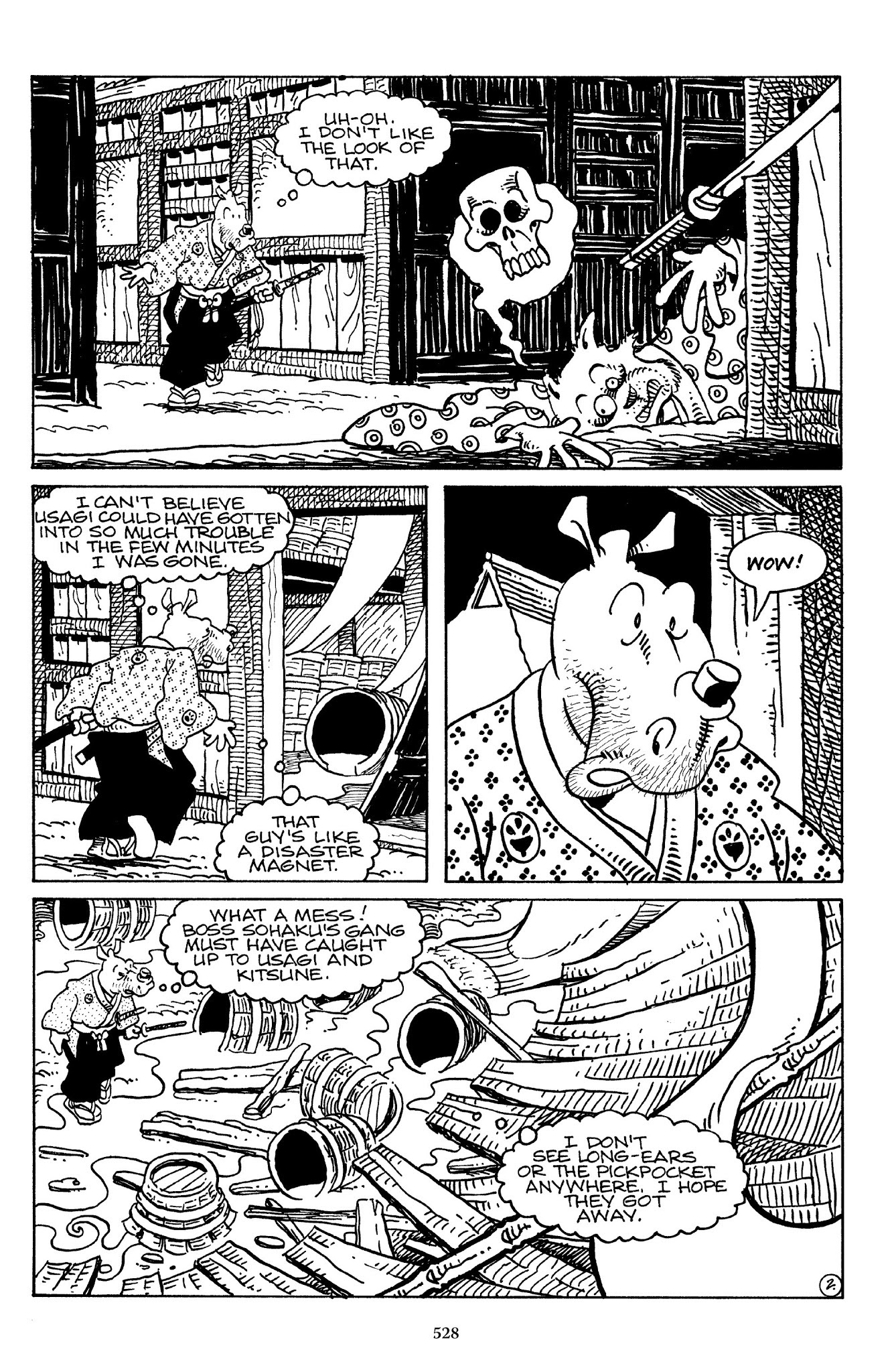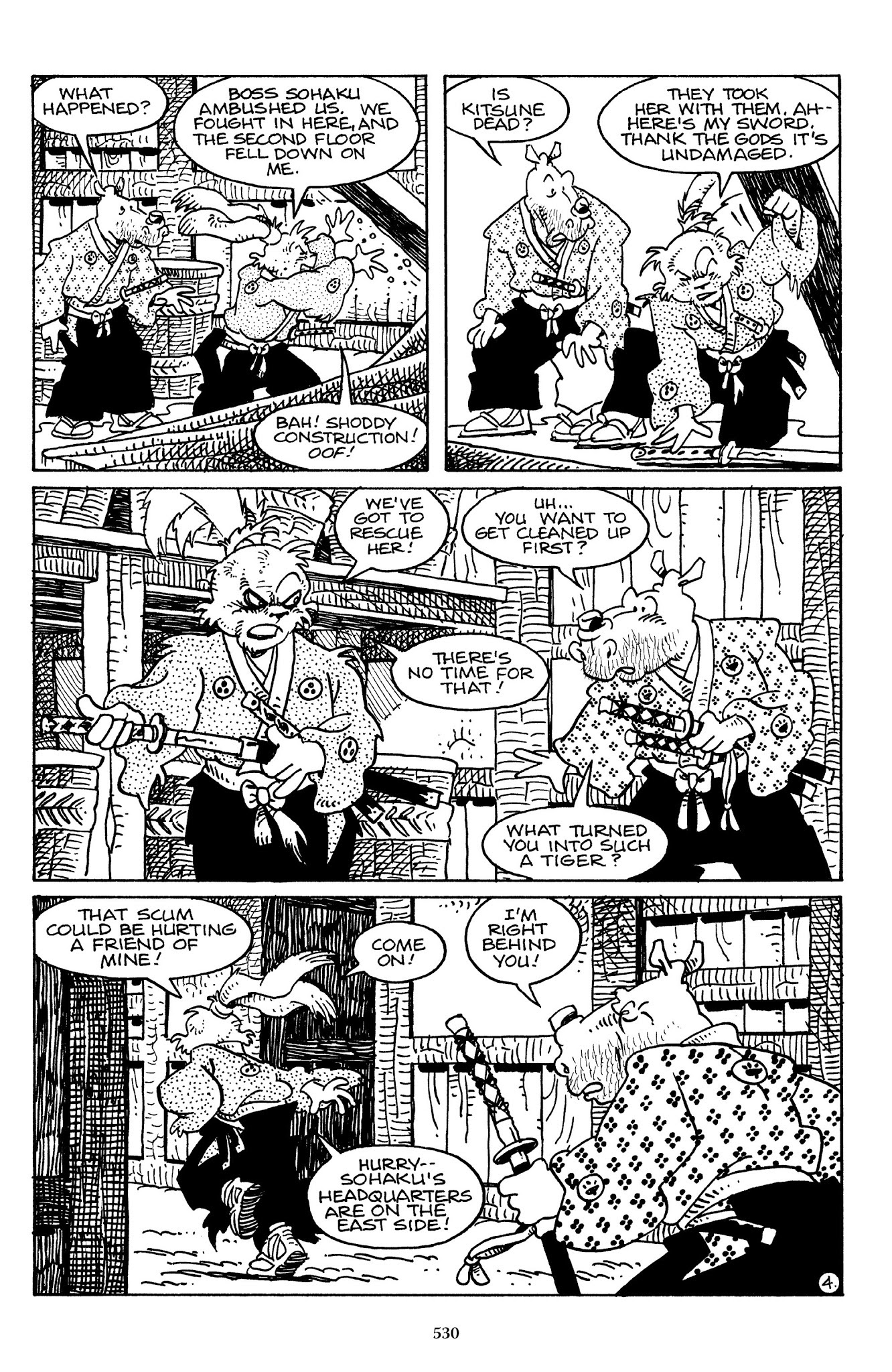 I can't believe how evil Usagi is, encouraging a child to go learn swordfighting with a hermit in the mountain. Does he not get he's endangering him, setting him up to be possibly killed in the future in a fight?