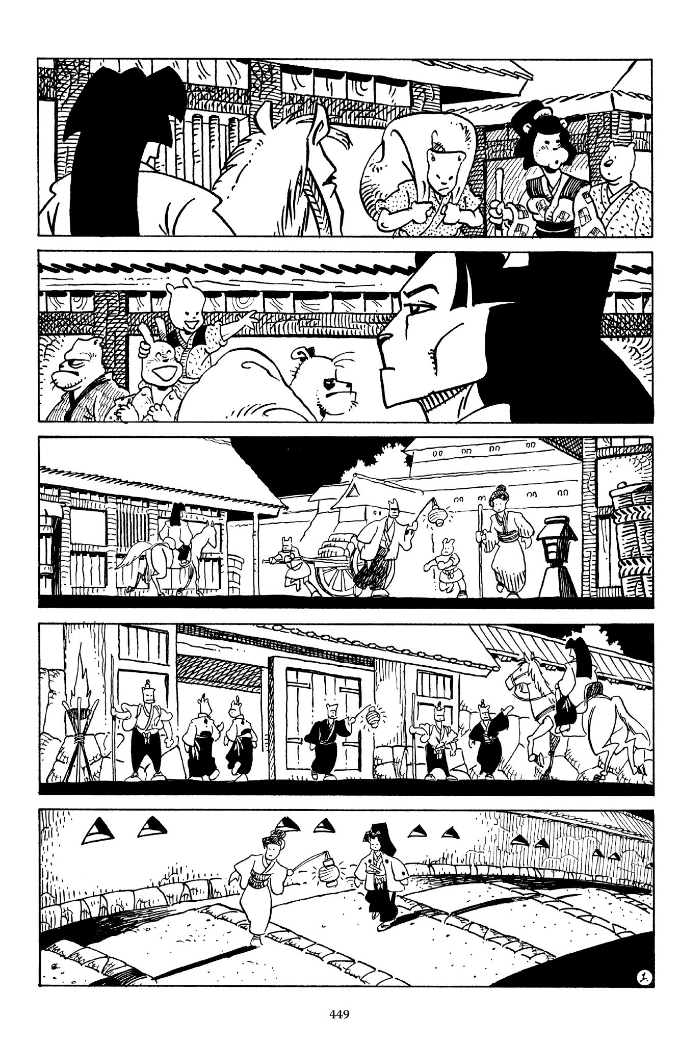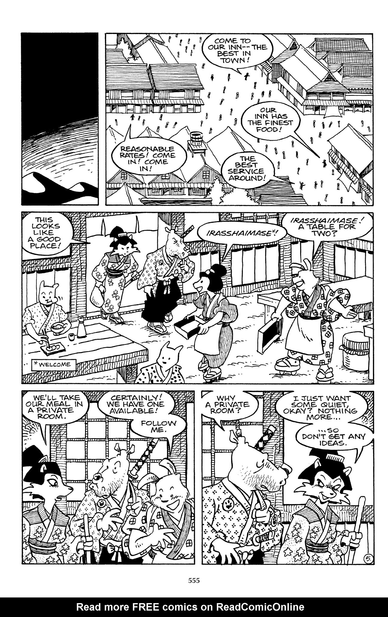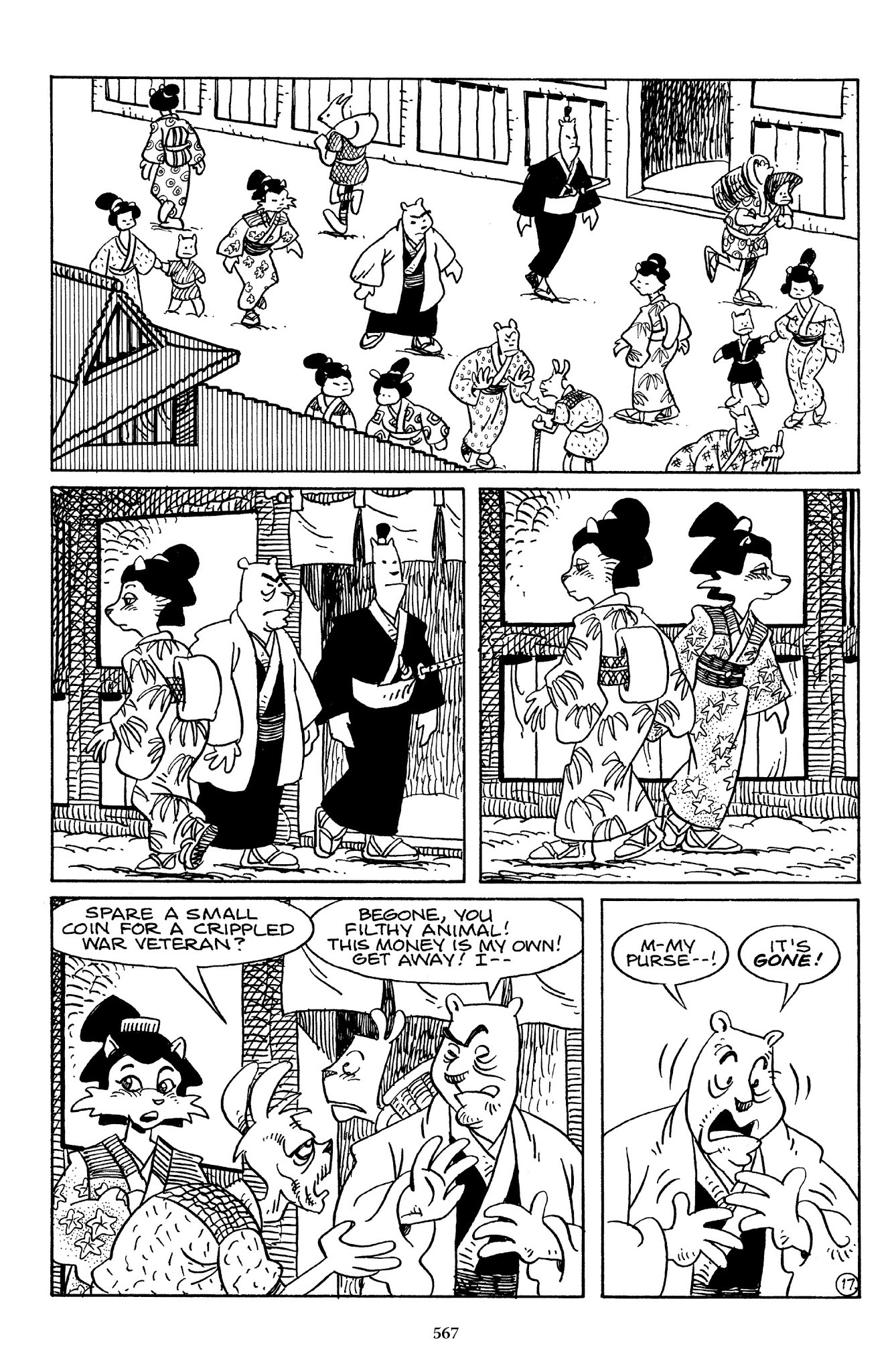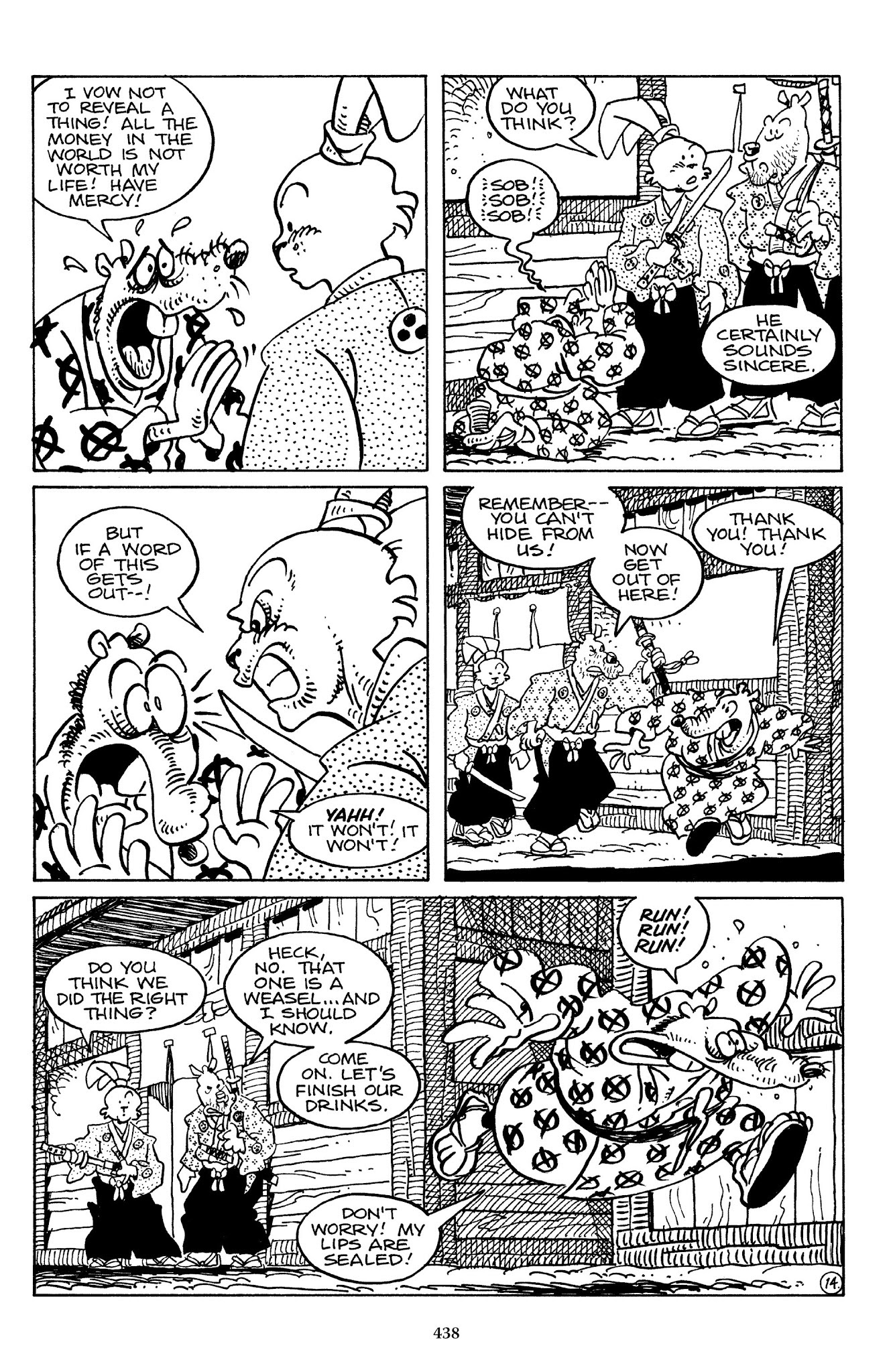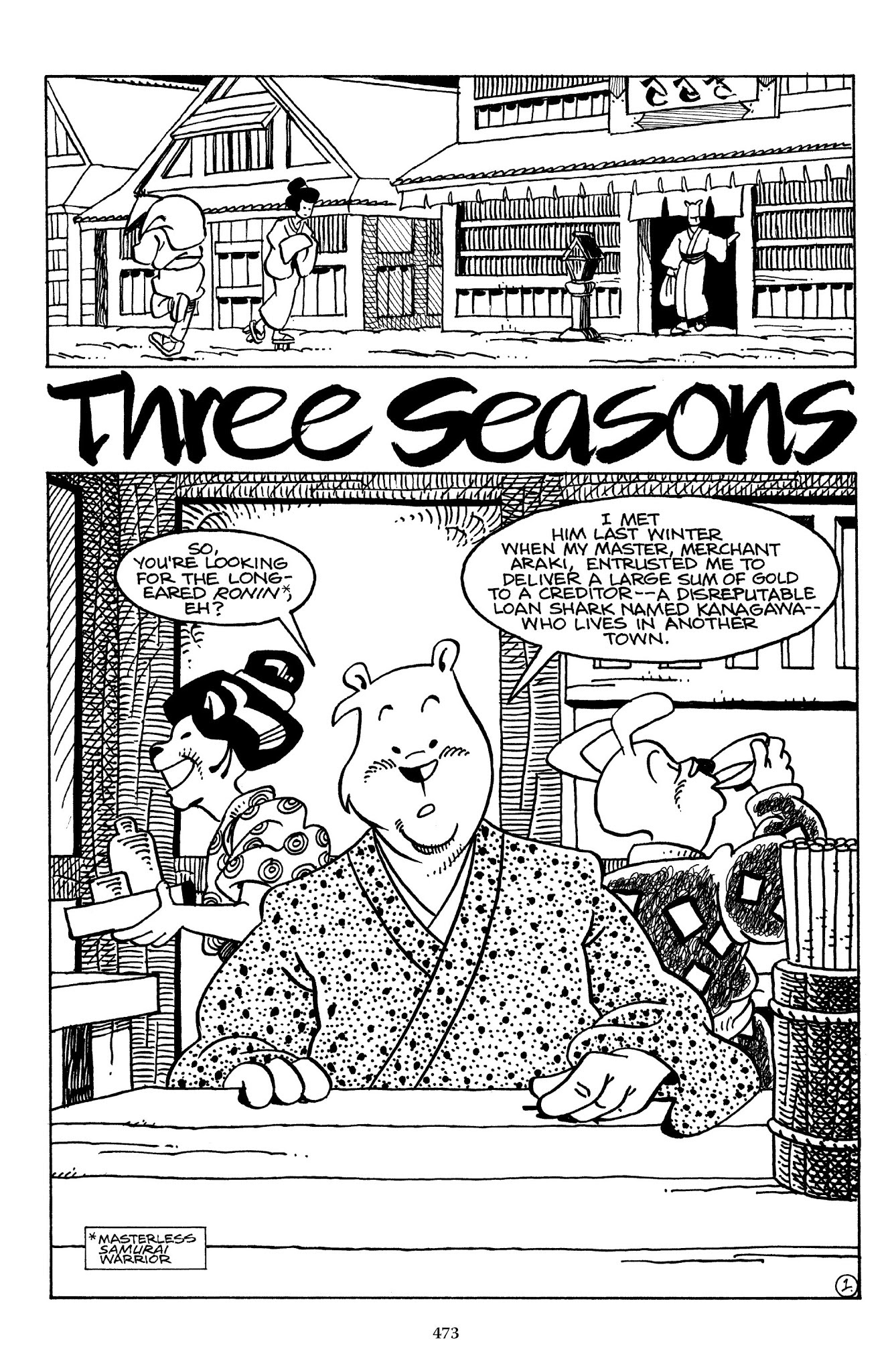 I can't believe how evil Usagi is, encouraging a child to go learn swordfighting with a hermit in the mountain. Does he not get he's endangering him, setting him up to be possibly killed in the future in a fight?
