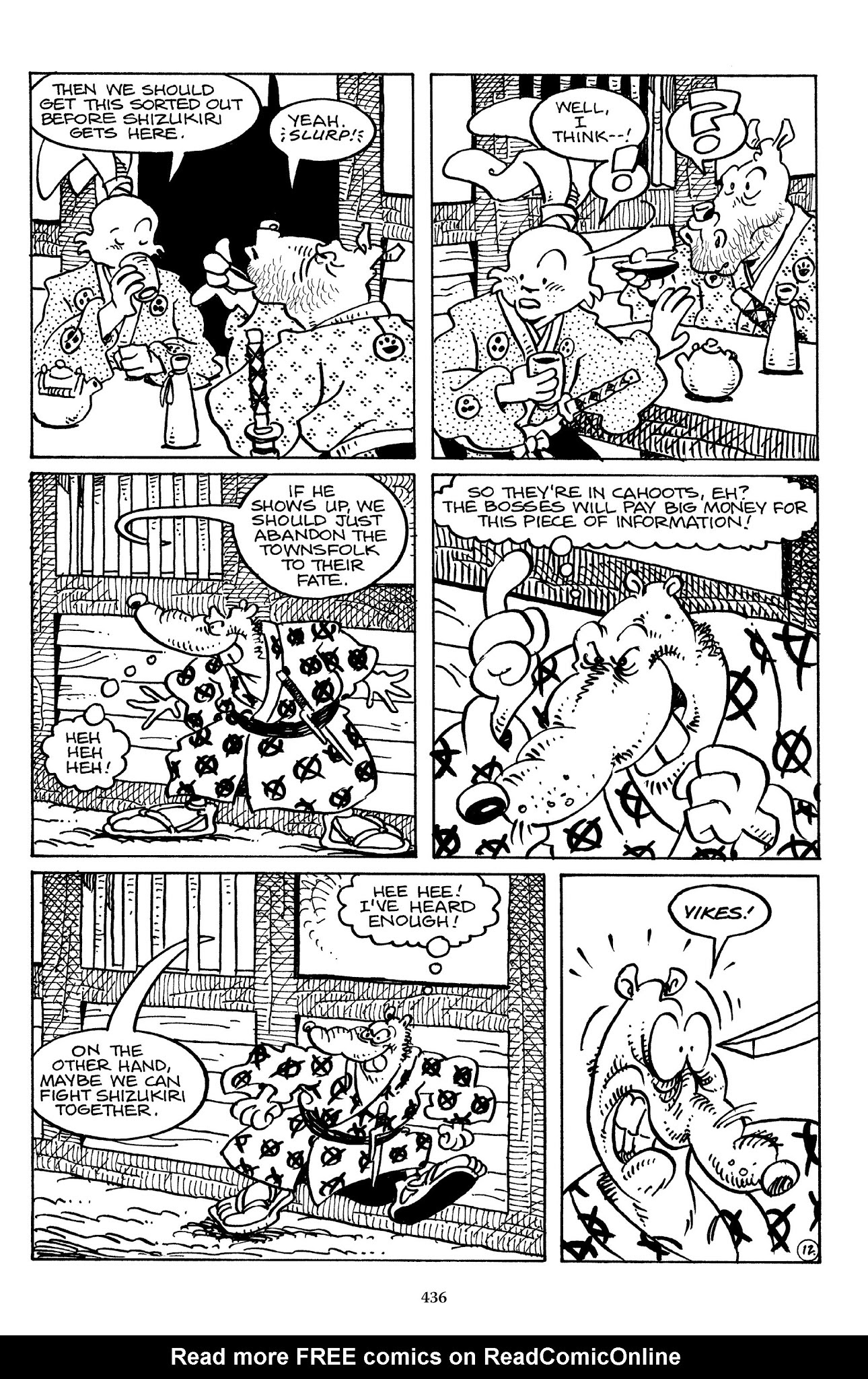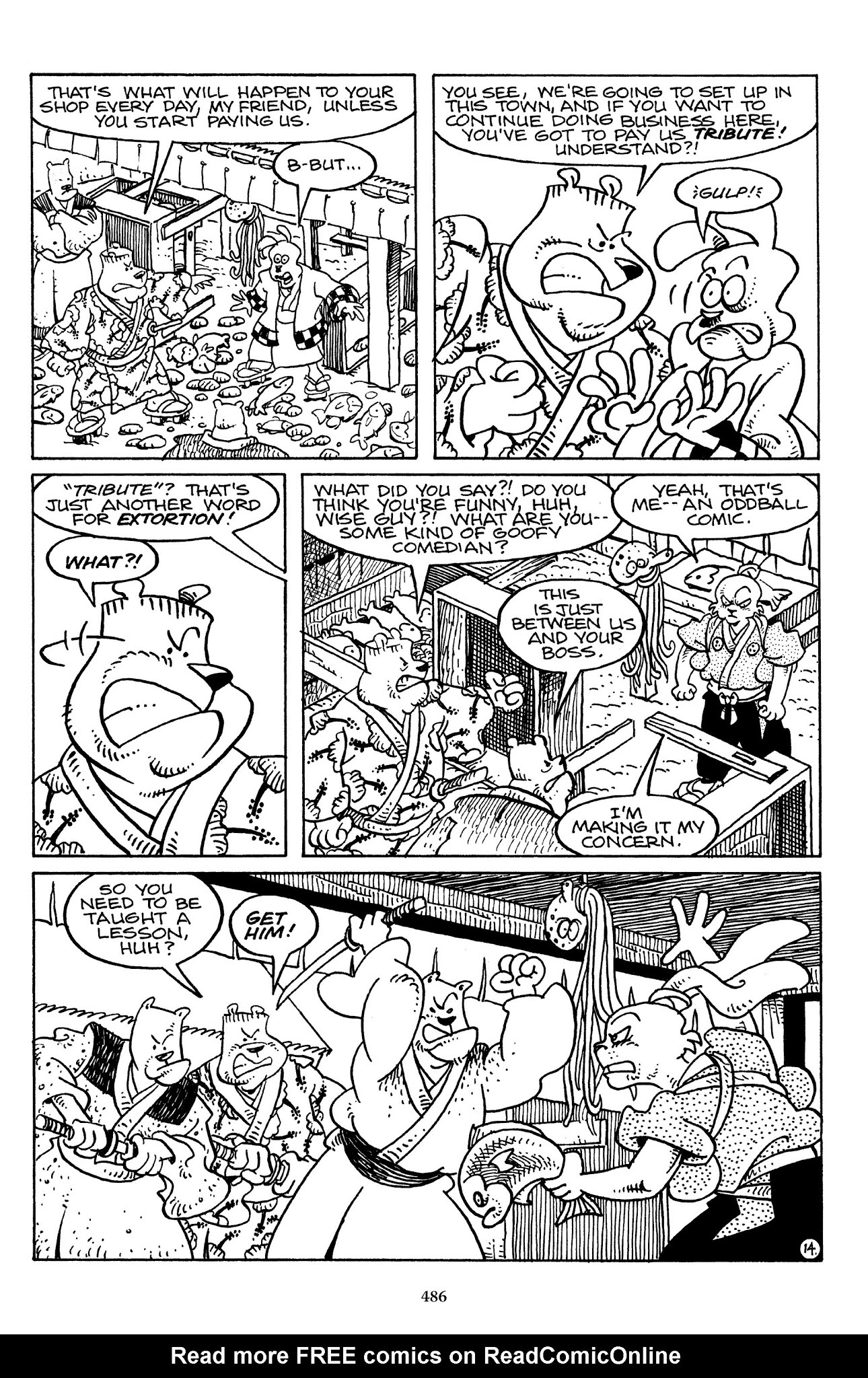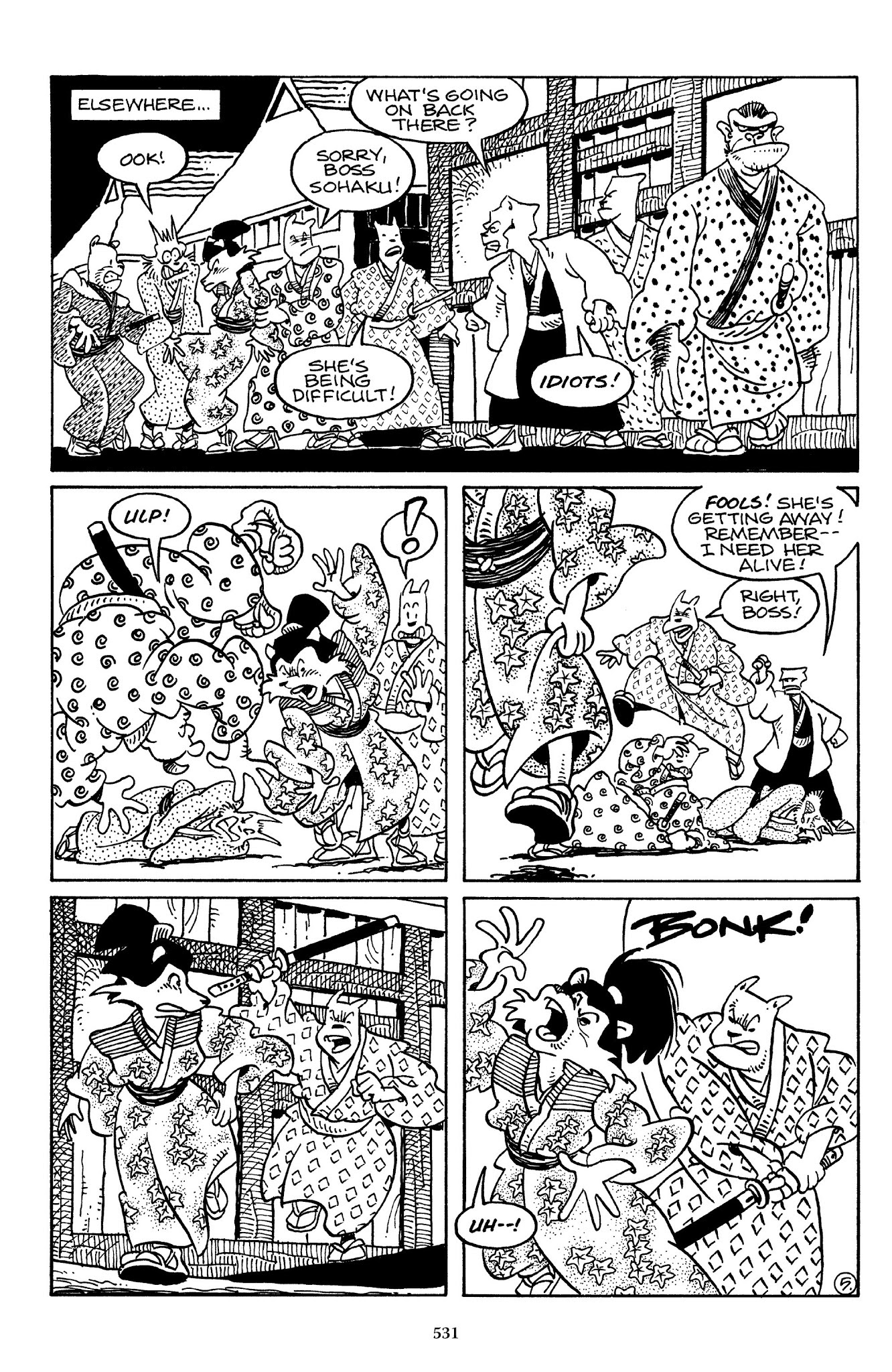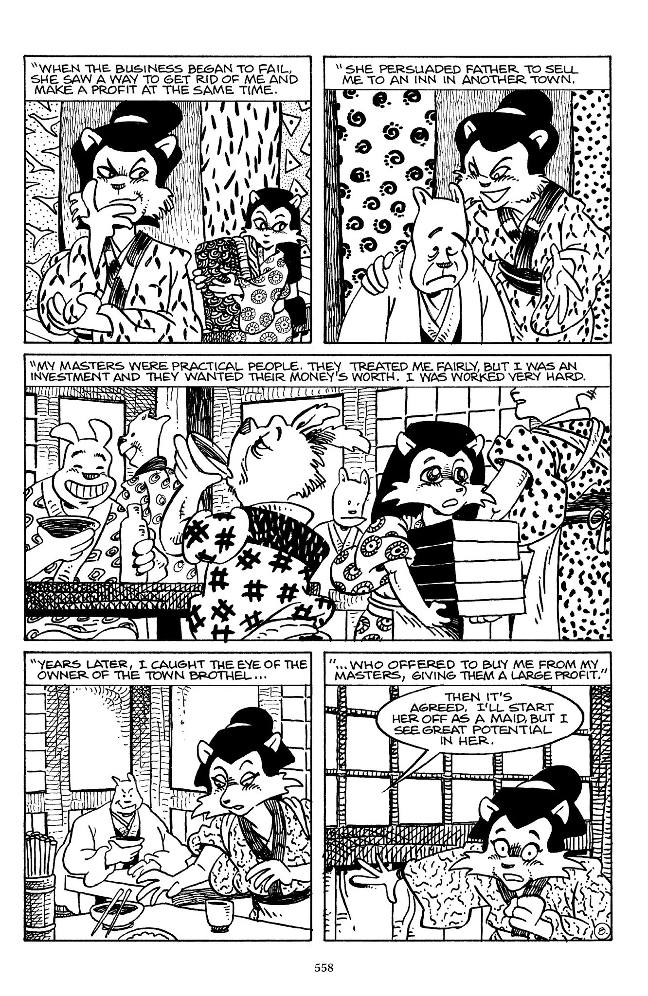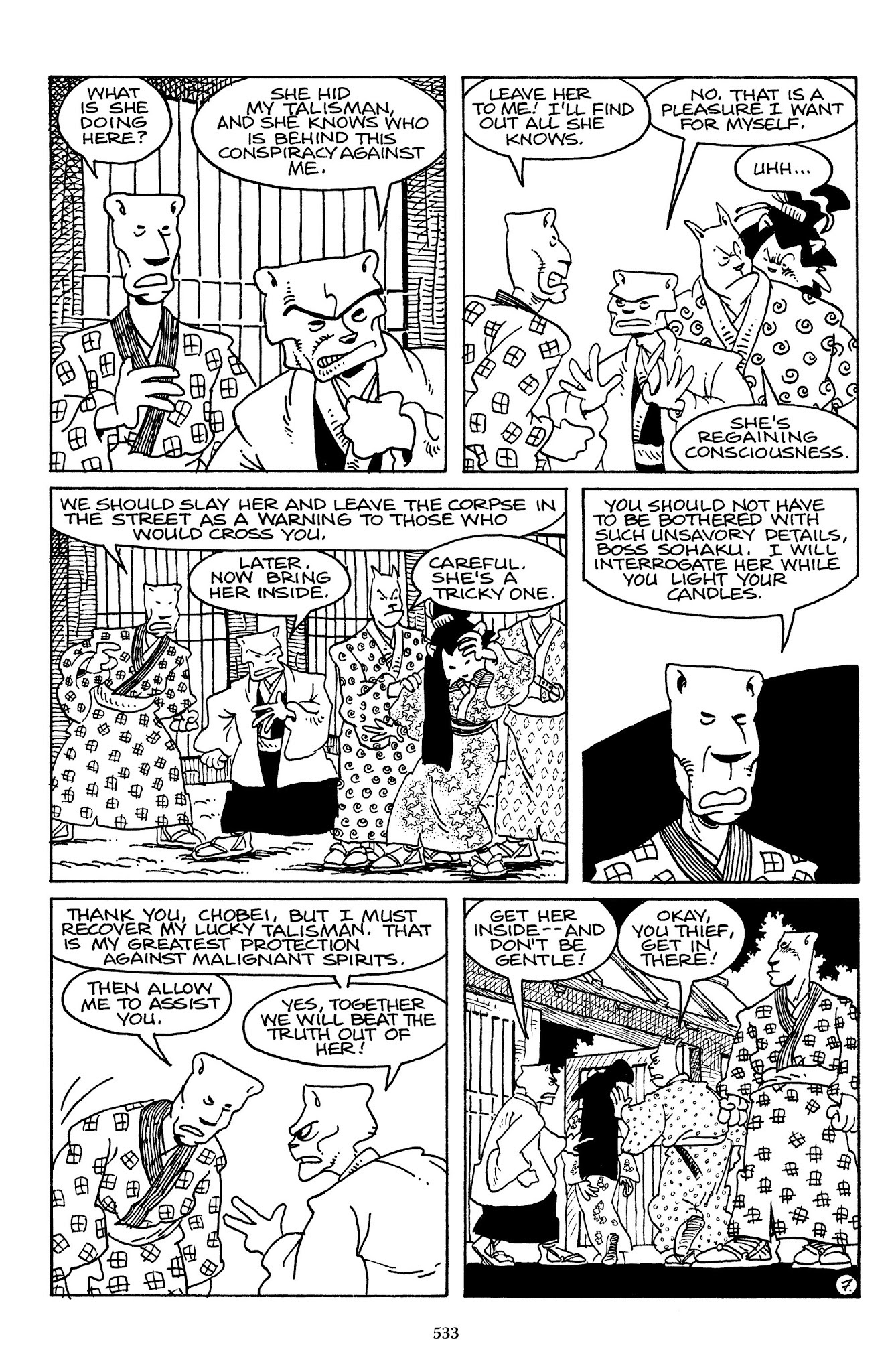 I can't believe how evil Usagi is, encouraging a child to go learn swordfighting with a hermit in the mountain. Does he not get he's endangering him, setting him up to be possibly killed in the future in a fight?
