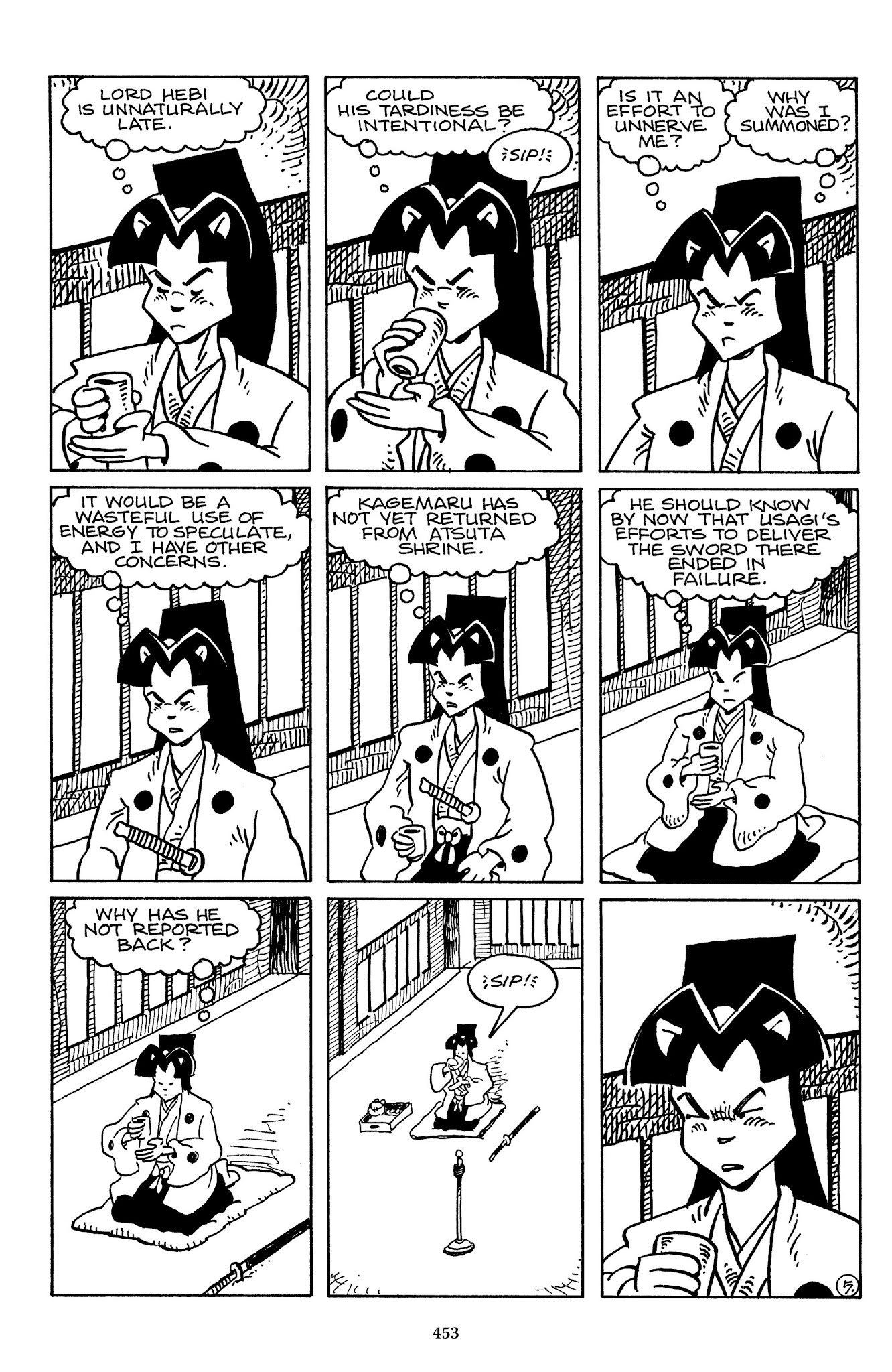>>153033973Is this the first time we get a mention of Usagi not drinking alcohol? I recall it starts to becoming a more common trait as the comic goes