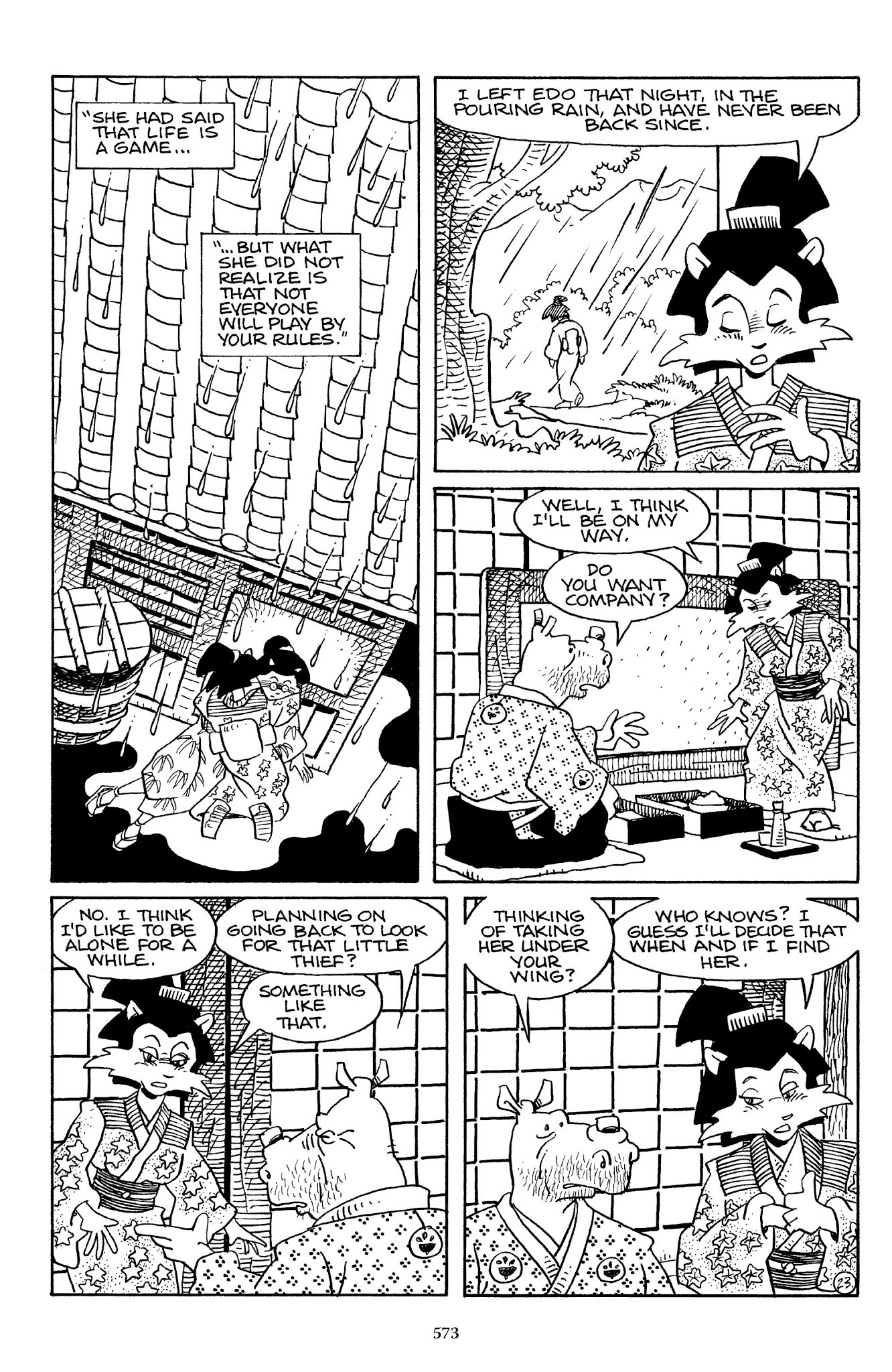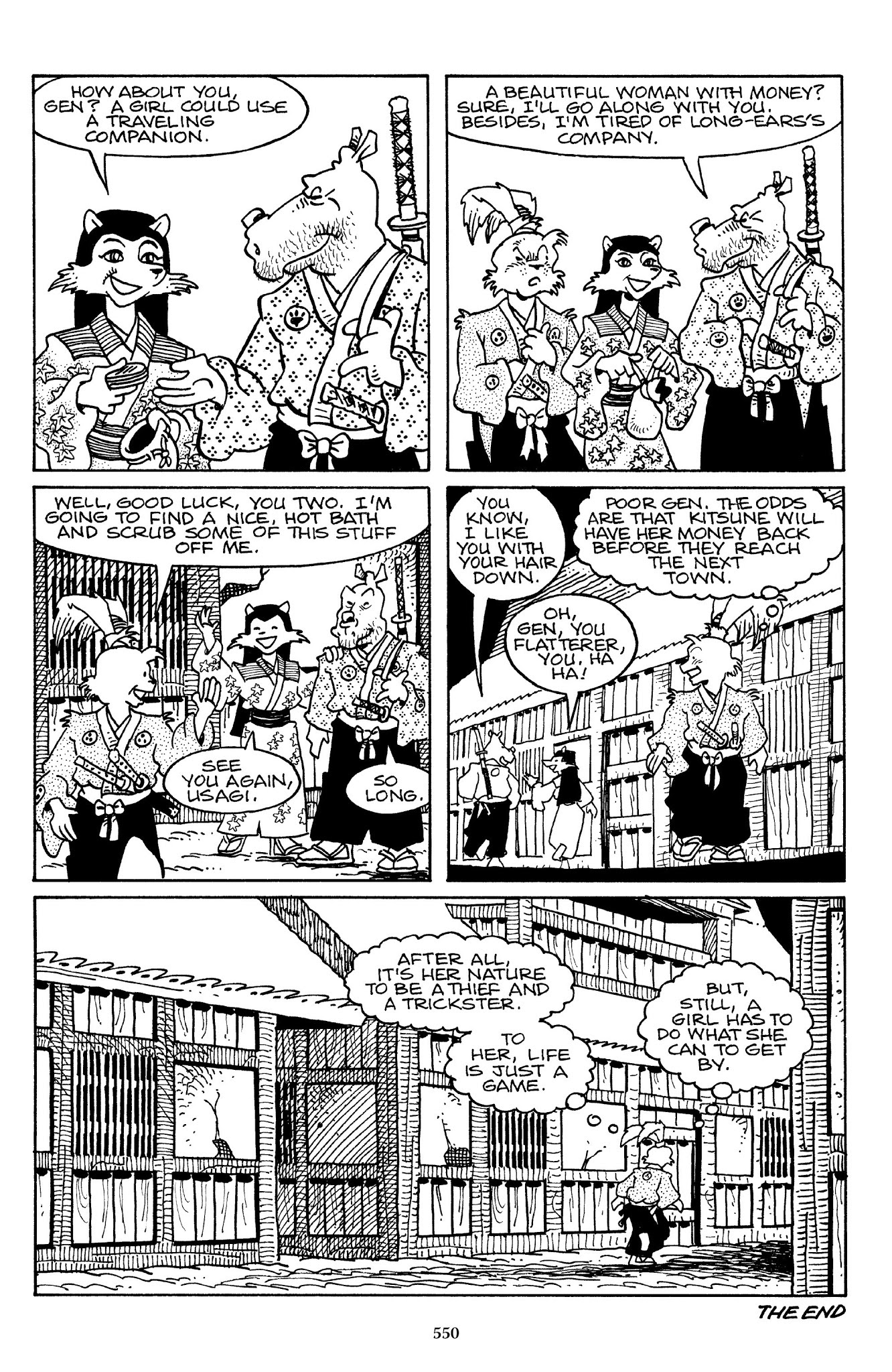 >>153034364I do wonder if stan will ever wrap that up if he ever decides to end the comic. I mean, we already know how he would end it usagi saving a random village and walking into the sunset but would he try to tie up the other character's loose ends?