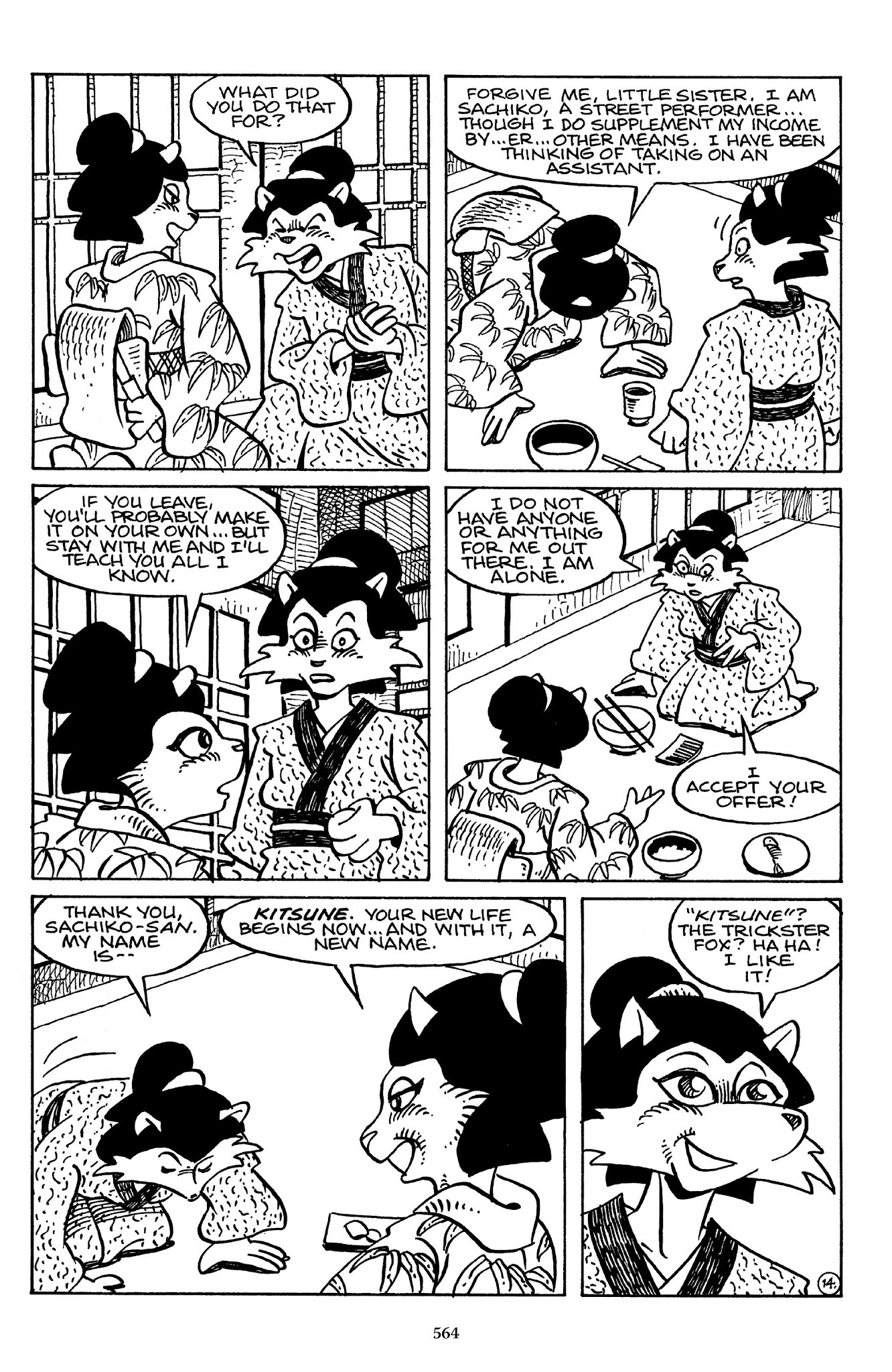 >>153040085>Noodles dies>Kitsune doesn't change her ways>decides to go from involving someone with the mentality of a child to a literal child in her crimes>continues to involve Usagi in her bullshit selfishness>suffers no consequences while saying her catchphraseThat kinda shit. She's not the worst girl - that's Mariko, as you'll soon see - but she draws a lot of ire because of Stan handwaving her behavior. Especially compared to, say, Gen or Stray Dog, who have sensitive sides beyond their surly behavior; it's hard to find a silver lining with Kitsune's development or lack thereof.Early on though she isn't that bad, I think its after this that she really takes a turn for the worse.