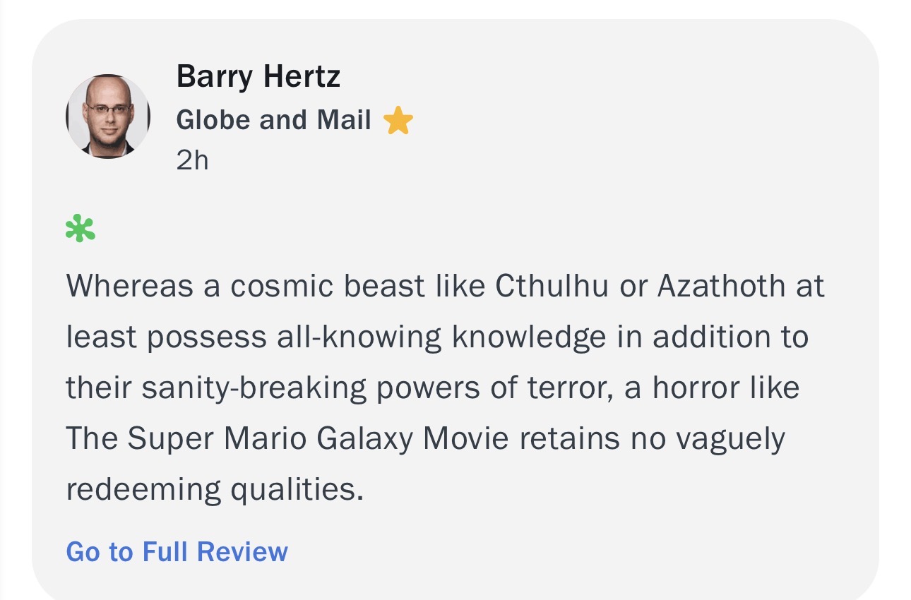 didn't the first movie have poor critic reviews since it's just full of references from the games for fans?I don't think the audience for this cares what critics think at all, it literally isn't made to please critics. It's for Nintendo fans.