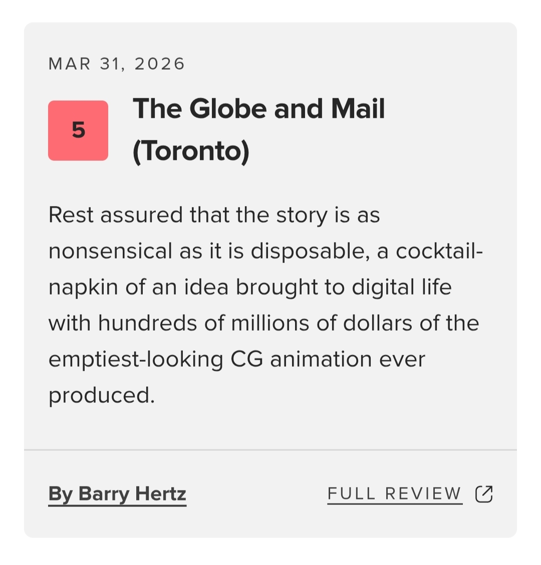 >>153036352Why did this fair review like the first movie??? WHY?