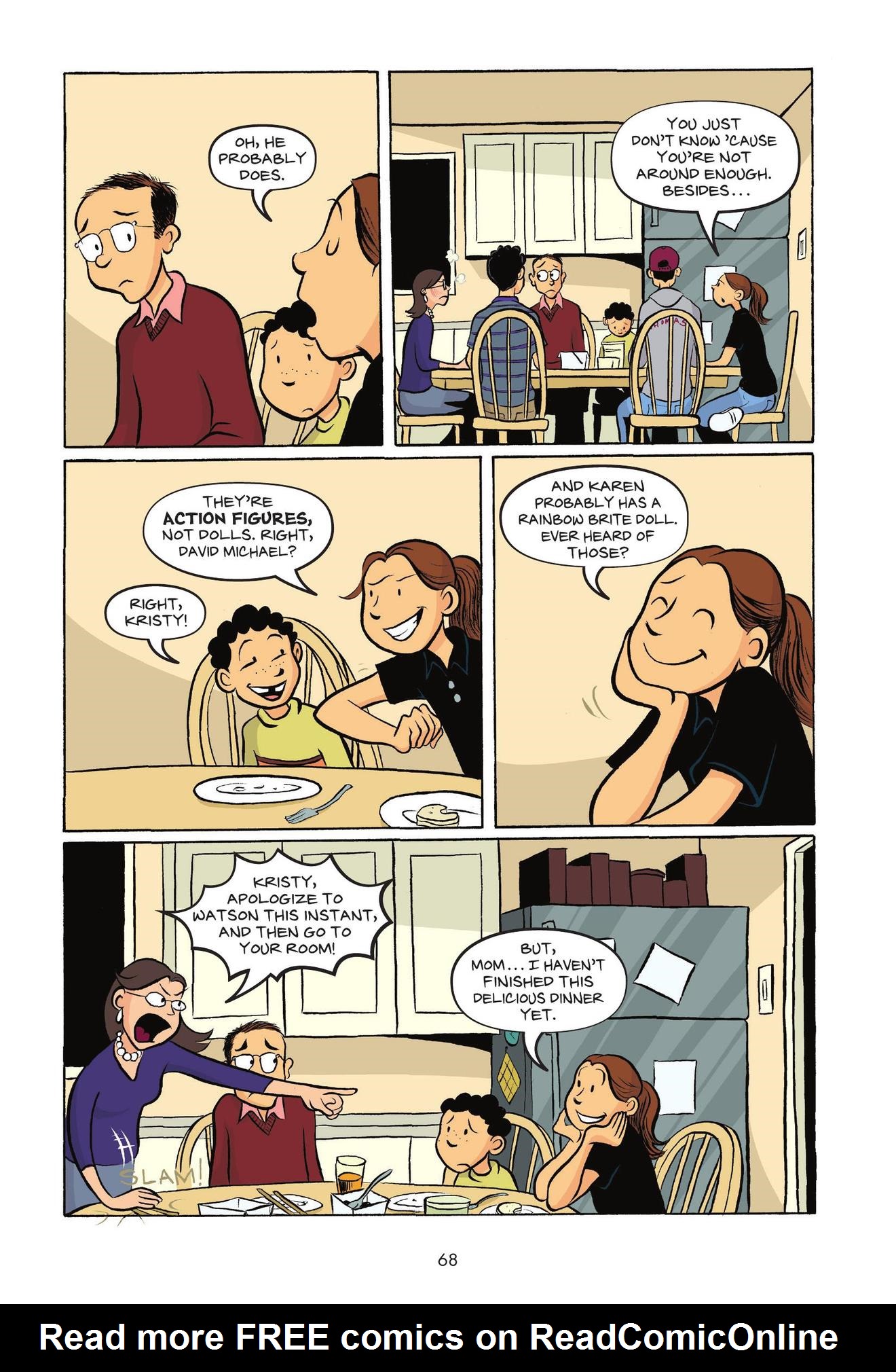 Tomorrow, April 1st, marks 20 years since The Baby-Sitters Club (1986-2000) went from youth novels to graphic novels (2006-onward), which have arguably been more popular than the originals.To celebrate (doing it today cuz I know this site celebrates April Fools), I'm doing a storytime of that original comic. The first four were done by none other than one of the great modern cartoonists, Raina Telgemeier, best known for Smile and Drama. Not to mention September, we're finally getting a FIFTH Raina BSC comic!I'm excited to share this with you!