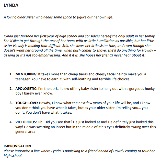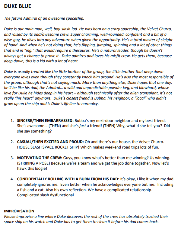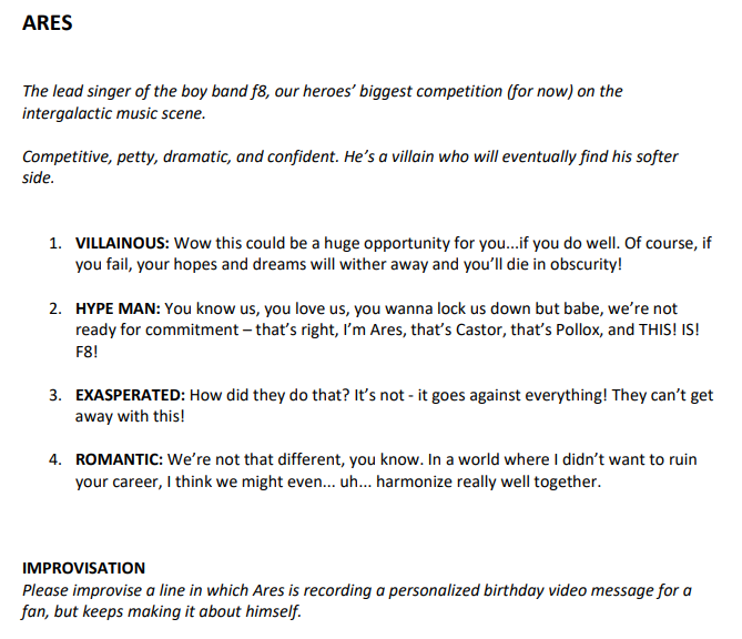anyway, I'm gonna post the audition pages because I assume they're for a new show