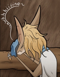 >kass as a human man is completely disposable and worthless>conscripted, on the run for most of his life>we never see or hear of his family>probably all dead or he can never go home>lost everything because born with a dick at the wrong place at the wrong time>struggles to gain recognition as guardsman>really wants that officers badge but stuck in his career running caravans>gets some rat-princess juice in his eyes>instantly valuable>promoted to officer and diplomat just like that>yinglets worship their females>females are more or less born into royalty>while males live on the fringe of society as scavengers and criminals>only the top 1% males are kept by the matriarchs as breeding stock>males don't even get to have the fancy hair on their tail like most sexually dimorphic species where the males have to perform to be chosen>they all turn prison gay out of deprivation>poor lopin just trying to sell his swamp filth (I noticed there's a fresh clam in his sack, very valuable to yinglets no? he's so destitute he has to sell it rather than eat it.)>through no fault of his own gets dragged in some shitty conspiracy run by the yinglet royals>almost gets executed for no reason>lives and dies by the whims of vizlet and kass (females)>bottoms, dresses up and paints his eyes because performing femininity is the only way he can feel like he mattersthis shit is the most violently misandrist bullshit I have ever read in my entire life.Ever.it genuinly broke my heart, I have not been able to sleep or eat for a week straight thinking about how fucked up it is.and it dresses it all up in the veneer of progessive dialogue, ambigiously ethnic multi-racial melting pot, ivenmoth welfare state, pronounshere, I drew a picture of best boy to try and soothe my heart. this guy is the ultimate victim of a fucked up system that hates him for being born wrong. I hope kass lightens up on him and treats him more like a friend soon. he deserves it.