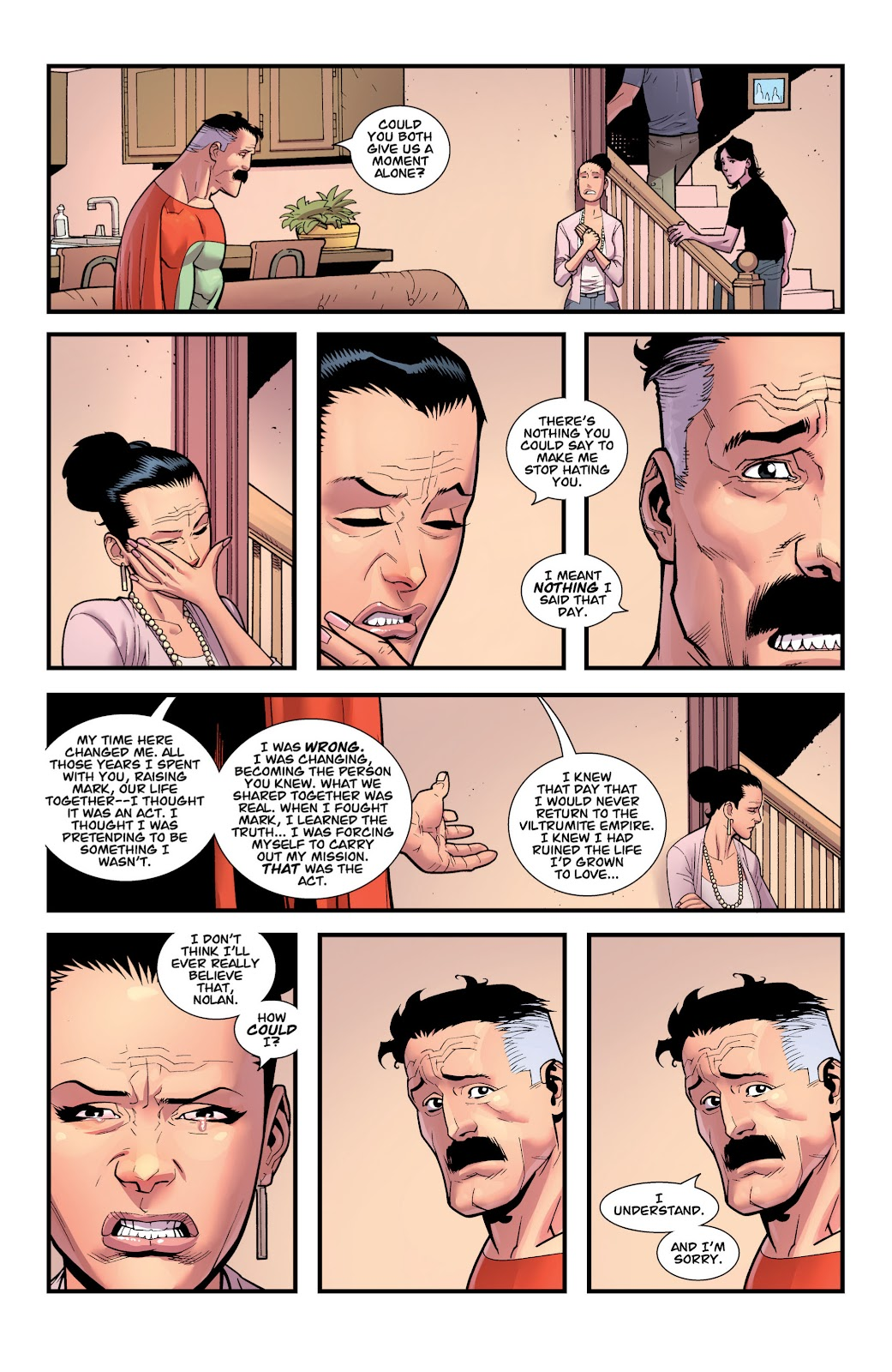 The one thing I'm not certain is gonna happen in the show is Nolan dying, the thing with Debbie and Art seemed less like "never show yourself before me again" and more "You'll get this pussy", "You'll get this costume" when you fully redeem yourself.Right now Nolan still can't process his emotions correctly and is bad at communicating his true feelings, once he gets better at that and shows he's truly no longer the man he once was he'll get that prize pussy, prize costume and the omni-man name back in full through I'm only saying that because of Vegeta and his popularity