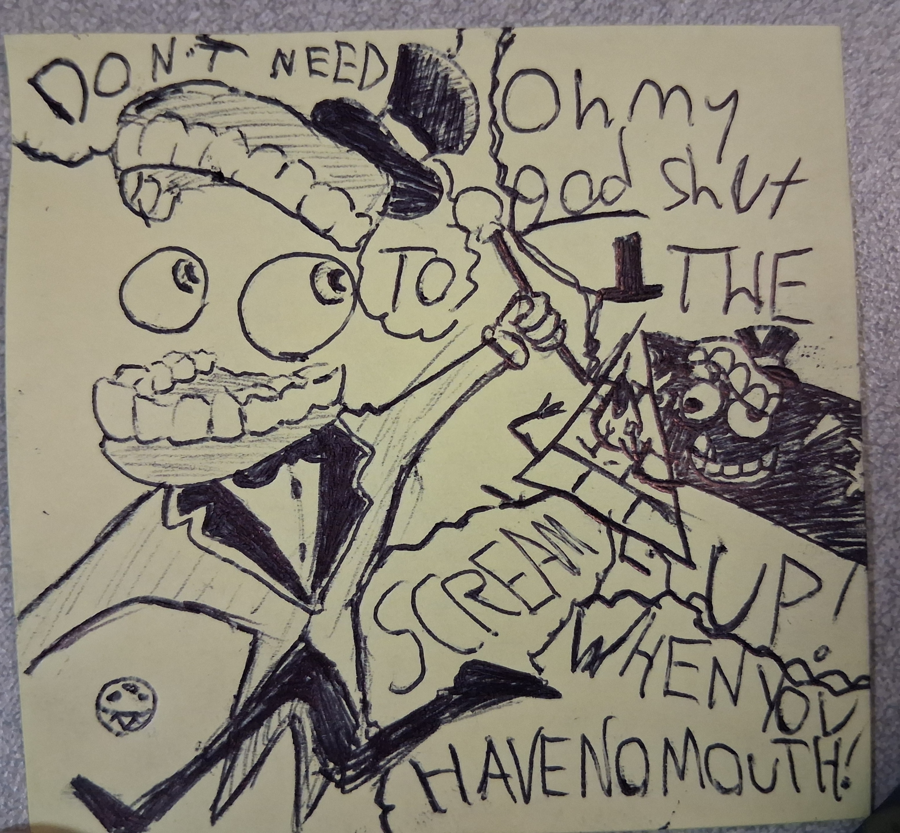 Drew this at work the other day on a break. I love making cringeslop.R I P CAINE