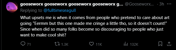 >>153063244>>153063251>sees that it's a reply>ignores that fact and pretends Goose posted this during one of their totally-not-a-joke online Crashouts™