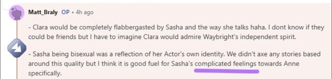 >>153066976>People are happily saying Sashanne is canon.Sorry but I would be very disappointed if my favorite ship gets confirmed in an reddit Q/A.
