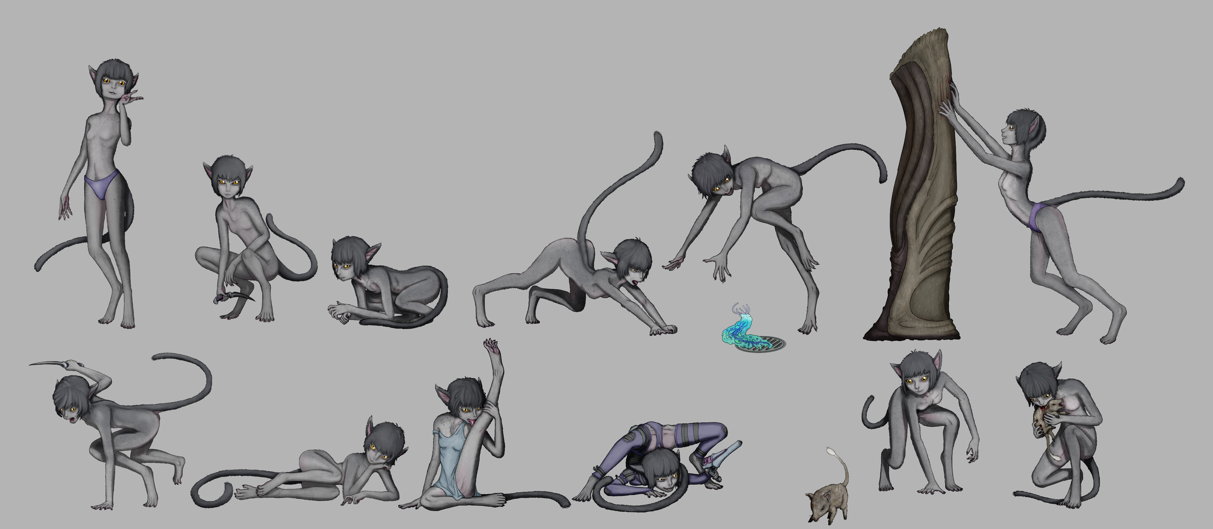 Been practicing drawing my oc donut steel catgirl character in different poses. Trying to emulate the feline behavior and vibes with some of these.
