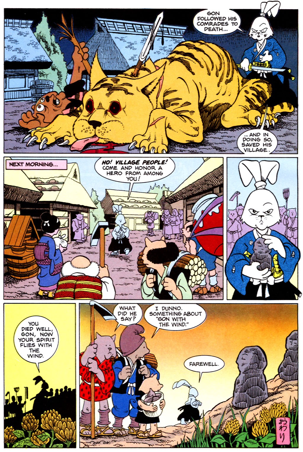 Next up, Usagi's last issue published at Fantagraphics. I won't be posting the whole thing, just one story in particular.