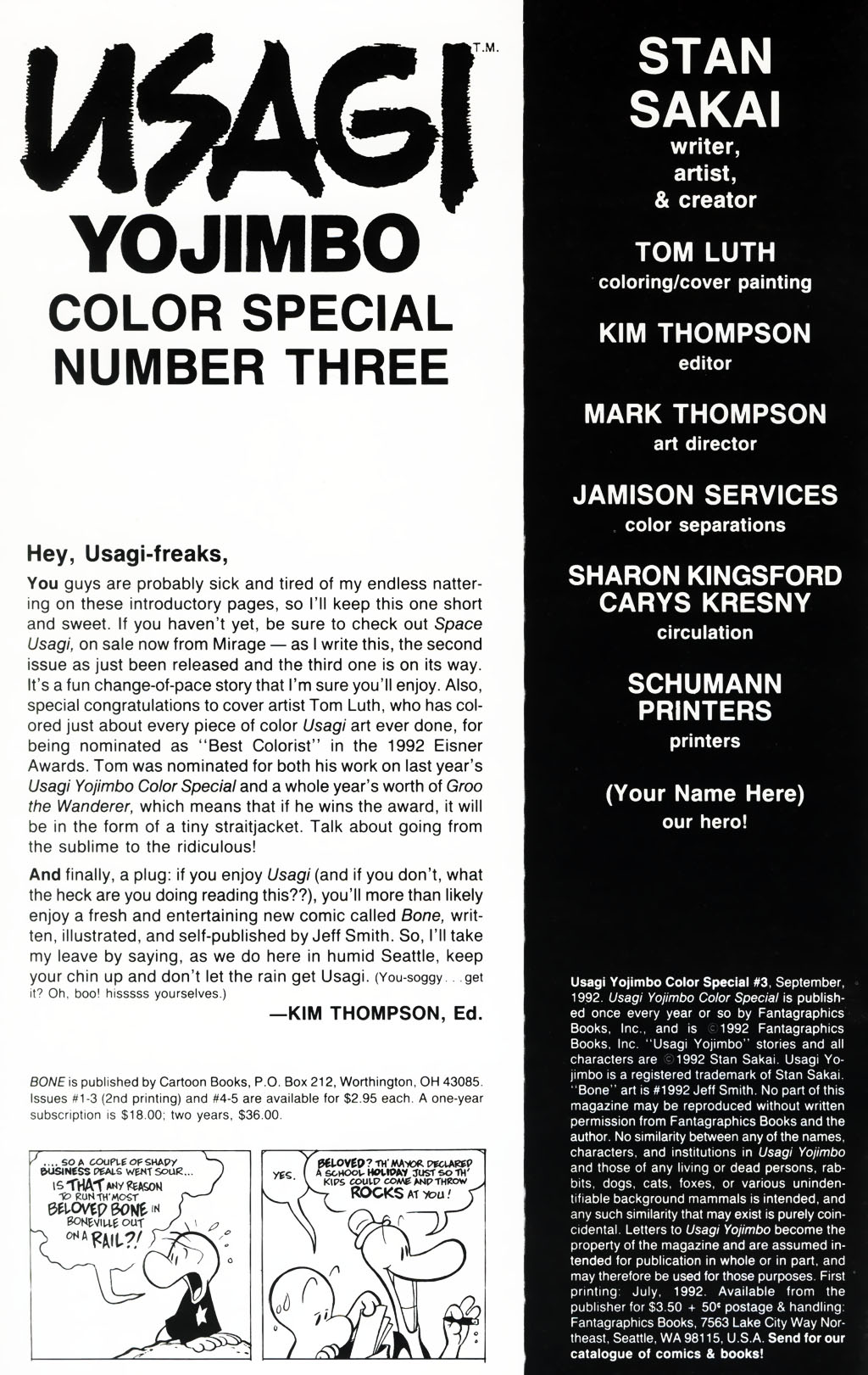 For the anon who was surprised Jeff Smith was a Stan Fan."Hey, Usagi FREAKS" still hits after all these years.