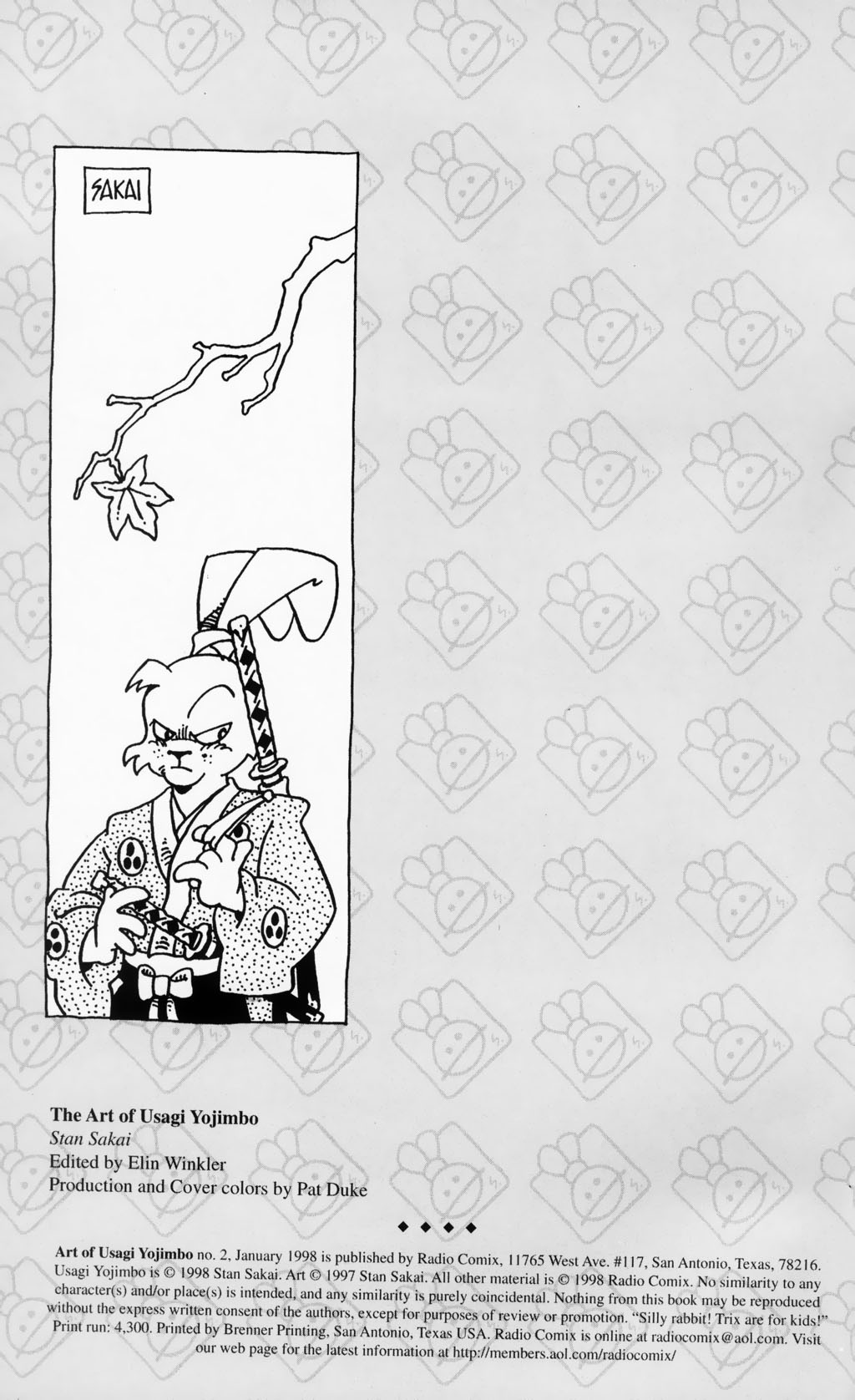 I can do one more mini-storytime today. The Art Of Usagi Yojimbo, Volume 2 (Radio Comix, 1998). Not to be confused with the bigly Art Of Usagi Yojimbo (Dark Horse, 2006) murderanon storytimes every year, which is large enough to warrant its own thread.