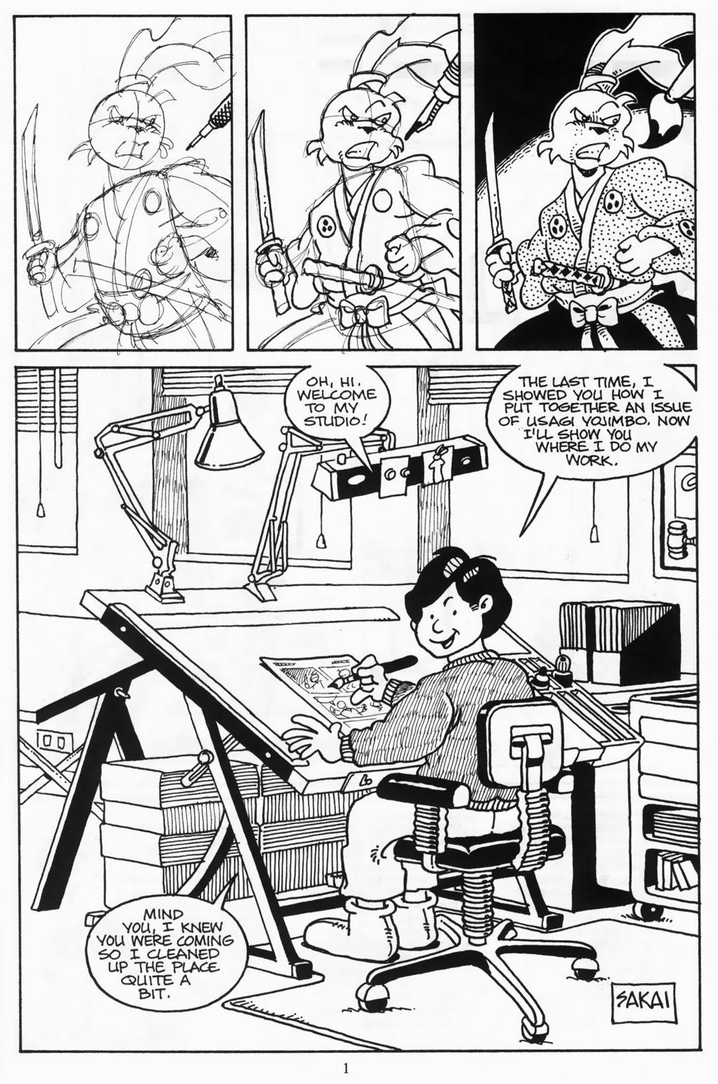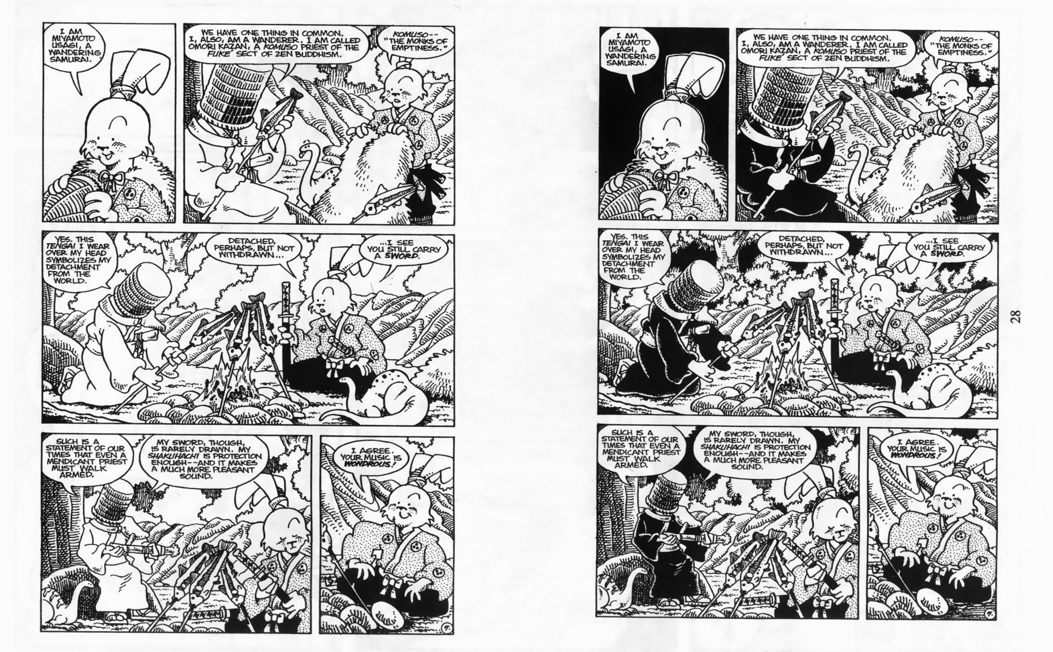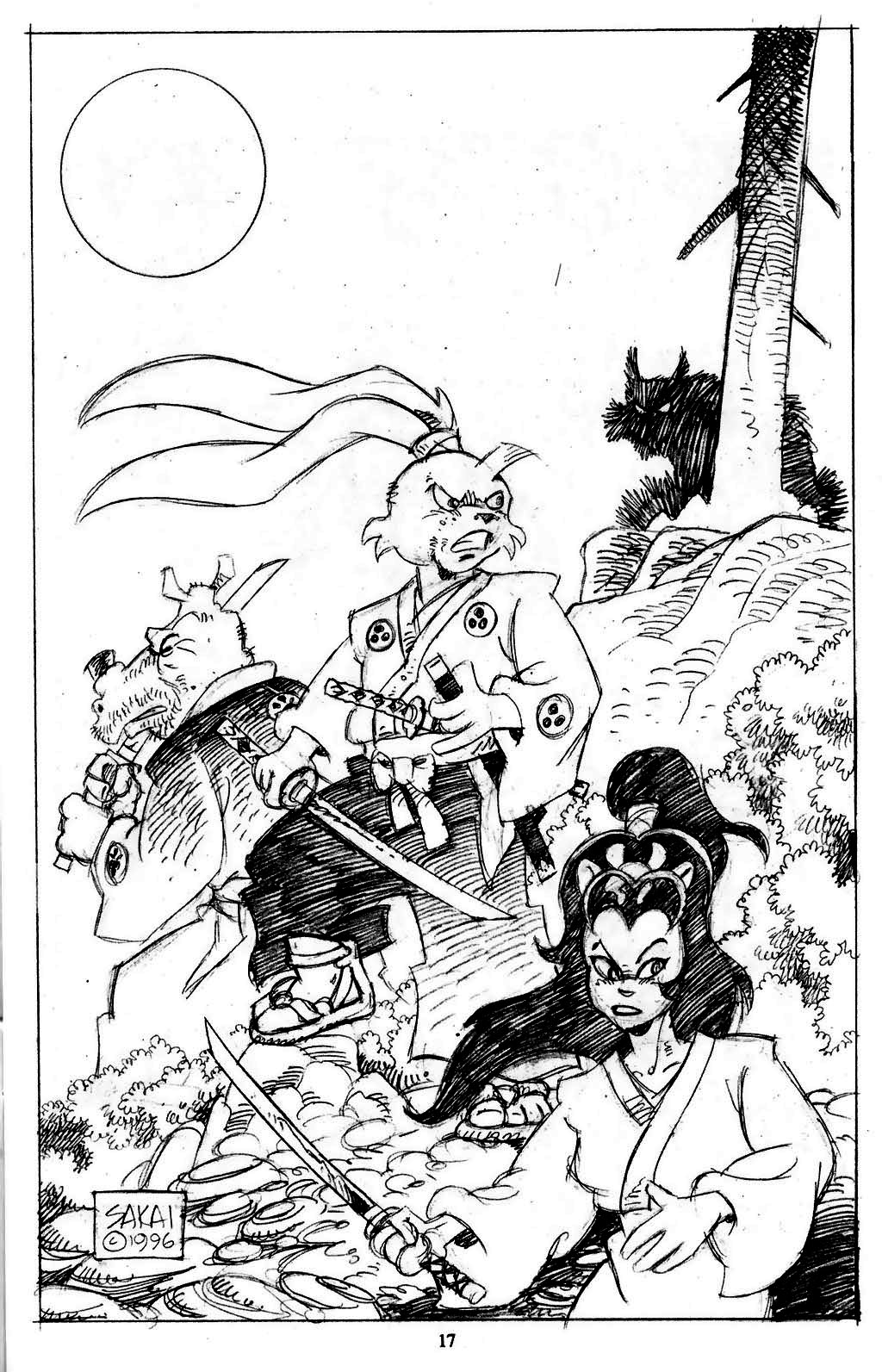 Some of these pages, like this one, gets reprinted in the bigger Art Of Usagi Yojimbo 2006 collection, but some are unique to this edition.
