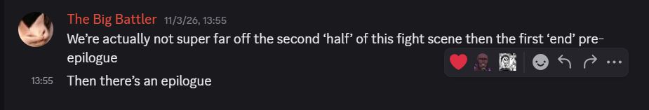 >>153080904>>153081801We're actually pretty close to the ending. It's the second half of this battle, one final sequence and an "epilogue". We've also known for a bit that the battle of Arrihor would be the penultimate sequence of the entire comic.