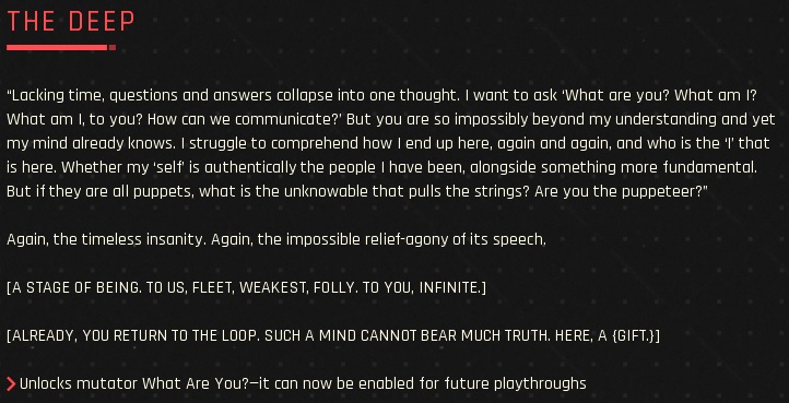 >>153081273>>153088557The infinite recursion, too. She's aware of the cycle and can do nothing about it. Although in retrospective, I wonder if her picking Zaid without the key was a subtle attempt at rebellion. She mentions in book 2 that she broke the cycle and got too hasty, trying to bring Zaid and the key to Metatron directly, avoiding the whole hero journey. With all we know now, these actions take a whole new meaning.